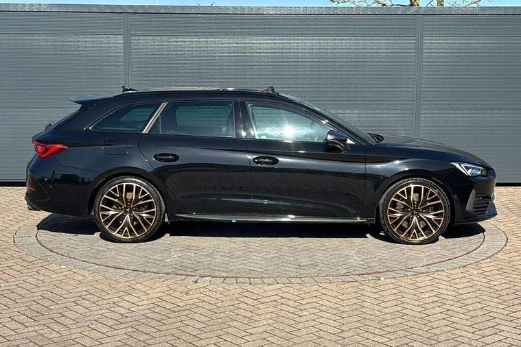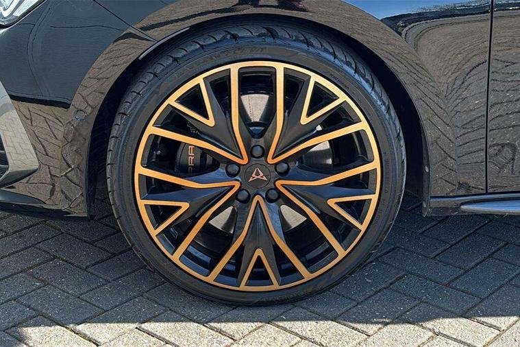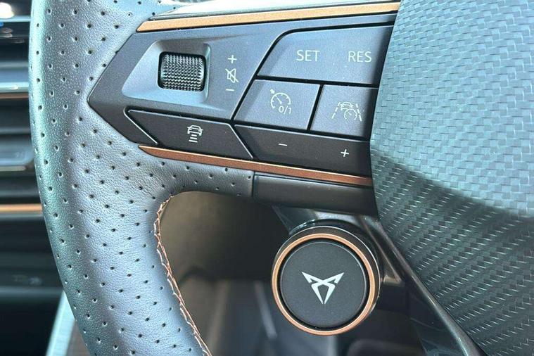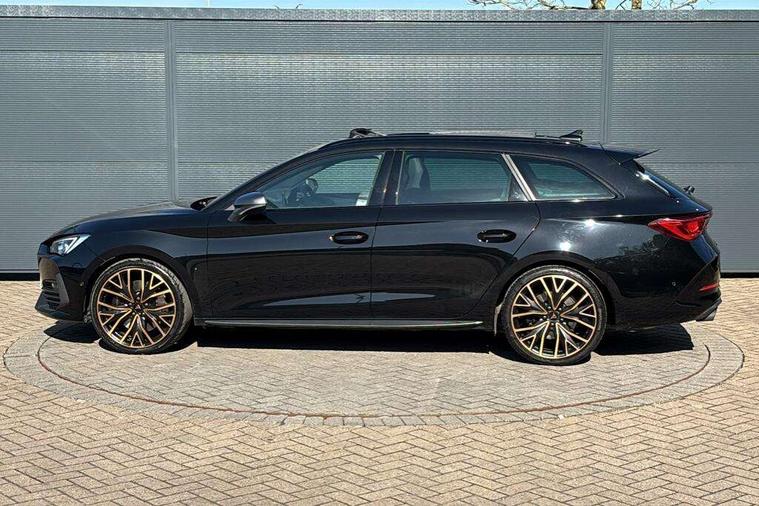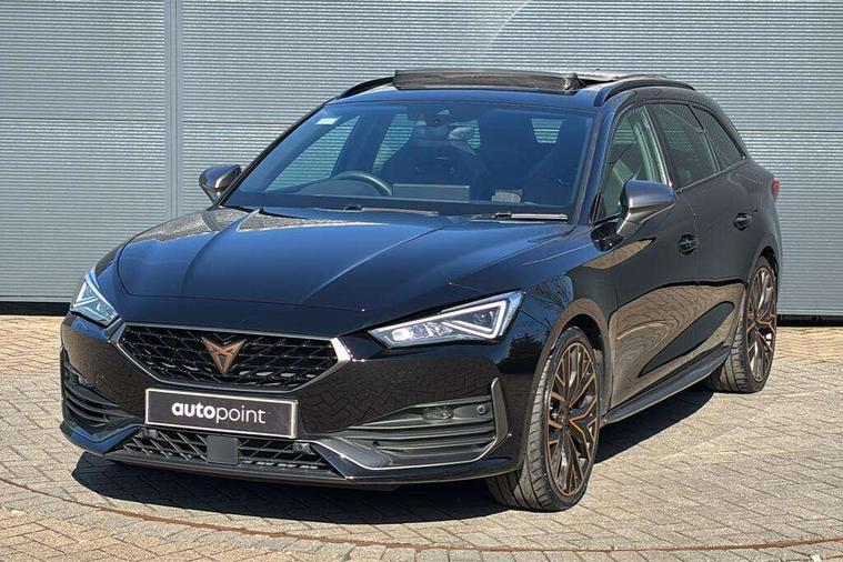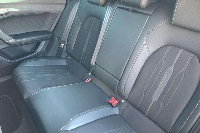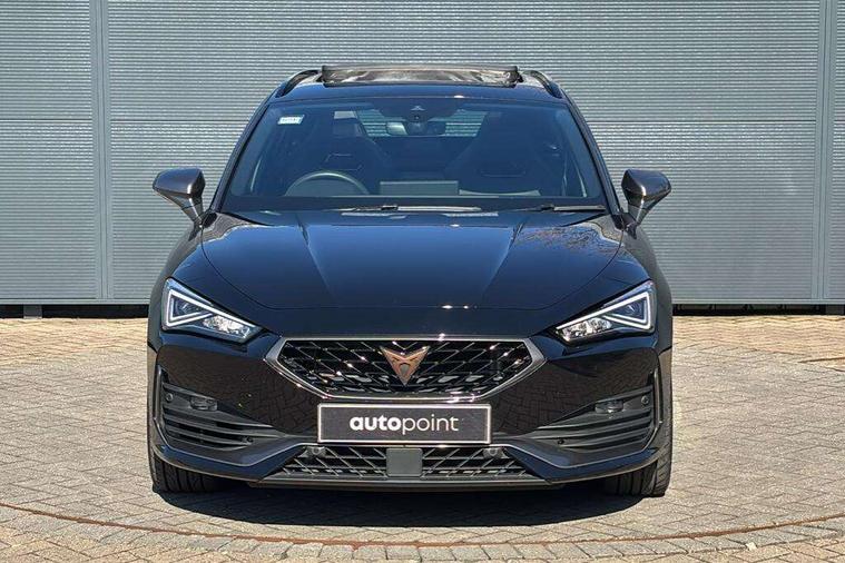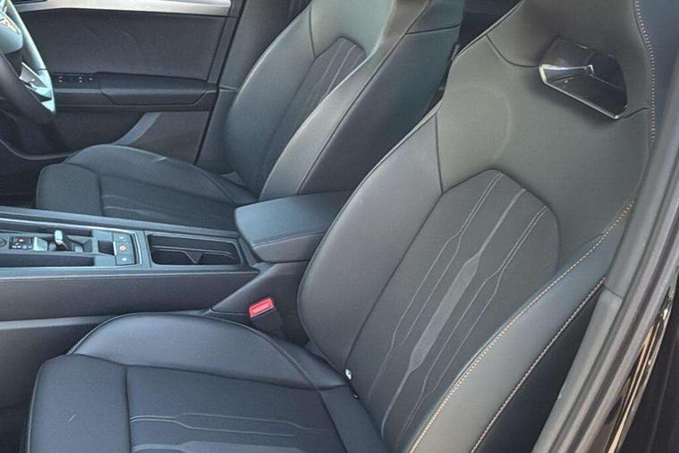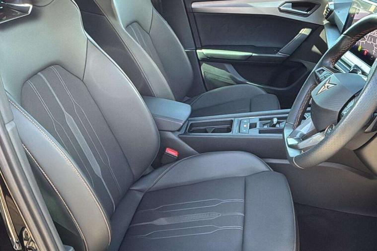 CUPRA drive profile selection with 4 modes (Comfort/Cupra/Sport/Individual), throttle response and gearshift mode, Digital cockpit, E-call, Front assist with forward collision warning braking reaction to vehicles, pedestrians and cyclists, Full link smartphone integration with Mirror Link, wireless Apple CarPlay and wired Google Android Auto, Lane assist, Lockable tailgate, Park assist (inc front/rear parking sensors), Rear view camera, RPM, trip computer, outside temp gauge, instrument light brightness, low fuel warning light, lights on reminder, gearshift indicator, Service interval indicator, Start/stop system with regenerative braking, Wireless phone charger, Standard suspension, XDS electronic differential lock and dynamic traction support, Auxiliary input socket, Auto dimming rear view mirror, Body colour door handles, Body coloured bumpers, Cupra sports bumpers, Dark tinted rear windows, Electric front/rear windows, Electrically adjustable, heated and folding door mirrors, Gloss black roof rails, LED front fog lamps with cornering function, LED headlights with dynamic turn signals, tail lights, rear fog lights with rear coast to coast lighting, Panoramic sunroof, Rain sensing wipers, Rear diffuser with splitter and oval quad exhaust pipes, Rear side wing doors, Rear wash/wipe, Separate daytime running light with automatic headlight control and coming home feature, Third brake light, 12v power supply in centre console, 12v socket in loadspace, 3 seat bench in 2nd row, 5 headrests, 60/40 split rear bench seat with armrest, Ambient lighting (glovebox, footwell, ambient lighting multicoloured), Black headlining, Cupra sports pedals, CUPRA Supersports, heated steering wheel with satellite buttons, Driver/passenger manual seat height adjustment, Dust/pollen filter, Four x USB Type C ports (2 in front and 2 in rear), Front and rear reading lights X 4, Front centre armrest, Front seats manual lumbar adjustment, Height/reach adjust steering wheel, Illuminated interior front door sills, Interior wraparound lighting, ISOFIX points in outer rear seats with top tether anchorage points, Jack and tool kit, Luggage tie-down hooks, PVC/Cloth upholstery with copper stitching + Cupra embossed logo on headrest, Single front passenger seat, Sliding boot cover, Sports bucket seats, Storage pockets on rear of front seats, Sunvisors with illuminated mirror, Three zone climate control, Design pack - Cupra Leon, Dynamic and comfort pack - Leon Cupra, Media system plus with navigation pack - Leon Cupra, Safety and driving pack (XL) - Cupra leon, 3 point seatbelts on all rear seats, ABS, Brake control system - ESC and brake booster, Child proof door locks, Cupra black brake calipers, Driver and front passenger airbags with front passenger airbag de-activation, front side and curtain airbags, Electronic parking brake, Extended safety system - seat belt tensioner, window closure and hazard lights, Hill hold control, Rear disc brakes, Seat belt reminder for front and rear seats, Tiredness recognition system, Tyre pressure monitoring system, Anti theft alarm system with interior monitoring in cab, backup horn and towing protection, KESSY Advanced - Keyless start, keyless entry, Locking wheel bolts, Chrome and copper interior detailing, 19" Performance satin black and copper alloy wheels with 91Y tyres, Space saver spare wheel,
