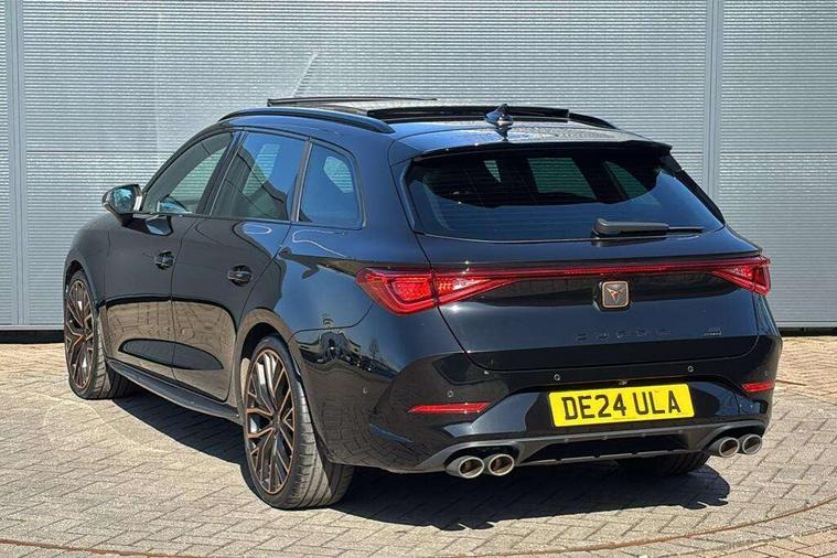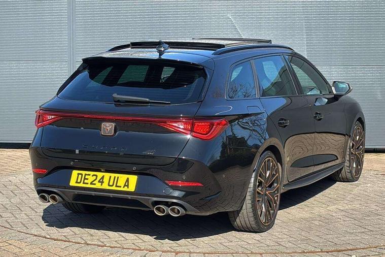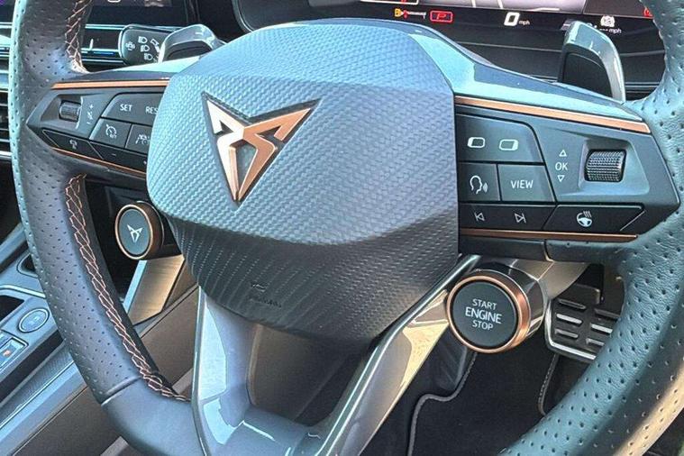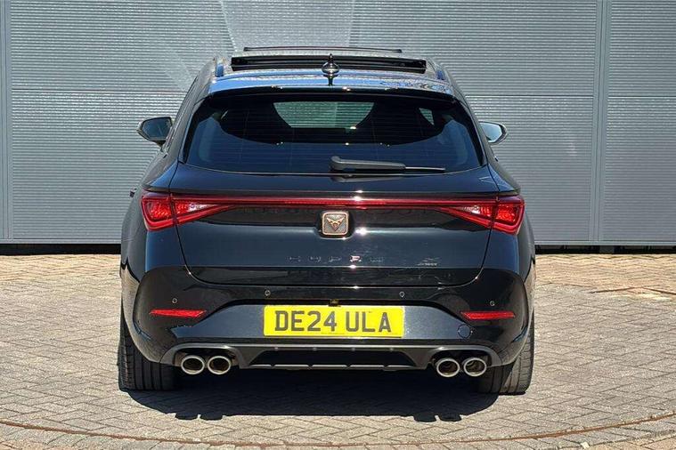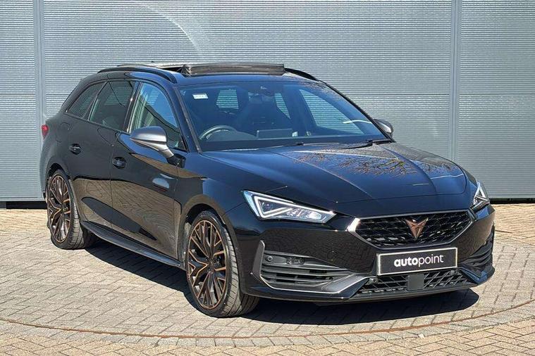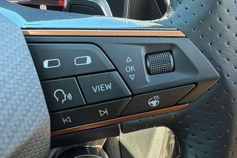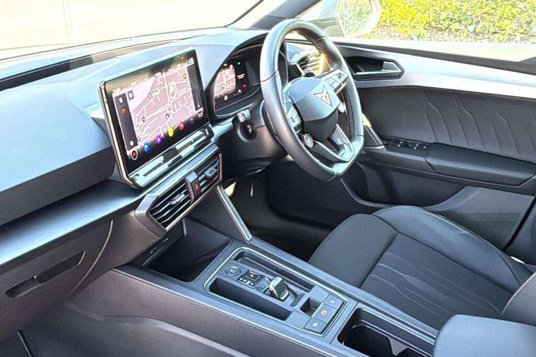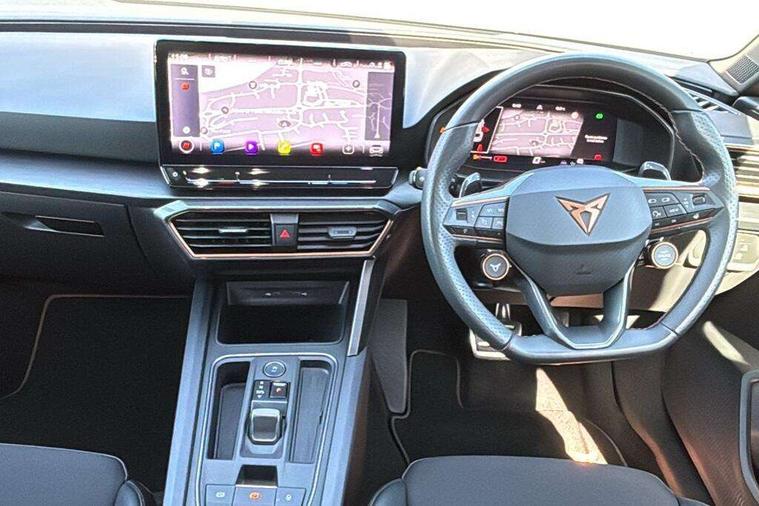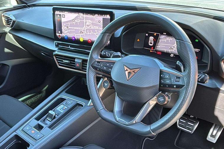 CUPRA drive profile selection with 4 modes (Comfort/Cupra/Sport/Individual), throttle response and gearshift mode, Digital cockpit, E-call, Front assist with forward collision warning braking reaction to vehicles, pedestrians and cyclists, Full link smartphone integration with Mirror Link, wireless Apple CarPlay and wired Google Android Auto, Lane assist, Lockable tailgate, Park assist (inc front/rear parking sensors), Rear view camera, RPM, trip computer, outside temp gauge, instrument light brightness, low fuel warning light, lights on reminder, gearshift indicator, Service interval indicator, Start/stop system with regenerative braking, Wireless phone charger, Standard suspension, XDS electronic differential lock and dynamic traction support, Auxiliary input socket, Auto dimming rear view mirror, Body colour door handles, Body coloured bumpers, Cupra sports bumpers, Dark tinted rear windows, Electric front/rear windows, Electrically adjustable, heated and folding door mirrors, Gloss black roof rails, LED front fog lamps with cornering function, LED headlights with dynamic turn signals, tail lights, rear fog lights with rear coast to coast lighting, Panoramic sunroof, Rain sensing wipers, Rear diffuser with splitter and oval quad exhaust pipes, Rear side wing doors, Rear wash/wipe, Separate daytime running light with automatic headlight control and coming home feature, Third brake light, 12v power supply in centre console, 12v socket in loadspace, 3 seat bench in 2nd row, 5 headrests, 60/40 split rear bench seat with armrest, Ambient lighting (glovebox, footwell, ambient lighting multicoloured), Black headlining, Cupra sports pedals, CUPRA Supersports, heated steering wheel with satellite buttons, Driver/passenger manual seat height adjustment, Dust/pollen filter, Four x USB Type C ports (2 in front and 2 in rear), Front and rear reading lights X 4, Front centre armrest, Front seats manual lumbar adjustment, Height/reach adjust steering wheel, Illuminated interior front door sills, Interior wraparound lighting, ISOFIX points in outer rear seats with top tether anchorage points, Jack and tool kit, Luggage tie-down hooks, PVC/Cloth upholstery with copper stitching + Cupra embossed logo on headrest, Single front passenger seat, Sliding boot cover, Sports bucket seats, Storage pockets on rear of front seats, Sunvisors with illuminated mirror, Three zone climate control, Design pack - Cupra Leon, Dynamic and comfort pack - Leon Cupra, Media system plus with navigation pack - Leon Cupra, Safety and driving pack (XL) - Cupra leon, 3 point seatbelts on all rear seats, ABS, Brake control system - ESC and brake booster, Child proof door locks, Cupra black brake calipers, Driver and front passenger airbags with front passenger airbag de-activation, front side and curtain airbags, Electronic parking brake, Extended safety system - seat belt tensioner, window closure and hazard lights, Hill hold control, Rear disc brakes, Seat belt reminder for front and rear seats, Tiredness recognition system, Tyre pressure monitoring system, Anti theft alarm system with interior monitoring in cab, backup horn and towing protection, KESSY Advanced - Keyless start, keyless entry, Locking wheel bolts, Chrome and copper interior detailing, 19" Performance satin black and copper alloy wheels with 91Y tyres, Space saver spare wheel,
