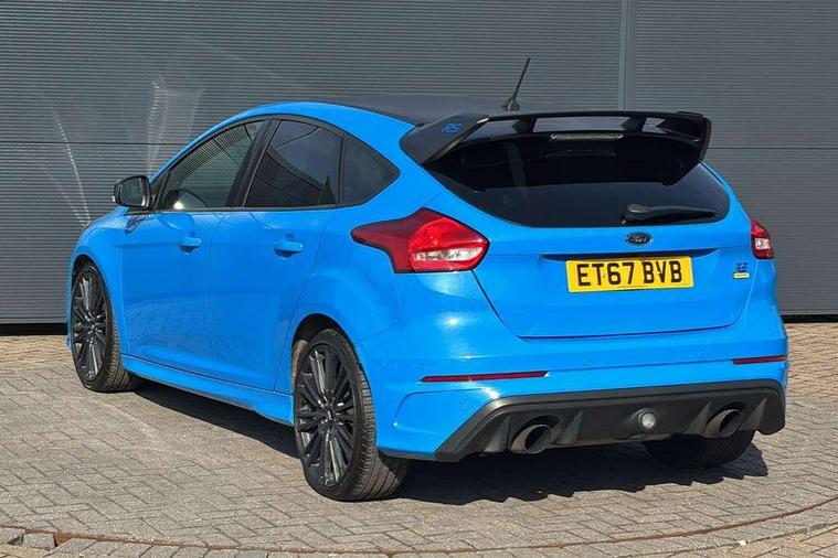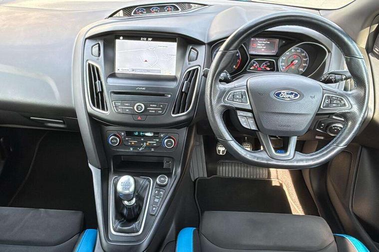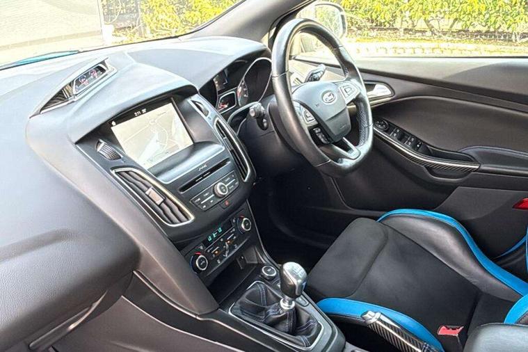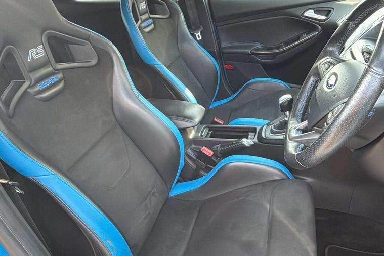 'Ford Power' starter button, Damper control, Drive mode selector, Easy fuel capless refuelling system, PAS, Rear view camera, SYNC 3 Navigation system with DAB radio/CD, 8" colour touch screen, emergency assistance, Bluetooth connection, advanced voice control, Launch control, Limited slip differential, Sony audio system with 10 Speakers + subwoofer, 'Quickclear' heated windscreen/heated washer jets, Adaptive front lighting system, Auto dimming rear view mirror, Automatic headlights, Automatic rain sensing wipers, Bi-Xenon headlights and headlight washers, Black rear spoiler, Black roof, Body colour bumpers, Electric adjustable heated door mirrors, Electric front and rear windows + one touch + global open/closing, Matt black mirror caps, Rear wiper, Special metallic paint, Twin exhaust tailpipe, 12V power point front/rear, 60/40 split folding rear seat, Alloy pedals, Boot lamp, Dual zone electronic climate control, Flat bottom sports leather steering wheel, Front and rear reading lights, Front armrest, Front/rear floor mats, Heated steering wheel, Height adjustable drivers seat, Height adjustable passenger seat, Integrated front head restraints, Isofix child seat preparation, LED ambient lighting, Part leather upholstery, Reach + rake adjustable steering column, Recaro shell sports seats, Luxury pack - Focus RS, ABS+Electronic Brake force Distribution, Active city stop, Blue brembo brake calipers, Driver airbag, ESP with traction control + emergency brake assist, Hill start assist, Passenger airbag + deactivate switch, Torque vectoring brake, Tyre pressure monitoring system, Immobiliser, MyKey system, Remote central double locking, Thatcham Cat.1 alarm, Carbon fibre interior trim finishers, Tyre repair kit,