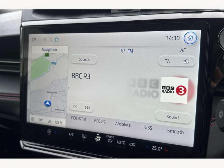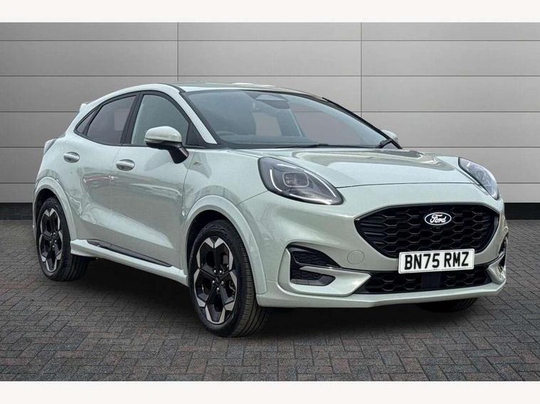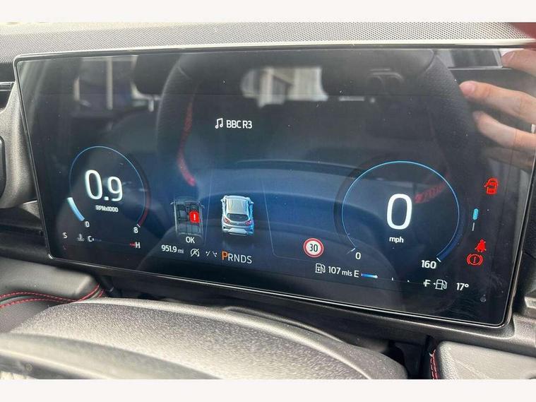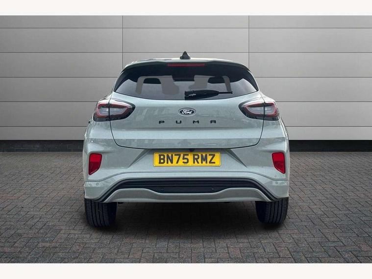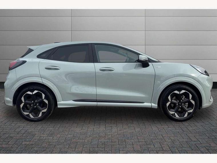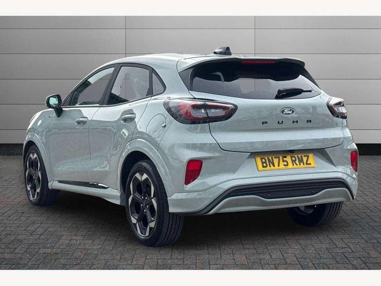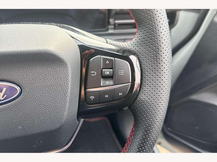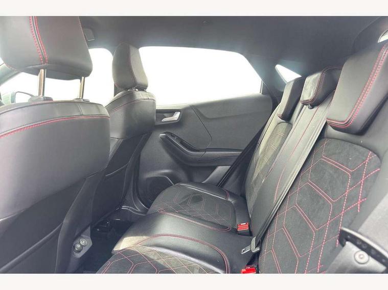 Driver impairment monitor, Emergency call service, Ford easy fuel, Full digital 12.8" instrument cluster, Lane keeping aid with lane departure warning, Power assist steering, Selectable drive modes(Normal, Eco, Sport, Slippery and Trail), Speed sign recognition, Sport suspension, 12" landscape touchscreen display with wireless apple car play and android auto premium B&O audio system with 10 speakers, Ford pass connect and emergency assistance, Ford SYNC4 with connected navigation, Automatic headlights with rain sensing wipers and auto high beam, Front fog lamps, LED daytime running lights, LED rear lamps, LED third brake light, Power foldable heated door mirrors with puddle lamps and puma logo protection, Quickclear heated windscreen, Rear privacy glass, Rear side wing doors, Rear wiper, ST-Line X body styling kit, 3 seat bench in 2nd row, 4 way lumbar support for passenger seat, Centre console with armrest and stowage, Electronic automatic temperature control (EATC), Ford megabox extended bootspace, Front and rear head restraints, Front floor mats, Manual 4 way driver seat adjust with lumbar adjustment, Single front passenger seat, ST-Line X Premium synthetic leather upholstery, Comfort pack with power lift tailgate - Puma, 3 rear seatbelts, Child safety lock, Electronic stability control (ESC) and hill start assist, Pre-collision assist with autonomous emergency braking, pedestrian/cyclist detection & post-collision braking, Tyre pressure monitoring system (TPMS), Thatcham alarm,