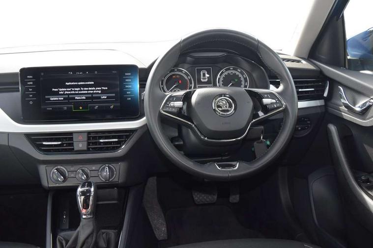 Amundsen satellite navigation with 9.2" glass colour touchscreen display, web radio, voice control and traffic sign recognition, Bluetooth system, E-call, Front assist system, Gesture control, PAS, Service indicator, Speed limiter, Wireless Smartlink for Apple CarPlay (wired for Android Auto), 8 Speakers, Auxiliary input socket, DAB Digital radio, Body colour bumpers, Body colour door mirrors and handles, Chrome grille surround, Dimming rear view mirror with black surround, Electrically adjustable and heated door mirrors, Front and rear electric windows, Headlight range control, Heated rear window, LED rear lights - low functionality, LED third brake light, Light sensors, Privacy glass, Rain sensor, Rear fog lights, Rear side wing doors, Rear wiper, 12V Accessory socket in centre console, 3 seat bench in 2nd row, Chrome inner door handles, Cloth upholstery, Front head restraints, Glove compartment with illumination, Height adjustable driver and front passenger seats - manual, Ice scraper, Isofix child seat fittings on outer rear seats, ISOFIX on front passenger seat, Manual lumbar support for front seats, Rake/reach adjustable steering wheel, Reading lights, Single front passenger seat, Sun visors with illumination on front passenger, Textile floor mats, Third rear headrest, Top tether for front passenger seat, Umbrella in driver's door, 3x3 point rear seatbelts, Airbags - driver and front passenger, ESP, Front passenger airbag deactivation switch, Front side airbags with curtain airbags, Hill hold control, Manual parking brake, Manual rear child locks, One tone horn, Rear disc brakes, Seatbelt reminder for driver an co-driver, Traction control, Tyre pressure monitor, Anti-theft alarm system with interior monitoring, backup horn, towing protection and remote central locking with SAFE system, Anti-theft wheel bolts, Electronic engine immobilizer, Silver haptic decorative insert on the dashboard with hot stamping in glossy black,