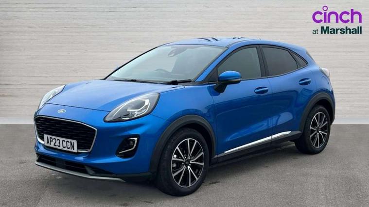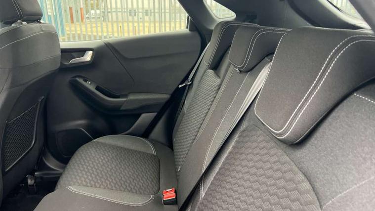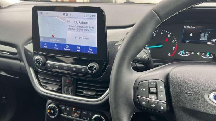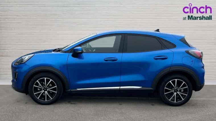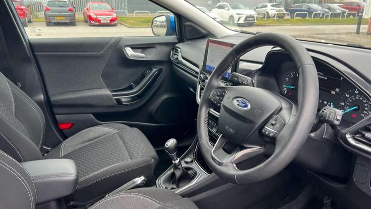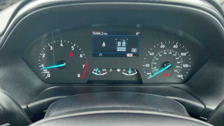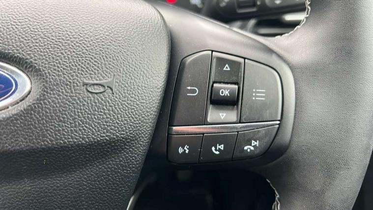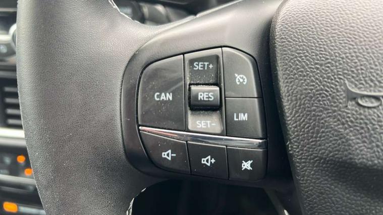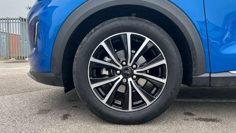 Driver impairment monitor, Emergency call service, Ford easy fuel, Lane keeping aid with lane departure warning, Power assist steering, Power start button, Rear parking sensor, Selectable drive modes(Normal, Eco, Sport, Slippery and Trail), Speed sign recognition, Standard suspension, Automatic headlights with auto high beam, Automatic rain sensing wipers, Body colour rear spoiler, LED rear lamps, Power foldable heated door mirrors with puddle lamps, Projector headlamps with LED day time running lights and front fog lamps, Quickclear heated windscreen, Rear side wing doors, Rear wiper, Third brake light, 3 seat bench in 2nd row, Centre console with armrest and stowage, Electronic automatic temperature control (EATC), Ford megabox extended bootspace, Front and rear head restraints, Front floor mats, Manual 2 way passenger seat adjustment, Manual 4 way driver seat adjust with lumbar adjustment, Sensico leather steering wheel/gear knob/handbrake, Single front passenger seat, Titanium cloth upholstery, Ford SYNC 3 navigation pack - Puma, 3 rear seatbelts, Child safety lock, Electronic stability control (ESC) and hill start assist, Pedestrian/cyclist detection & post-collision braking, Pre collision assist system, Tyre pressure monitoring system (TPMS), Thatcham alarm, 17" 10 spoke absolute black machined finish alloy wheel,