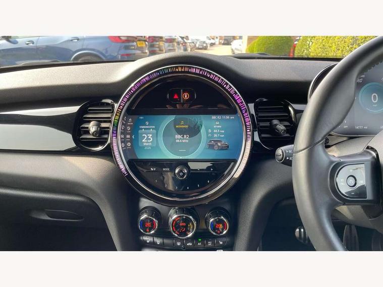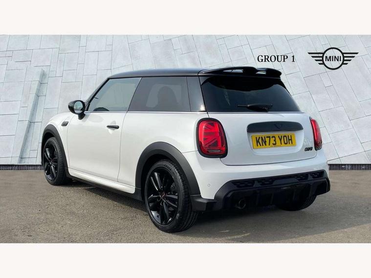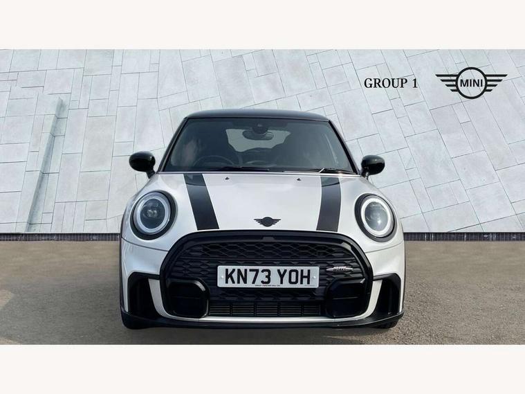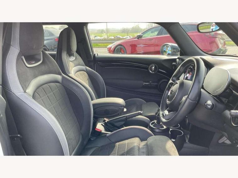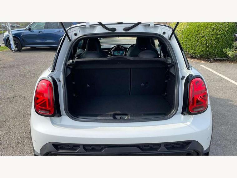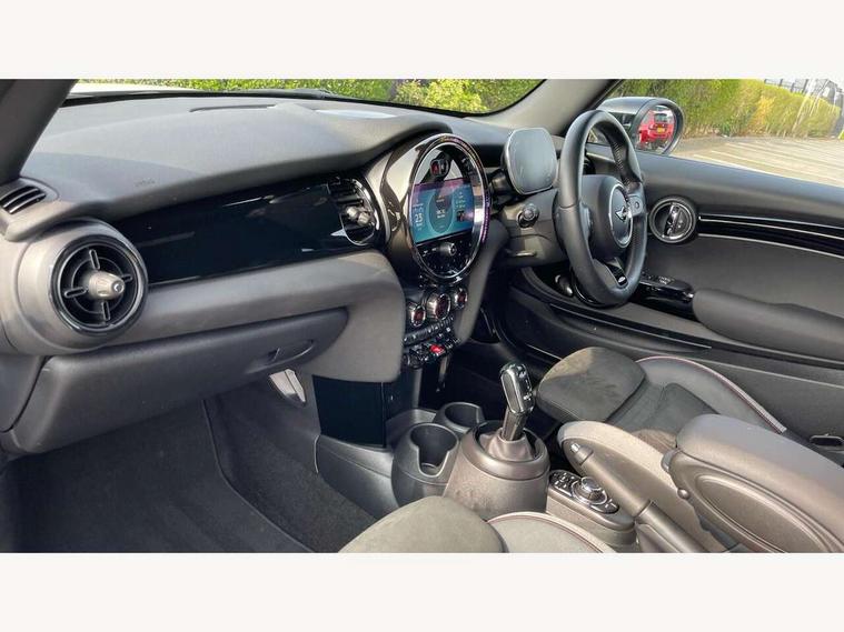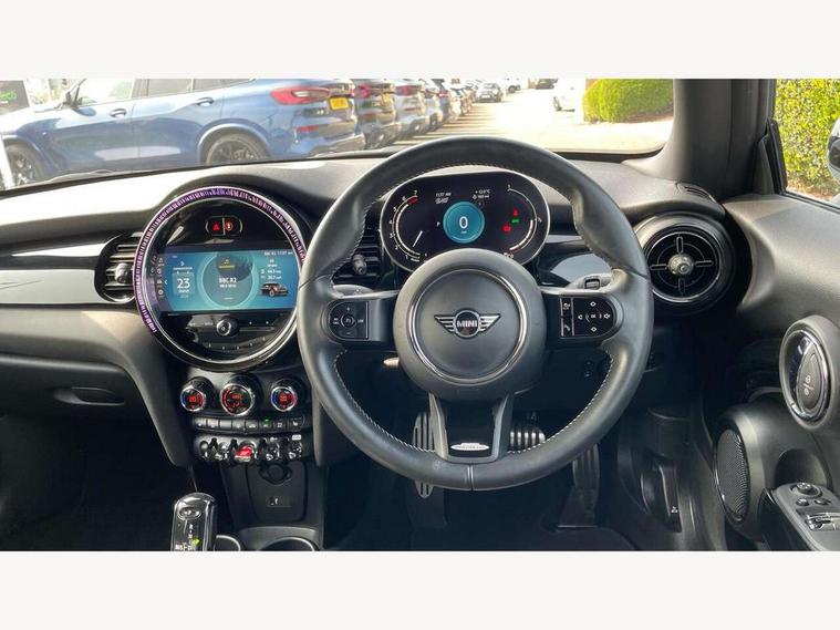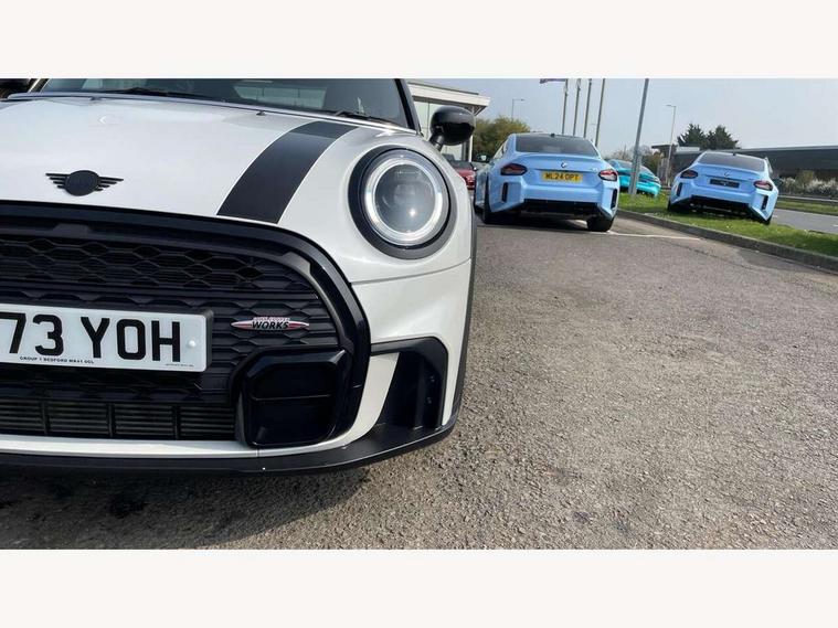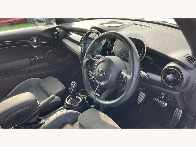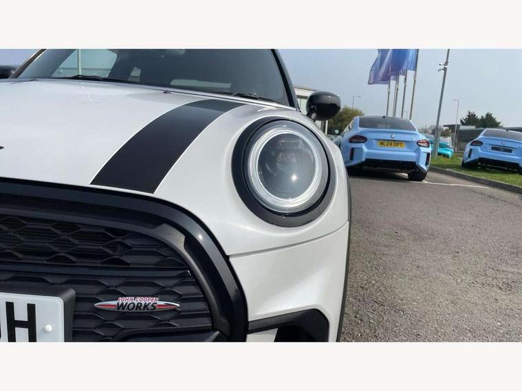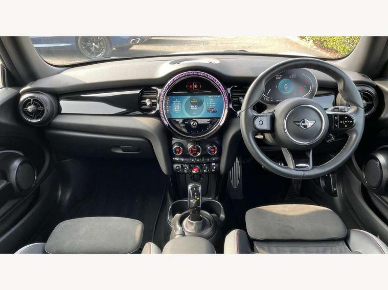 Apple CarPlay, Automatic start/stop function with brake energy recuperation, Compatible mobile phone bluetooth with audio streaming, Digital dashboard display, Electro-mechanical speed dependant steering assistance, Flexible car sharing preparation, Instrument cluster, Mini E-call, MINI TeleServices, On board computer, Service interval indicator, Double Vanos system, Fully variable valve control, High precision injection, Intelligent adaptive suspension, Performance Control, Steptronic transmission with double clutch, 4 speakers in front door trims and underneath front seats, 8.8" touchscreen with LED ring, FM tuner and DAB digital radio, 3rd brake light, Automatic headlight activation switch, Dynamic brake lights, Electric front windows, Heated rear window, Heated windscreen washer jets, JCW Aerodynamic kit - Front and rear bumpers with sporty JCW styling and part-painted side sills with MINI John Cooper Works door sill finishers, John Cooper Works rear spoiler, LED headlight with closed ring and daytime driving lights, Metal door sill strips with MINI imprint, Model logo Cooper on right of tailgate, Rain sensor window wipers, Rear fog lights, Rear LED lights with union jack design, Rear window wiper, Side scuttle panel with integrated indicator, Sun/heat protection glass, White indicator lenses, 12V Accessory socket in centre console, 2 seat bench in 2nd row, 4 lashing eyes in luggage compartment, 60/40 split folding rear seat, Anthracite headliner including grab handles and clothes hooks, Carbon black colour line - Knee roll and door armrest, Chrome interior highlights, Cupholders, Front and rear isofix with front passenger airbag deactivation, Front floor mats in velour, Glove compartment, Height and length steering column adjustment, Integrated headrests, adjustable thigh support for seats, Interior lighting with 12 different colours across the dashboard, underneath door bezel with illuminated laser-engraved design on central display, Leatherette gearshift lever and handbrake gaiters, LED reading lights, vanity mirror lights, front foot well light and spotlight on front seats, Mechanical seat adjustment - forward/back & backrest for front seats and driver seat height adjust, Multifunction steering wheel, Passenger seat height adjuster, Single front passenger seat, Storage compartments in doors, Sunvisors with vanity mirrors, Walknappa leather steering wheel with grey seam and John Cooper Works badge on Piano Black lower steering wheel spoke, Driving assistant pack - Mini Hatchback, Piano black exterior pack - Mini Hatchback Cooper, Premium pack - Hatchback, 3 point seatbelts on all four seats, 6 Airbags - front, side, head and seat belt tensioners, Anti-lock braking system (ABS), DSC - Dynamic Stability Control, Front and rear disc brakes, Single tone fanfare horn, Tyre pressure monitoring system, Alarm system with tilt sensor, monitoring doors, bonnet interior and tailgate, Electronic vehicle immobiliser, Start/stop toggle with keyless go, Piano black interior trim, Tool kit,