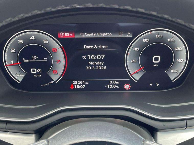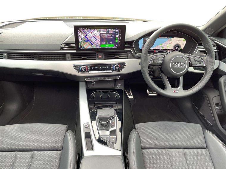 Audi connect safety and service (e-call), Audi drive select, Audi smartphone interface, Audi virtual cockpit, Automatic start-stop system with coasting functionality and efficiency programme, Bluetooth interface, Camera based traffic sign recognition, Electromechanical power steering, Email, calendar and text messages displayed via MMI, Front and rear parking sensors, Lane departure warning, MMI Navigation plus with MMI touch includes 10.1" high resolution colour MMI display, 3D map, Power operated tailgate, Rear view camera, Voice control system, 54 litre fuel tank, Sports suspension lowered by 23mm, 2 USB charging ports, 8 passive loudspeakers, DAB digital radio reception, Aluminium roof rails, Auto dimming rear view mirror, Body colour door handles, Body colour front spoiler lip, Body colour side sill trim, Body coloured door mirrors, Electric adjustable/heated/folding door mirrors with auto dimming, Grained matt black side air inlets with matt aluminium silver inlay, High beam assistant, Honeycomb structure radiator grille in grained matt black, LED headlights with LED rear lights + dynamic rear indicators + headlight adjustment and high beam, turning light + LED daytime running lights, LED third brake light, Matt aluminium silver tailpipe trim, Privacy glass, Rain and light sensors, Rear side wing doors, Rear wiper, S Line badges on the front wings, S line front and rear bumpers with side skirts, S Line rear diffuser in matt anthracite black with trim strip in matt aluminium silver, S Line roof edge spoiler, Variable intermittent front wash/wipe, Windscreen with acoustic glazing, 3 spoke high multi-function sports leather steering wheel grips in perforated leather with S badging including paddle shift, 4 way electric lumbar support for driver and front passenger, 40/20/40 split folding 3 rear seat bench in 3 parts with rear centre armrest, Black carpets, Black cloth headlining, Black perforated leather gearknob, Contrast stitching on seats, steering wheel and gear lever gaiter, Deluxe 3 zone electronic climate control, Electric load area cover, Front and rear head restraints, Front centre armrest, Heated front seats, Illuminated door sill trims with S logo, ISOFIX child seat mounting and top tether, Manual seat adjustment, Single front passenger seat, Stainless steel pedals and foot rest, High gloss package - A4, LED Interior light pack - A4/S4, 3 rear seatbelts, 6 airbags - Driver, front passenger, curtain and side windows, Attention and drowsiness assist, Electronic Stabilisation Control (ESC) including ABS, ASR and EDL, Hill hold assist, Multi collision brake assist, Pop-up bonnet for pedestrian protection, Pre sense city, Rear door child safety locks, Seatbelt monitoring, Warning triangle and first aid kit, Anti theft alarm, Anti theft wheel bolts, Central locking, Keyless Go, Matt brushed aluminium inlays, Tool kit, Tyre repair kit,