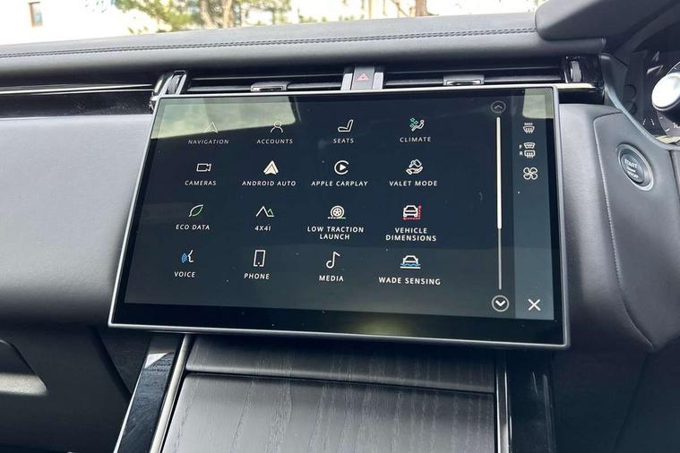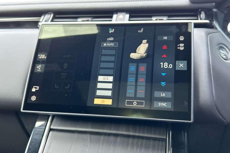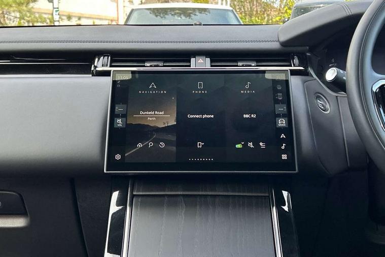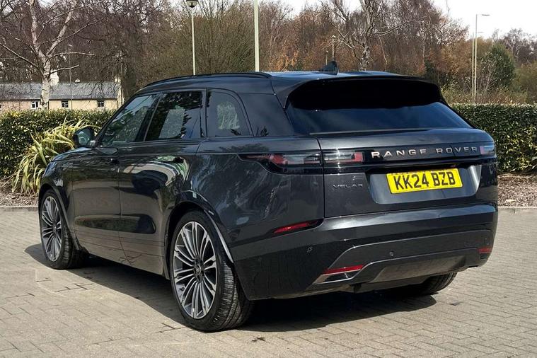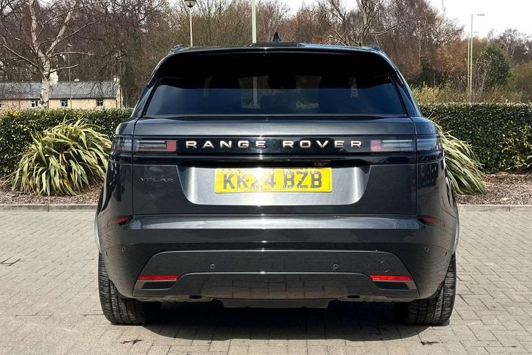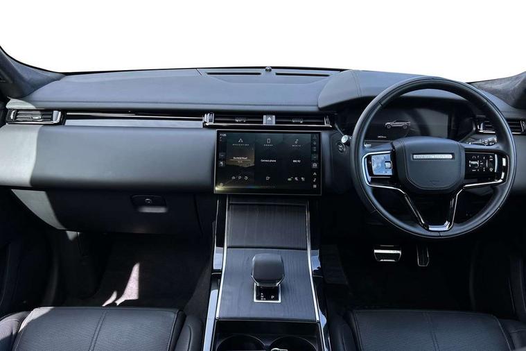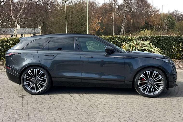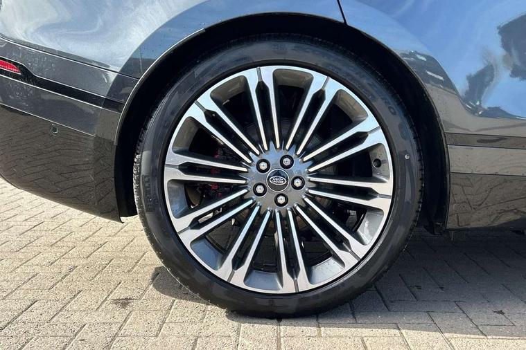 3D surround camera includes forward traffic detection and vehicle guidance, Adaptive cruise control with steering assist, Android Auto, Apple CarPlay, Blind spot assist, Bluetooth connectivity, Brake pad wear indicator warning light, Driver condition monitor, eCall emergency call system, Front and rear parking aid, Head up Display, InControl remote, Land Rover InControl apps, Lane keep assist, Pivi pro with connected navigation, Rear collision monitor, Rear traffic monitor, Service indicator, Speed proportional electronic power assisted steering (EPAS), Traffic sign recognition with adaptive speed limiter, Trip computer, Voice control system, Wade Sensing, Wireless device charging, 8 speed automatic transmission, Adaptive dynamics, All terrain progress control, Electronic air suspension, Open differential with torque vectoring by braking, Single speed transfer box, Terrain Response 2 with dynamic program, DAB radio, Steering wheel mounted controls, 3rd brake light, Acoustic laminated windscreen, Auto dimming interior rear view mirror, Autobiography badge, Automatic headlamp levelling, Automatic headlights, Body coloured bumpers, Boot protection plate, Contrast bonnet in burnished copper & rear lettering, Electric windows with one touch open/close and anti trap, Flush deployable exterior door handles, Follow me home headlights, Heated rear window with timer, Heated washer jets, Heated windscreen, Illuminated front and rear metal tread plates, Metal load space scuff plates, Pixel LED headlights with signature DRL, Power fold, auto-dimming, heated door mirrors with memory and approach lights, Rain sensor windscreen wipers, Rear animated directional indicators, Rear fog lights, Rear side wing doors, Rear wash/wipe, Tailgate/boot lid spoiler, Trailer stability assist, Velar badge, 20 way electrically adjustable massage front seats with driver's memory function and rear power recline, 3 seat bench in 2nd row, Ambient lighting, Bright metal pedals, Cabin Air Purification plus, Carpet mats, Configurable cabin lighting, Driver/passenger sunvisors with illuminated vanity mirrors, Ebony suedecloth headlining, Electrically adjustable steering column, Four zone climate control, Full extended leather upgrade, Heated and cooled front seats, Heated steering wheel, Isofix system on outer rear seats, Loadspace cover, Lockable cooled glovebox, Overhead lighting console, Overhead stowage for sunglasses, Passive front headrests, Rear air vents, Rear centre headrest, Single front passenger seat, Twin front cupholders, Twin sliding front centre armrest, Online pack with data plan - Velar, Power socket pack 2 - Velar, 380mm front brakes and 325mm rear brakes, 3x3 point rear seatbelts, Anti-lock braking system (ABS), Cornering brake control, Curtain airbags, Customer configurable autolock, Door side intrusion beams, Driver airbag, DSC - Dynamic Stability Control, Electronic brake force distribution, Electronic parking brake, Electronic traction control, Emergency braking, Front and rear seatbelt reminder, Hill descent control, Hill launch assist, Low traction launch, Passenger airbag, Power operated child locks, Rear airbags, Red brake calipers, Roll stability control, Side airbags, Tyre pressure monitoring system (TPMS), Global lock and unlock switch on driver door, Immobiliser, Intrusion sensor, Keyless entry, Lock only switch on front passenger door, Locking wheel nuts, Perimetric alarm, Remote central locking, All season tyres,