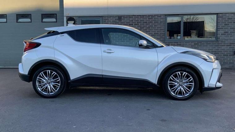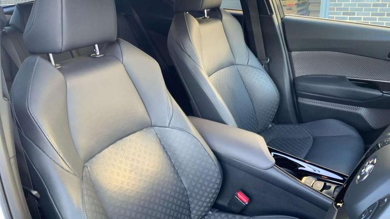 4.2" coloured TFT screen for multi-information display, Adaptive cruise control, Apple car play and Android auto, Bluetooth connectivity, E-call, Electric power steering, Hybrid system indicator, Lane departure alert with steering control, Lane trace assist, Push button tailgate release, Remote boot door release in cabin, Remote boot door release in key, Reversing camera, Road sign assist - RSA, Simple Intelligent parking assist, Smart voice assist, Touch 2 Go navigation system, Trip computer, Voice recognition, Wireless smartphone integration, Vehicle Stability Control (VSC), 6 speakers, AM/FM radio, DAB Radio (Digital Audio Broadcasting), Toyota touch 2 multimedia system with 8" display, USB connector, Wi-fi connectivity, Adaptive front light system, Adaptive LED Headlights, Anti-jam protection on power windows, Auto high beam, Auto up and down function on all power windows, Automatic headlight levelling, Automatic headlights, Automatic headlights cut-off, Black and body coloured rear bumper, Black lower front grille, Black upper front grille, Body colour door handles, Body colour door mirrors, Body colour front spoiler lip, Body coloured front bumper, Boot door release with push button, Electric heated door mirrors, Follow me home headlights, Front and rear power windows, Headlight cut off reminder, Honeycomb lower front grille, LED daytime running lights, LED fog lights, LED front light guide, LED High mounted stop light, LED rear brake lights, LED rear combination lights, Noise reduction layer on front windows and windscreen, Power adjustable door mirrors, Privacy glass, Rain sensor, Rear sequential indicators, Rear side wing doors, Rear spoiler, Rear tailgate, Rear window defogger, Rear window wiper, Shark fin antenna, UV-filter on driver and passenger windows, UV-filter on rear windows, Variable front intermittent wipers, 12v power outlet - front, 3 rear headrests, 3 seat bench in 2nd row, 3 spoke leather steering wheel, 60/40 split folding 2nd row rear seats, Adjustable rear headrests, Adjustable speed limiter switch on steering wheel, Assist grips front and centre pillar, Audio and telephone switches on steering wheel, Black front door assist grips, Blue ambient lighting on front cup holders, Blue ambient lighting on front doors, Boot light, Chrome interior door handles, Driver and front passenger personal light, Driver and front passenger Whiplash Injury Lessening seats, Driver and passenger seatback pockets, Dual zone automatic air conditioning, Floor mats, Front cupholders, Front head restraints, Front sports seats, Glovebox with internal light, Hard tonneau cover, Heated driver and front passenger seats, Heated steering wheel, Hooks for luggage holding net, Humidifying Nanoe air purifier, Illuminated entry system, Isofix attachments on outer rear seats, Leather gearshift, Light on driver sun visor, Light on passenger sun visor, Manual telescopic steering wheel, Manual tilt steering wheel, Microphone on front personal light, Mirror on driver sun visor, Mirror on passenger sun visor, Multimedia switches on steering wheel, Pollen filter, Power adjustable lumbar support on driver seat, Power tilting cushion on driver seat, Shopping bag hooks, Single front passenger seat, Slow opening on lower glovebox, Voice recognition switch on steering wheel, Leather pack - C-HR, Tech with parking sensor pack - C-HR, 16 Disk front wheel brake, 3x3 point rear seatbelts, ABS+EBD+Brake assist, Electronic parking brake, Front and rear seatbelt reminder, Front passenger airbag on/off switch, Hill start assist control (HAC), Pre collision system with pedestrian detection, Pre-tensioners and force limiters, Rear door child safety locks, SRS Airbags - Driver + Front passenger, front side, front and rear curtain and driver's knee airbags, Toyota safety sense, Tyre pressure monitoring system, Tyre pressure warning system, Acoustic vehicle alert system (AVAS), Glass-breaking alarm sensors, Immobiliser, Intrusion alarm, Intrusion sensor, Motion sensor alarm, Power door locks, Power passenger window lock, Remote central locking, Black lower dashboard, Dark brown upper dashboard, Piano black console, Silver deco line on upper dashboard, Tyre repair kit,