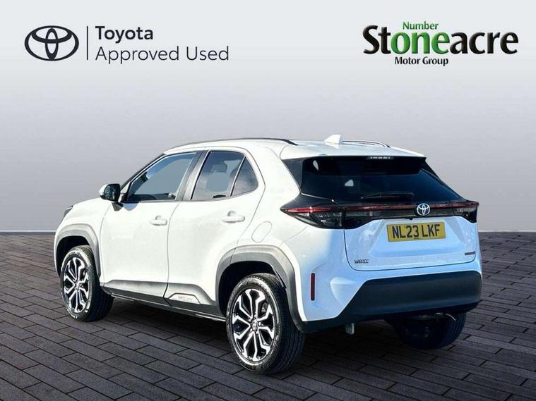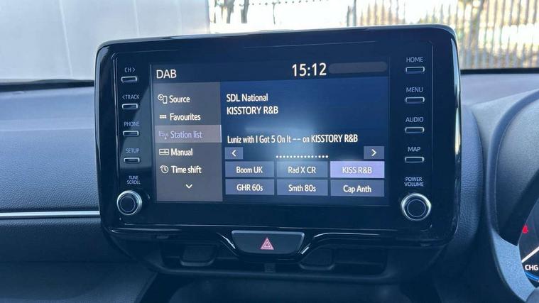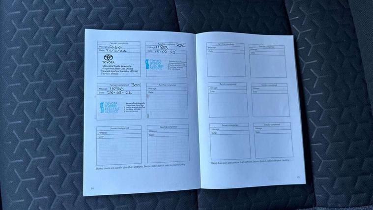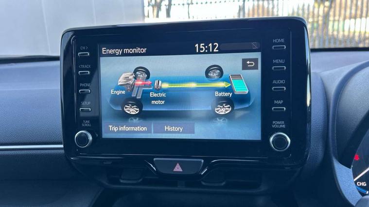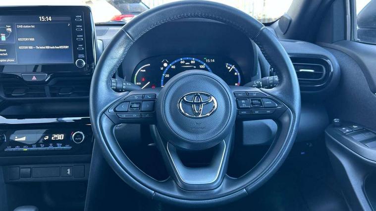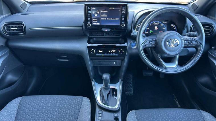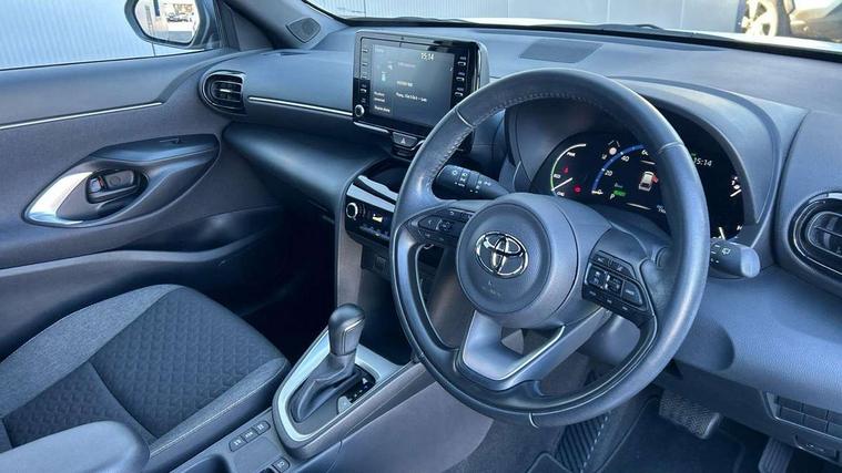 7" Multi information display screen, 8" Toyota touch 2 multimedia system with Smartphone integration with Apple CarPlay and Android auto, Adjustable speed limiter, Bluetooth connectivity, Driver attention alert system, eCall emergency system, Electric power steering, Full range intelligent adaptive cruise control, Hybrid system indicator, Key reminder warning, Lane trace assist, Multimedia, audio, telephone and voice recognition switches on steering wheel, My T Connected services, Pre-collision system enhanced with emergency steering assist, Reversing camera, Road sign assist - RSA, Steering assisted vehicle stability control, 6 speakers, DAB Digital radio, USB connection, 3rd brake light, Acoustic windscreen glass, Aluminium roof rails, Anti-jam protection on power windows, Auto high beam [AHB] with on/off switch, Automatic headlights, Black lower front grille, Black Shark-fin antenna, Black upper front grille, Black wheel arch mouldings, Body colour door handles, Body colour front bumper, Body colour rear bumper, Electric adjustable heated door mirrors, Follow me home headlights, Front and rear electric windows with auto up/down function, Front intermittent wipers, Headlight cut off reminder, Indicators integrated on door mirrors, Intermittent rear wiper, LED daytime running lights guide, LED front fog lights, LED front light guide, LED Indicators, LED projector headlights, LED rear light guide, Manual headlight levelling, Manually retractable door mirrors, Noise reduction layer on windscreen, Privacy glass, Rain sensor, Rear LED lights with sequential indicators, Rear side wing doors, Rear spoiler, Rear window defogger, 12v power outlet - front, 2x Rear coat hooks, 3 seat bench in 2nd row, 3 spoke leather steering wheel, 40:20:40 split folding rear bench seat, Adjustable speed limiter switch on steering wheel, Auto air conditioning, Black roof lining, Boot light, Central armrest, Centre console in light blue ambent lighting, Driver and front passenger personal lights, Fabric door trim, Fabric upholstery, Footwell in light blue ambient lighting, Front console box, Front cup holders, Front head restraints, Glovebox, Height adjustable driver's seat, Height adjustable front passenger seat, Hooks for luggage holding belts, ISOFIX child restraint system, Lane departure alert switch on steering control, Leather gearshift, Light blue ambient lighting on front doors, Manual telescopic and tilting steering wheel, Mirror on driver and passenger sun visor, Pollen air filter, Rear cup holders, Rear head restraints, Single front passenger seat, Soft tonneau cover, 3x3 point rear seat belts, ABS+EBD+Brake assist, Driver and passenger central airbags, Driver and passenger front airbags, Driver and passenger side airbags, Electronic parking brake, Emergency brake light system (EBS), Front seat belt reminder, Hill start assist control (HAC), Passenger airbag on/off switch, Pre-collision system with pedestrian and cyclist detection, Rear door child safety locks, Rear passenger side airbags, Rear seat belt reminder, Traction control, Tyre pressure warning system, Immobiliser, Intrusion alarm, Keyless smart entry with push button start, Power door locks, Power passenger window lock, Remote door lock, Tyre repair kit,