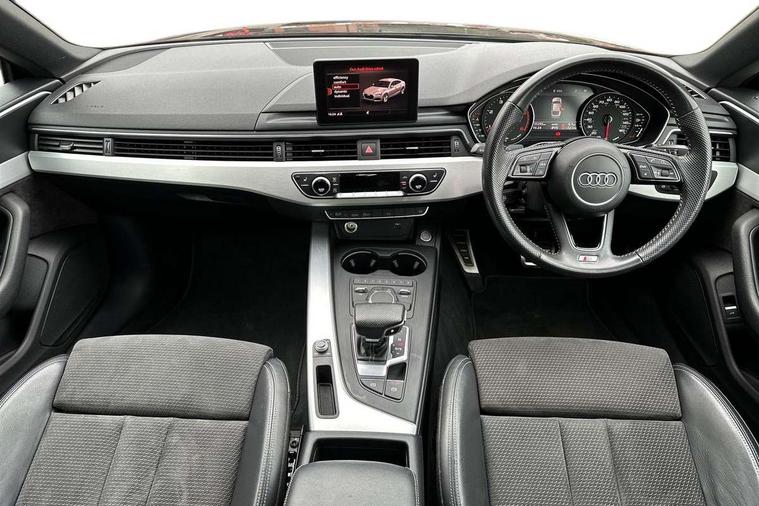 7" Colour driver information system, Audi connect, Audi drive select, Audi parking system plus with front and rear sensors, Audi smartphone interface, Automatic start-stop system with coasting functionality and efficiency programme, Bluetooth interface, Electro-mechanical power steering, MMI Navigation, Power tailgate, Service interval indicator, Voice control system, Diesel particulate filter, CD player, DAB Digital radio, Two SDXC card slots, Air inlet in matt aluminium with horizontal inlay, Aluminium roof frame and window trim, Auto dimming rear view mirror, Black grained rear grille, Body colour bumpers, Body coloured door mirrors, Chrome plated exhaust pipe, Electric adjustable heated door mirrors, Electric front windows, Front fog lights, High beam assistant, High gloss black B pillar trims and triangular rear door trim, Honeycomb side air inlet in titan black, Rain and light sensors, Rear diffuser in Twilight grey matt with honeycomb grille, S line badges on front wings, S Line body styling, S Line front and rear bumpers, S Line side skirts in black, S line sill plates, Twilight grey matt radiator grille in matt aluminium inlay, Windscreen with acoustic glazing, 2 x USB charging port with aux input socket, 40/20/40 split folding 3 seater rear bench seat, Adjustable steering column, Black headlining, Black perforated leather gearknob, Centre console with cupholders, Contrast stitching on seats, steering wheel and gear lever gaiter, Deluxe 3 zone electronic climate control, Front centre armrest, Front head restraints, Front/rear floor mats, Gearshift paddles, Illuminated door sill trim with S logo, ISOFIX child seat mounting and top tether, Jack and tool kit, Luggage compartment mat, Rear headrests, S embossed logo on front sport seats, Stainless steel pedals and foot rest, Non Smokers pack, 3x3 point rear seatbelts, 6 airbags - Driver, front passenger, curtain and side airbags, Electromechanical parking brake, Electronic Stabilisation Control (ESC) including ABS, ASR and EDL, Front passenger airbag deactivation, Height adjustable front seatbelts, Hill hold function, Multi-Collision braking, Pop-up bonnet for pedestrian protection, Pre sense city, Seatbelt monitoring, Tyre pressure warning, Variable restraint system, Warning triangle and first aid kit, Anti theft alarm system, Anti theft wheel bolts, Immobiliser, Keyless Go, Remote central locking, Tyre repair kit,