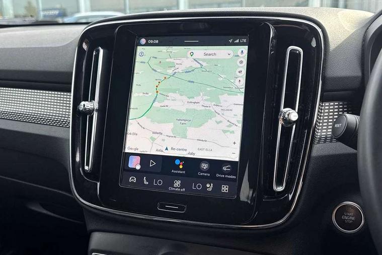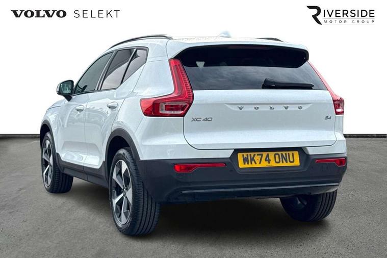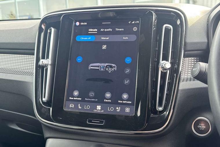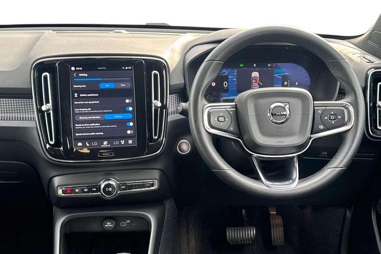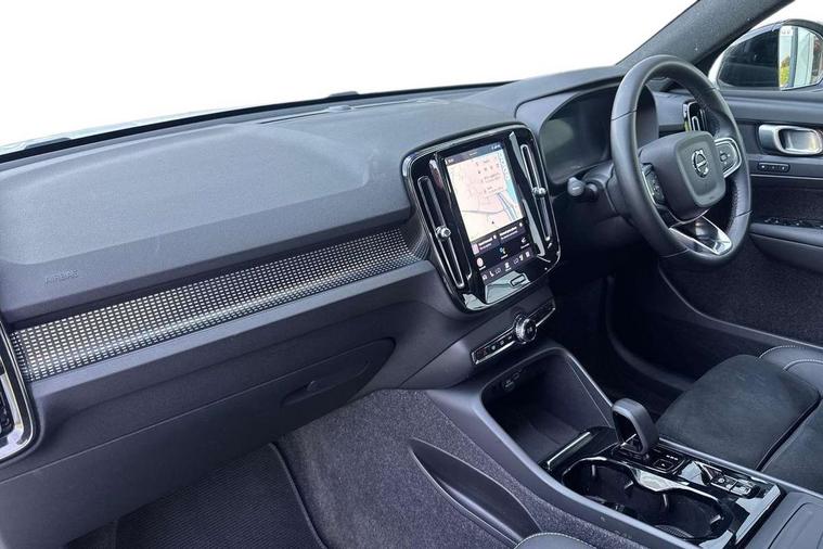 12.3" Progressive Driver Display, 9" centre console portrait touch screen, Adjustable steering wheel force, Apple carplay (wired), Bluetooth handsfree system, Cruise control, Driver alert control, E-call, Front park assist, Google automotive services - Enabled entertainment apps, navigation with google maps, voice recognition with google assistant, Hands free power tailgate, Intelligent speed assistance, Lane keeping aid, Oncoming Lane Mitigation, Rear park assist, Rear park assist camera, Speed sensitive steering, Volvo cars services with app - Driving journal, emergency and breakdown call, engine remote start, remote door locking/unlocking and vehicle dashboard, Wireless/Inductive Mobile Phone Charging, Automatic transmission with start/stop and manual change functions, Dynamic chassis, DAB Digital radio, Steering wheel mounted remote controls, Adaptive brake lights with high level LED brake lights, Auto dimming interior mirror, Automatic headlamp levelling, Automatic LED Headlights + Active high beam incorporating daytime running lights, Front aluminium tread plates, Front and rear electric windows, High gloss black front and rear skid plate, High gloss black front bumper deco, High gloss black mesh front grille with high gloss black surround, High gloss black window trim, Home safe and approach lighting, Integrated roof rails in high gloss black, LED front fog lights, Puddle lights, Rain sensor with automatic windscreen wiper activation, Rear side wing doors, Rear wiper, Roof antenna, Roof spoiler, Visible VIN plate, 12V socket in front tunnel console and luggage compartment, 2-Zone electronic climate control with CleanZone air quality system and pollen filter, 3 seat bench in 2nd row, 3 Spoke tailored steering wheel with chrome trim, 60/40 versatile split folding rear seat, Centre console cupholders and storage, Flexible load floor and grocery bag holder, Floor mats, Front cabin courtesy lights, Front door pocket, front cupholder, ambient front door, rear reading, rear courtesy, instrument panel and tailgate lighting, Front footwell illumination, Front headrests, Front reading lights, Front seat cushion extensions, Front side step illumination (under door), Glovebox bag hook, Heated front seats, Height adjustable passenger seat, Height/reach adjustable steering column, High gloss centre tunnel deco, Illuminated glovebox, Illuminated luggage compartment, Illuminated vanity mirrors + ticket holder, Integrated waste bin, Isofix attachments on outer rear seats, Load cover, Load protection net, Multi directional lumbar support for driver and passenger seat, Power driver seat with memory + exterior mirrors memory, Rear armrest with cupholders, Rear headrests, Single front passenger seat, Underfloor cargo storage, Climate pack without heated front seats - XC40, 3x3 point rear seatbelts, City safety with steering support with Pedestrian + cyclist + front collision warning with full auto brake and rear auto brake, Driver and passenger airbags, Drivers knee airbag, Electronic parking brake with auto hold, First aid kit, Front and outer rear seatbelt reminder and pretensioners, Front seats SIPS airbags, Hill descent control, Hill start assist, Inflatable curtain, Passenger airbag cut-off device, Power child locks on rear doors, Road sign information display, Run off Road Protection, SIPS (Side Impact Protection System), Slippery road and hazard light alert, Stability and Traction Control with Spin control, Engine Drag Control and Corner Traction Control, Tyre pressure monitoring system, Vehicle deceleration control with Anti-lock Brake System, Electronic Brake Distribution and Emergency Brake Assist, Warning triangle, WHIPS whiplash protection system - front, 2 x Key integrated remote control central locking including with deadlocking system and auto open/close windows, Anti-theft alarm including immobiliser/volume sensor + level sensor, Keyless drive includes keyless entry and keyless start, Locking wheel nuts,