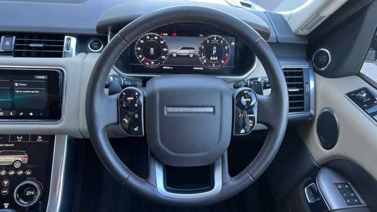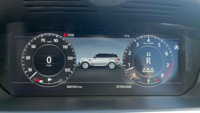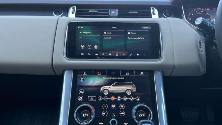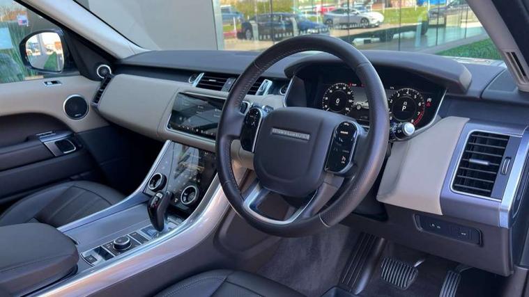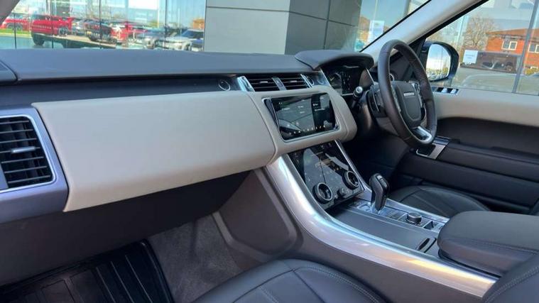 All Terrain Info Centre, Android Auto, Apple car play, Bluetooth connectivity, Electric power assisted steering (EPAS), Incontrol apps in vehicle touchscreen, Interactive Driver display instrument cluster, Mist sensor, Navigation pro system with 10" touch screen, app interface and media storage, Pro services and wifi hotspot, Push button start, Remote premium - Upgraded Incontrol remote app including remote climate control (engine dependent), remote lock + Unlock and remote beep + flash, TFT Virtual Instrument Panel, Touch pro duo system, Trip computer, Adaptive dynamics, All terrain progress control, Configurable dynamics, Electronic air suspension, Gradient release control (GRC), Terrain Response 2 with dynamic program, Twin speed transfer box, Bluetooth audio streaming, DAB Radio (Digital Audio Broadcasting), Incontrol protect - SOS emergency call with automatic collision detection, optimised assistance call and Incontrol remote app essential, USB/aux input socket, Acoustic front and toughened rear side glass, Acoustic laminated front windows, Adaptive brake lights, Auto dimming interior rear view mirror, Automatic headlights, Body coloured bumpers, Centre high mounted stop light, Electric windows with one touch open/close and anti trap, Electrical towing preparation, Engine cover, Follow me home lighting, Front and rear recovery eyes, Front fog lights, Headlight power wash, Heated rear window, Heated windscreen includes heated washer jets, LED rear lamps, Rain sensing windscreen wipers, Rear fog lights, Rear side wing doors, Rear wash/wipe, Remote window closing, Side repeater indicators in mirror, Standard bonnet, Trailer stability assist, 2 way active front head restraints, 2 way rear head restraints, 3 seat bench in 2nd row, Automatic air recirculation system, Centre console with armrest, Climate control memory, Customer configurable single point entry, Driver's footrest, Front and rear cupholders, Front door storage space, Front map lights, Front seat back map pockets, Front stowage pocket, Front/rear passenger grab handles, Isofix child seat preparation, Leather steering wheel, Loadspace light, Loadspace mounting provisions, Lockable glovebox, Multifunction steering wheel, Pollen filter, Power socket, Reach/rake electric adjustable steering column + entry/exit tilt away, Rear centre armrest, Rear ISOFIX, Roller blind loadspace cover, Single front passenger seat, Three 12V accessory power outlets, Smartphone pack - Range Rover Sport, 3 point seatbelts on all seats, Anti-lock braking system (ABS), Brake pre-fill technology, Cornering brake control (CBC), Curtain airbags, Customer configurable autolock, DSC - Dynamic Stability Control, Dual stage driver/passenger airbags, EBD - Electronic brakeforce distribution, Electric parking brake, Electronic traction control, Emergency braking includes city, urban AEB and pedestrian, Front seatbelt pretensioners, Gradient acceleration control, Height adjustable front seatbelts, Hill descent control, Hill launch assist, Low traction launch, Passenger seat occupant detector with front airbags, Power operated child locks, Roll stability control, Seatbelt warning, TPMS (Tyre pressure monitoring system), Immobiliser, Intrusion sensor, Keyless entry, Locking wheel nuts, Perimetric and volumetric anti theft alarm, Remote locking,