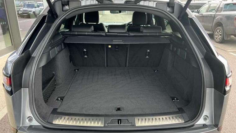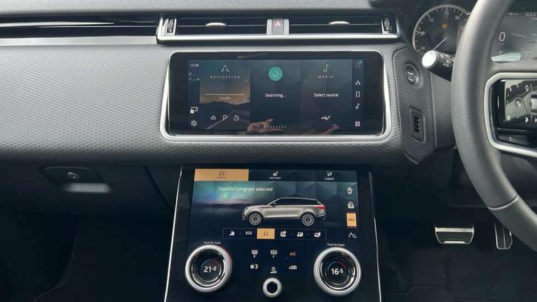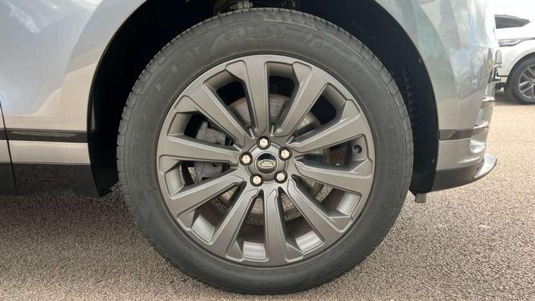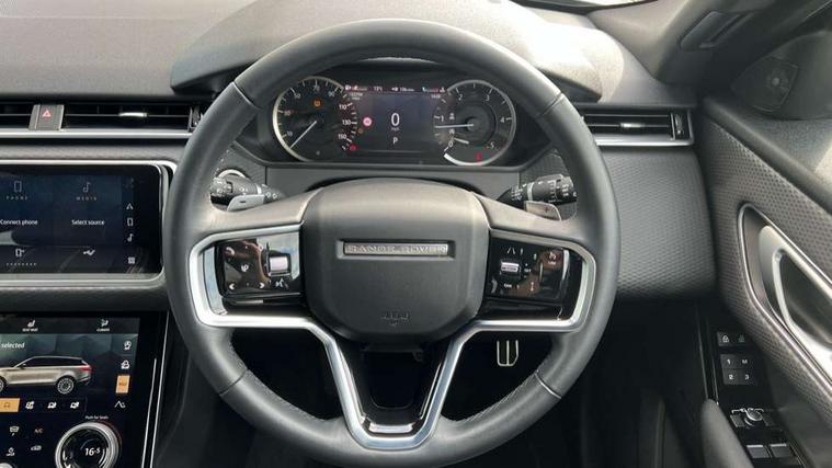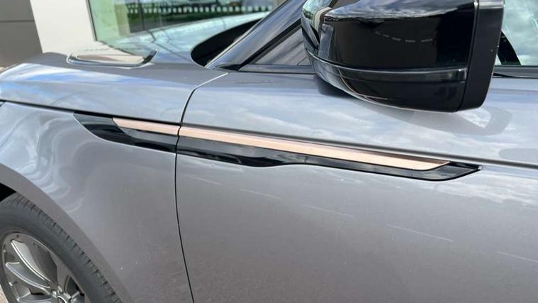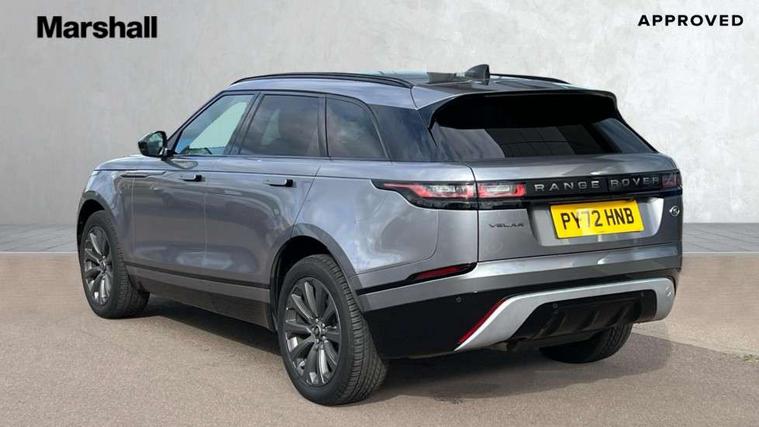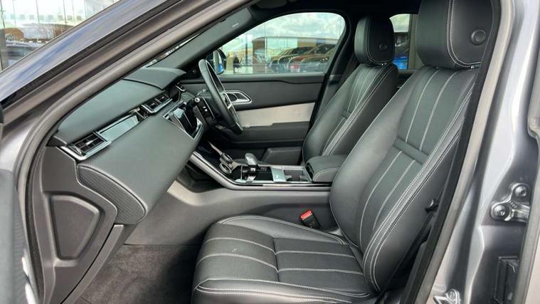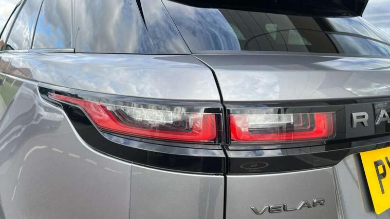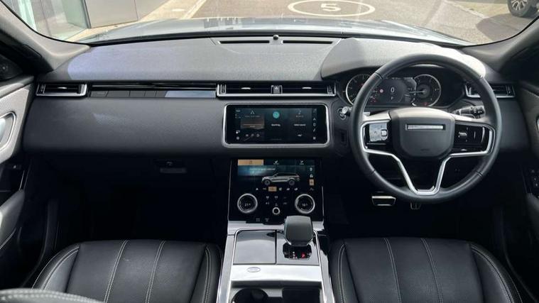 10" deployable touchscreen, Android Auto, Apple car play, Blind spot assist, Bluetooth connectivity, Brake pad wear indicator warning light, Driver condition monitor, eCall emergency call system, InControl remote, Land Rover InControl apps, Lane keep assist, Pivi pro with connected navigation, Push button start, Rear traffic monitor, Service indicator, Speed proportional electronic power assisted steering (EPAS), Traffic sign recognition with adaptive speed limiter, Trip computer, Voice control system, 8 speed automatic transmission, All terrain progress control, Open differential with torque vectoring by braking, Single speed transfer box, Digital Audio Broadcast radio-DAB, Steering wheel mounted controls, Acoustic laminated windscreen, Adaptive front lighting system, Auto dimming interior rear view mirror, Automatic headlamp levelling, Automatic headlights, Body coloured bumpers, Boot protection plate, Electric heated/power fold door mirrors with approach lights and auto dimming driver side, Electric windows with one touch open/close and anti trap, Flush deployable exterior door handles, Follow me home headlights, Heated rear window with timer, Heated washer jets, Heated windscreen, LED 3rd brake light, Metal load space scuff plates, No badge - Removes engine badge, Rain sensor windscreen wipers, Rear animated directional indicators, Rear fog lights, Rear side wing doors, Rear wash/wipe, Tailgate/boot lid spoiler, Trailer stability assist, Velar and R-dynamic badge, 3 seat bench in 2nd row, Ambient lighting, Bright metal pedals, Driver/passenger sunvisors with illuminated vanity mirrors, Isofix system on outer rear seats, Loadspace cover, Overhead lighting console, Overhead stowage for sunglasses, Passive front headrests, Rear air vents, Rear centre headrest, Satin chrome gearshift paddles, Single front passenger seat, Standard interior, Twin front cupholders, Twin sliding front centre armrest, Online pack with data plan - Velar, 355mm front brakes and 325mm rear brakes, 3x3 point rear seatbelts, Anti-lock braking system (ABS), Cornering brake control, Curtain airbags, Customer configurable autolock, Door side intrusion beams, Driver airbag, DSC - Dynamic Stability Control, Electronic brake force distribution, Electronic parking brake, Electronic traction control, Emergency brake assist, Emergency braking, Front and rear seatbelt reminder, Hill descent control, Hill launch assist, Low traction launch, Passenger airbag, Power operated child locks, Rear airbags, Roll stability control, Side airbags, Tyre pressure monitoring system, Unpainted brake calipers, Global lock and unlock switch on driver door, Immobiliser, Intrusion sensor, Keyless entry, Lock only switch on front passenger door, Locking wheel nuts, Perimetric alarm, Remote central locking,