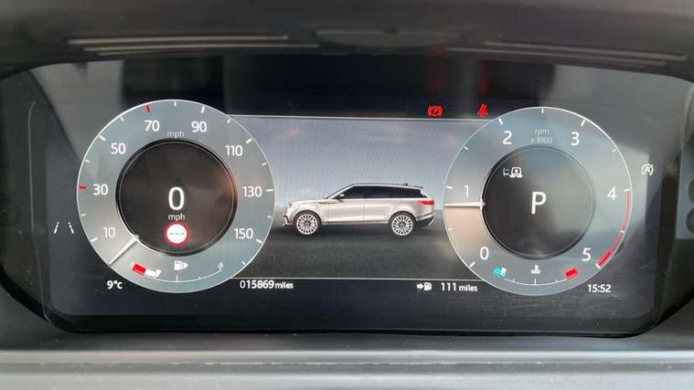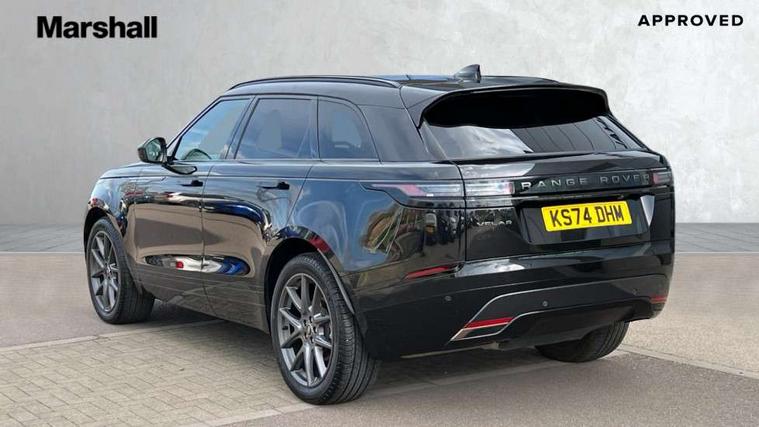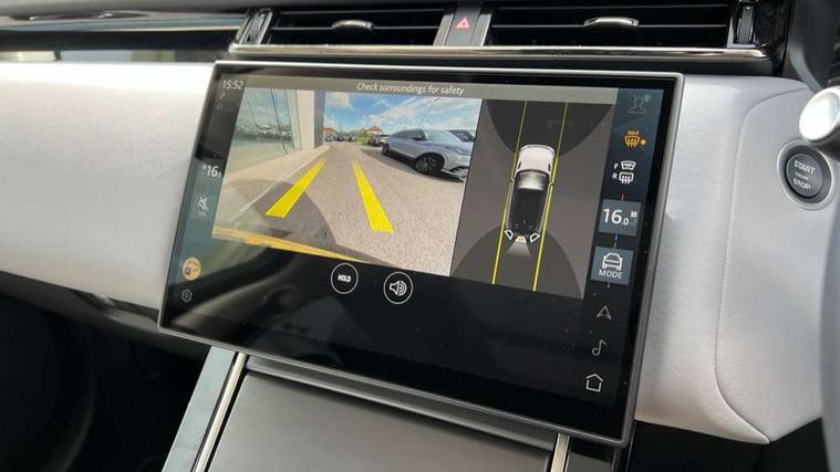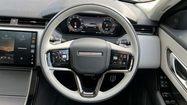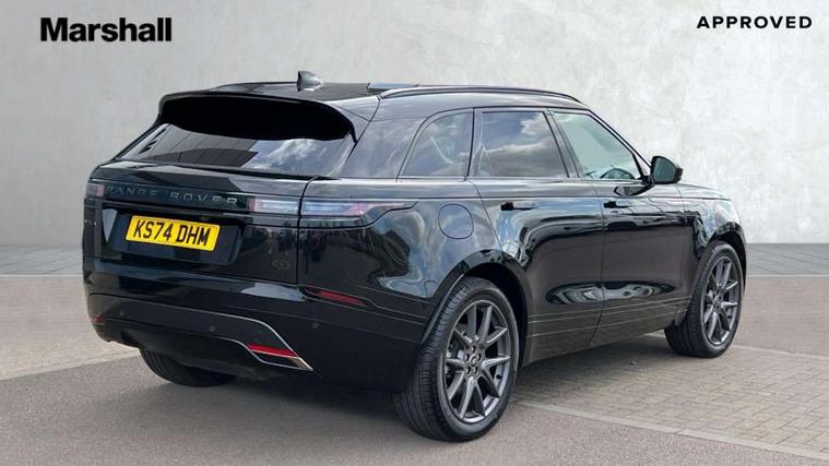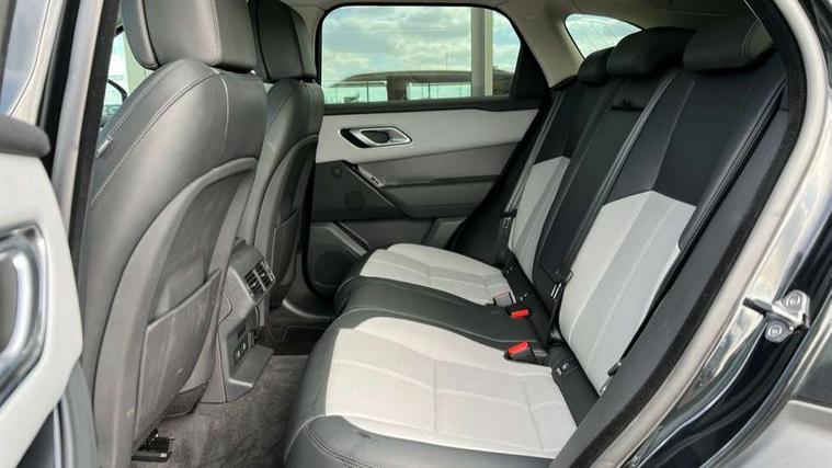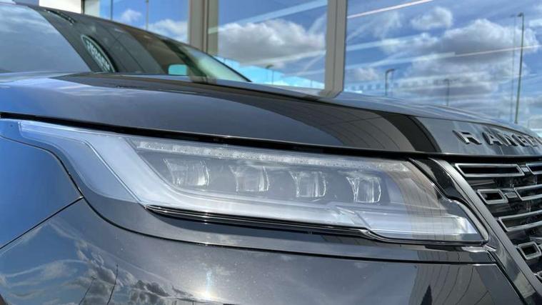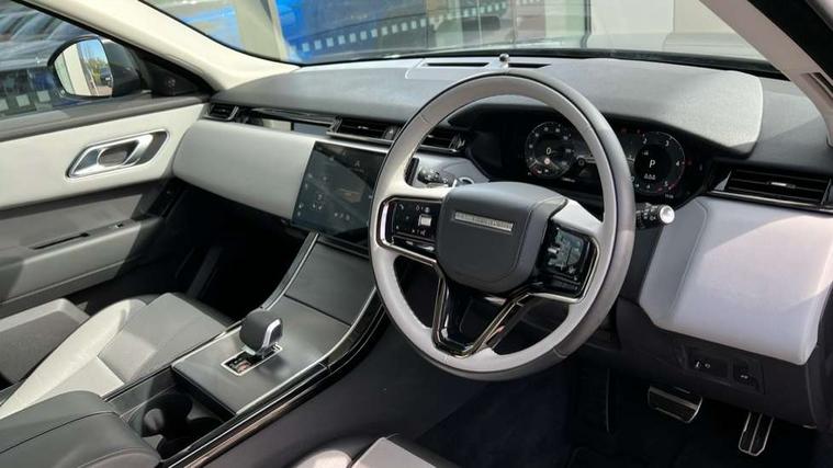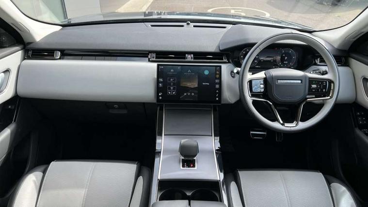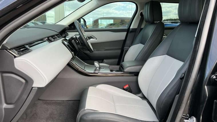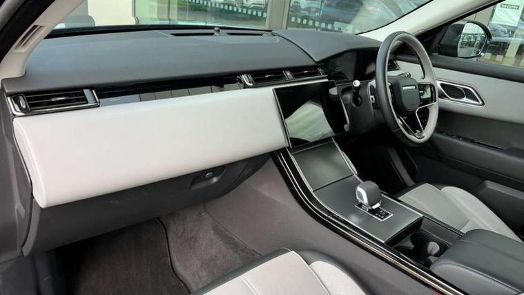 Adaptive cruise control with steering assist, Android Auto, Apple CarPlay, Blind spot assist, Bluetooth connectivity, Brake pad wear indicator warning light, Driver condition monitor, eCall emergency call system, Front and rear parking aid, InControl remote, Land Rover InControl apps, Lane keep assist, Pivi pro with connected navigation, Rear collision monitor, Rear traffic monitor, Service indicator, Speed proportional electronic power assisted steering (EPAS), Traffic sign recognition with adaptive speed limiter, Trip computer, Voice control system, Wireless device charging, 8 speed automatic transmission, Adaptive dynamics, All terrain progress control, Electronic air suspension, Open differential with torque vectoring by braking, Single speed transfer box, DAB radio, Steering wheel mounted controls, 3rd brake light, Acoustic laminated windscreen, Auto dimming interior rear view mirror, Automatic headlamp levelling, Automatic headlights, Body coloured bumpers, Boot protection plate, Electric windows with one touch open/close and anti trap, Flush deployable exterior door handles, Follow me home headlights, Heated rear window with timer, Heated washer jets, Heated windscreen, Metal front tread plates, Metal load space scuff plates, Pixel LED headlights with signature DRL, Power fold, auto-dimming, heated door mirrors with memory and approach lights, Rain sensor windscreen wipers, Rear animated directional indicators, Rear fog lights, Rear side wing doors, Rear wash/wipe, Tailgate/boot lid spoiler, Trailer stability assist, Velar badge, 3 seat bench in 2nd row, Ambient lighting, Bright metal pedals, Carpet mats, Driver/passenger sunvisors with illuminated vanity mirrors, Ebony morzine headlining, Electrically adjustable steering column, Extended leather upgrade, Heated steering wheel, Isofix system on outer rear seats, Loadspace cover, Overhead lighting console, Overhead stowage for sunglasses, Passive front headrests, Rear air vents, Rear centre headrest, Single front passenger seat, Twin front cupholders, Twin sliding front centre armrest, Online pack with data plan - Velar, Power socket pack 2 - Velar, 355mm Front and 325mm Rear brakes, 3x3 point rear seatbelts, Anti-lock braking system (ABS), Cornering brake control, Curtain airbags, Customer configurable autolock, Door side intrusion beams, Driver airbag, DSC - Dynamic Stability Control, Electronic brake force distribution, Electronic parking brake, Electronic traction control, Emergency braking, Front and rear seatbelt reminder, Hill descent control, Hill launch assist, Low traction launch, Passenger airbag, Power operated child locks, Rear airbags, Roll stability control, Side airbags, Tyre pressure monitoring system (TPMS), Global lock and unlock switch on driver door, Immobiliser, Intrusion sensor, Keyless entry, Lock only switch on front passenger door, Locking wheel nuts, Perimetric alarm, Remote central locking, All season tyres,