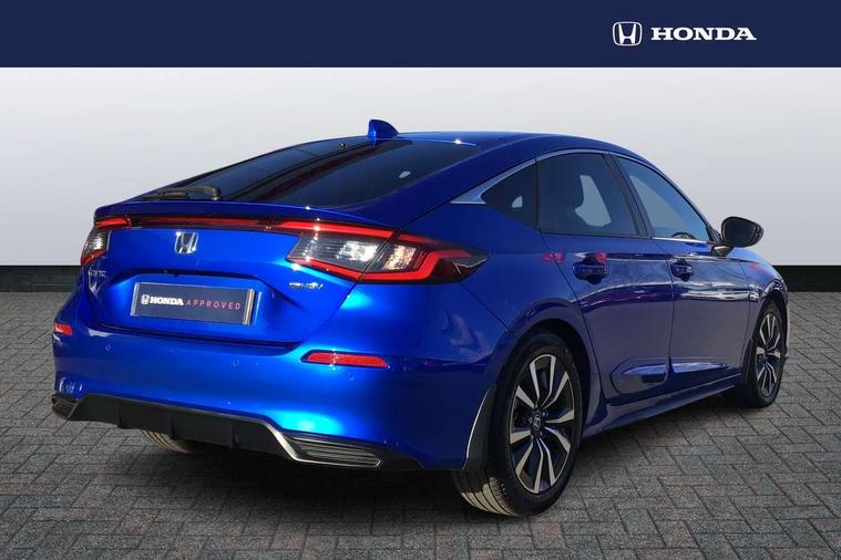 7" Multi information display screen, Adaptive cruise control, Adaptive motion for electric power steering, Adjustable speed limiter, Agile handling assist, BLIS (Blind Spot Information System) with Cross Traffic Monitor, Bluetooth hands free telephone connection, Driving modes, Economy mode, Electric power steering wheel with variable gear ratio steering, Emergency call service, Emergency stop signalling system, Forward collision warning, Front and rear parking sensors, Honda CONNECT with Navigation 9" touchscreen, AM/FM/DAB, Apple Carplay and Android Auto, live traffic info, Honda sensing, Idle stop, Intelligent speed limiter, Lane departure warning system, Lane keep assist, Low speed following, Power meter, Rear parking camera, Road departure mitigation, Tailgate, Traffic jam assist, Traffic sign recognition, Wireless apple carplay, Vehicle stability assist, 'Shark fin' mobile antenna, 2x USB Front socket (1 data & 1 charge), 8 Speakers, Digital Audio Broadcast (DAB) Tuner, Front tweeters, Steering wheel mounted audio controls, Aspherical driver door mirrors, Auto headlight adjuster, Auto headlights, Automatic coming/leaving home lighting function, Automatic rain sensing wipers, Body colour door handles, Body colour door mirrors, Chrome window garnish, Electric adjustable heated door mirrors, Electric front and rear windows, Electrically folding door mirrors, Headlight extension black, High beam assist, High level LED brake light, LED daytime running lights, LED front turn type, LED Headlights, LED rear lights, Material finish grille, Pop up hood, Privacy glass, Rear side wing doors, Rear wiper, Single hidden exhaust pipe, Variable front intermittent wipers, 3 seat bench in 2nd row, 60/40 split folding rear seat, Cargo accessory power socket, Cargo net hooks, Driver and front passenger seat armrests, Driver's electric lumbar adjustment, Driver's seat height adjustment, Dual climate control air conditioning system, Fabric upholstery, Front accessory power socket, Front map lights, Front/rear courtesy lights, Glovebox light, Heated front seats, Hybrid emblem, Isofix points/i size, Leather steering wheel, Meter Illumination white, Passenger seat back pocket, Platinum chrome interior door handles, Rear head restraints, Rear reading lights, Rear seat centre armrest, Single front passenger seat, Sunvisors with illuminated vanity mirrors, Tilt/telescopic adjustable steering wheel, Tonneau cover, Trunk light, USB Rear number 2 x charge, White ambient roof light, 3x3 point rear seatbelts, ABS+EBD+Brake assist, Airbags - driver and front passenger, Airbags - Knee (AS), Airbags - Knee (DR), Anti-whiplash front headrests, Brake hold function, Collision mitigation braking system, Collision mitigation throttle control, Deflation detection system, Driver SRS airbag (single stage inflation), Electronic parking brake with auto hold, Front and rear curtain airbags, Front and rear seat belts with emergency locking retractor (ELR), Front centre airbag, Front side airbags, Hill start assist, Low speed brake system, Manual child lock in rear doors, Passenger airbag deactivate switch, Rear airbags, Regenerative braking/deceleration paddle control, Immobiliser, Mirrors and windows key fob, Remote central locking with 2 jack knife keys, Security alarm, Selectable door unlock, Smart entry + Smart start, Superlocking, Tilt sensors, Ultrasonic security sensor, 17" 2 tone diamond cut alloy wheels, Tyre repair kit,
