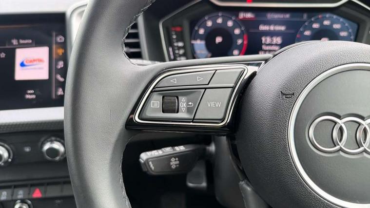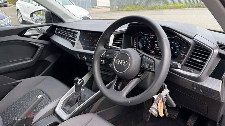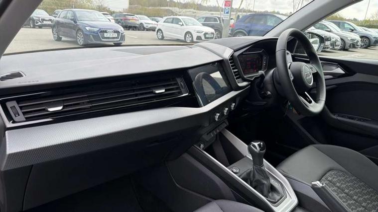 10.25" Digital instrument cluster display classis style instrument dials + speed, odometer, time, outside temperature, telephone menu + fuel level warning, Advanced driver attention and drowsiness monitor, Audi connect emergency call and service, Audi remote connect and control, Audi smartphone interface, Bluetooth interface, Camera based traffic sign recognition, Cruise control, Driver's information system, Electromechanical power steering, Lane departure warning system, Rear parking sensor, Service interval indicator, Speed limiter, Start stop system with recuperation, Voice control system, Washer fluid level indicator, Dynamic suspension, 2 x USB type C connection points, 6 loudspeakers, DAB Digital radio, MMI radio plus with 10.1" colour MMI display screen and MMI touch, Auto dimming rear view mirror, Body coloured bumpers, Body coloured door mirrors, Electric front and rear windows, Electrically adjustable, heated, folding door mirrors with integrated LED side indicator, Front side air inlets in grained matt black and C frame in anthracite black, Headlight cleaning system, Heat insulating glass windscreen and side windows, Heated rear windscreen, High level LED brake light, LED daytime running lights, LED headlights with range control LED rear lights + dynamic rear indicators, Radiator grille and rear diffuser in matt anthracite black, Radiator protective grille frame in matt aluminium silver, Rain and light sensors, Rear fog lights, Rear side wing doors, Rear wiper, Side front spoiler lips in grained matt black, 12V socket in centre console with two cup holders, 3 rear seats with headrests, 3 seat bench in 2nd row, 3 spoke leather multifunction plus steering wheel, 40:60 Split folding rear seat or fully collapsed, Black velour floor mats, Front door sill trims with aluminium inlay, Front head restraints, Front passenger seat, Grey cloth headlining, Height and reach adjustable steering wheel, Interior lighting includes roof module, front and rear reading lights and right luggage compartment lighting, ISOFIX child seat mounting for front passenger and outer rear seats including top tether attachment point of outer rear seats, Leather gear knob with aluminium trim, Leather handbrake grip, Manual air conditioning, Manual height adjustable for driver and front passenger seat, Manually adjustable lumbar support in front seats, Novum cloth upholstery with front sport seats, Luggage compartment pack - A1, 3x3 point rear seatbelts, Audi pre-sense front with pedestrain and cyclist recognition, Brake assist function, Driver and front passenger airbag with front side and head airbags, Electronic Stability Control including ABS, EBD, ASR and EDL, Front passenger airbag deactivation switch, Hill hold assist, Manual rear child locks, Seatbelt height adjustment for front seats, Seatbelt monitoring, Tyre pressure loss indicator, Warning triangle and first aid kit, Anti theft alarm, Anti theft wheel bolts, Immobiliser, Remote control key with safelock, Aluminium trim for control switches, air vents and digital instrument cluster, Black dashboard, Silver grey accent surfaces insert of air vents, interior door handle recesses and centre console in diamond paint finish, Slate grey inlays polygon structure in fine paint finish,