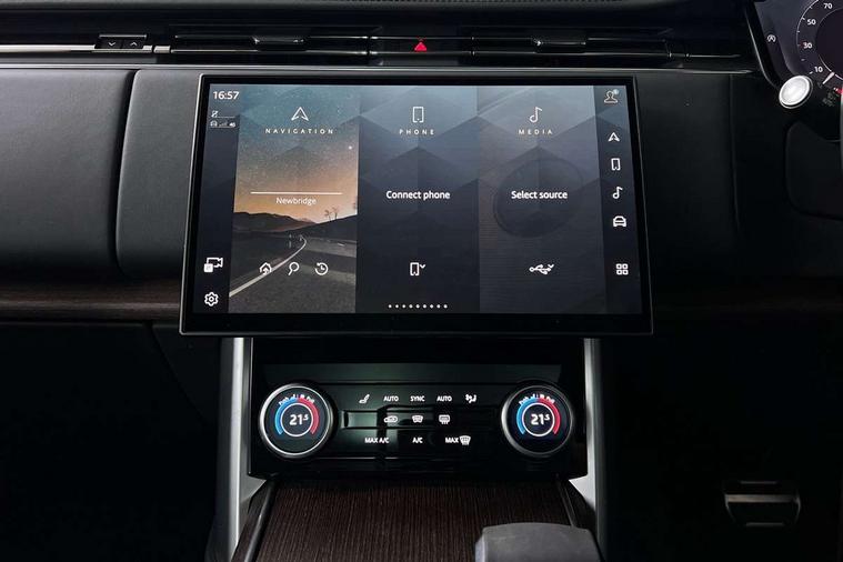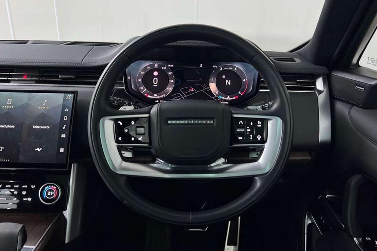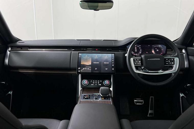13.1" Touchscreen, 3D surround camera inc frwd traffic detection, vehicle clearance guidance, 3D view, clearsight ground view, manoevure light, 360 parking aid, wade sensing, Adaptive cruise control with steering assist, All Terrain Info Centre, All wheel steering, Android Auto, Apple car play, Blind spot assist, Bluetooth connectivity streaming, Driver condition response, Eco mode, Electric power assisted steering (EPAS), Emergency call service, Front and rear parking aid, Interactive driver display, Lane keep assist, Powered gesture tailgate/boot lid, Rear collision monitor, Rear traffic monitor, Remote, Traffic sign recognition with adaptive speed limiter, Wi-Fi Enabled with data plan, Wireless device charging with phone signal booster, 8 speed automatic transmission, Active damper technology system, Adaptive dynamics, All terrain progress control, All Wheel Drive (AWD), Automatic access height, Electronic active differential with torque vectoring by braking, Electronic air suspension with dynamic response, Terrain Response 2 Auto, Twin speed transfer box, Digital Audio Broadcast radio-DAB, Pivi pro including smart settings, Connected navigation pro, nuance speech, USB socket, Acoustic laminated windscreen, Animated directional indicators, Automatic headlights, Automatic levelling headlights, Centre high mounted stop light, Electric windows with one touch open/close and anti trap, Flush deployable exterior door handles, Front and rear recovery eyes, Front fog lights, Headlamp power wash, Heated rear window, Heated washer jets, LED tail lights, Power fold, auto-dimming, heated door mirrors with approach lights, Rain sensing windscreen wipers, Range rover badge, Rear boot, Rear fog lights, Rear side wing doors, Rear wash/wipe, Side repeater indicators in mirror, Trailer stability assist, Winter wiper park position, 12V power sockets, 3 seat bench in 2nd row, Air quality sensor, Bright metal pedals, Cabin lighting, Customer configurable single point entry, Driver and passenger front seat armrests, Easy boot loading, Ebony Carpet, Front and rear cupholders, Front and rear grab handles, Front head restraints, Gearshift paddles, Heated steering wheel, Hook in load space, Loadspace light, Luggage tie down in loadspace, Multifunction steering wheel, Rear centre armrest, Rear head restraints, Rear ISOFIX, Single front passenger seat, Soft close doors, Twin blade sunvisors with Illuminated vanity mirrors, Upper and lower glovebox, Online pack with data plan - Range Rover, 3x3 point rear seat belts, Anti-lock braking system (ABS), Brake hold function, Cornering brake control (CBC), Customer configurable autolock, DSC - Dynamic Stability Control, Electronic brake force distribution, Electronic parking brake, Electronic traction control, Emergency brake assist, Emergency braking, Front airbags with passenger seat occupant detector, Front side airbags, Hill descent control, Hill launch assist, Low traction launch, Occupant protection assist, Power operated child locks, Roll stability control, Tyre pressure monitoring system (TPMS), Immobiliser, Intrusion sensor and alarm, Keyless entry, Locking wheel nuts, Remote central locking, Noble chrome controls,
