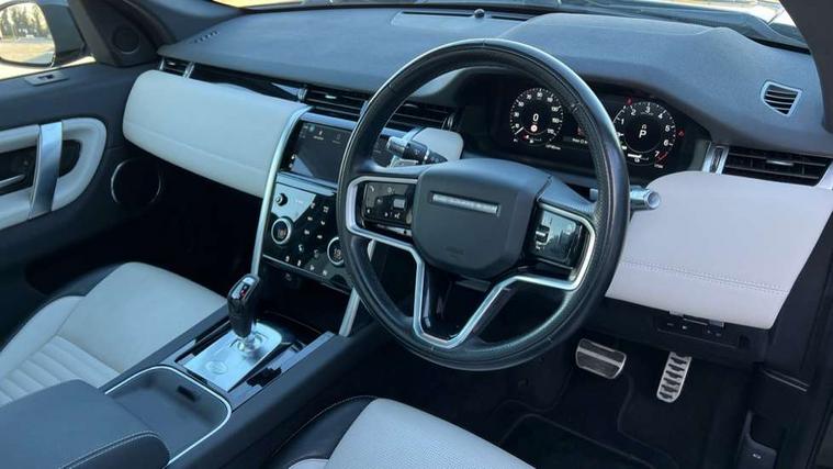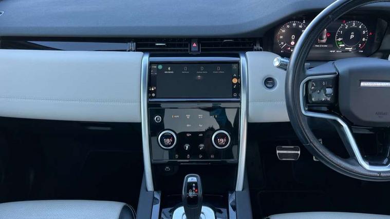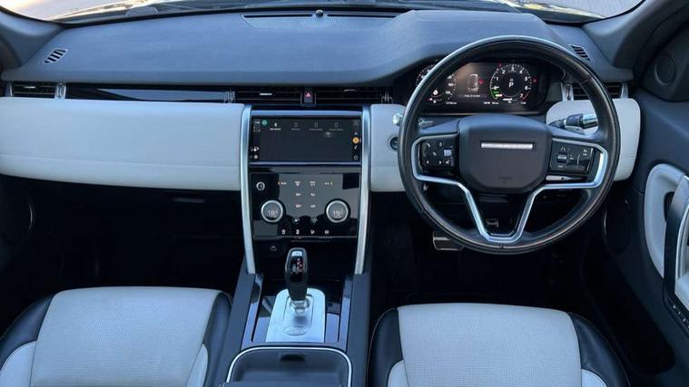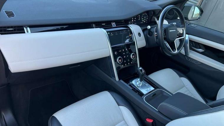 10" touch screen, Adaptive cruise control, Android Auto, Apple CarPlay, Blind spot assist, Clear exit monitor, Driver condition monitor, eCall emergency call system, Front and rear parking aid, InControl remote premium, Lane keep assist, Locking fuel flap, PAS, Pivi Pro connected navigation system with upgraded Infotainment, Powered tailgate/boot lid, Push button start, Rear collision monitor, Rear traffic monitor, Service interval indicator, Traffic sign recognition with adaptive speed limiter, Trip computer, Wade Sensing, 7 kW onboard charger, All terrain progress control, Coil suspension system, Dynamic stability control, Home charging cable, Public charging cable, Terrain Response 2, Bluetooth connectivity including audio streaming, Digital Audio Broadcast radio-DAB, Steering wheel mounted audio controls, 3rd brake light, Automatic headlight levelling, Automatic headlights, Electric front/rear windows, Electric heated/power fold door mirrors with approach lights and auto dimming driver side, Fixed panoramic sunroof with powered sunblind, Front and rear recovery eyes, Heated rear window, Heated windscreen including heated washer jets, Privacy glass, R Dynamic badge, Rain sensing windscreen wipers, Rear fog lights, Rear side wing doors, Rear wing door, Rear wiper, 5 seats, Bright metal pedals, Centre console with armrest, Footwell lights, Front and rear grab handles, Front passenger isofix child seat attachment, Loadspace cover, Loadspace light, Overhead lighting console, Overhead stowage for sunglasses, Rear headrests, Satin chrome gearshift paddles, Sunvisors with illuminated vanity mirrors, Tilt/reach adjustable steering wheel, Black exterior pack - Discovery sport R-Dynamic SE/HSE, Online pack with data plan - Discovery, 3 point seatbelts on all seats, ABS, Brake hold function, Child locks on rear doors, Collision mitigation braking system, Cornering brake control (CBC), Driver/Front Passenger airbags, Drivers knee airbag, Electronic brake force distribution, Electronic parking brake, Emergency brake assist, ESP + traction control, Hill descent control, Hill launch assist, Pedestrian airbag system, Rear seat ISOFIX, Roll stability control, Side and curtain airbags for front and 2nd row seats, Trailer stability control, Tyre pressure monitoring system, Battery Back Up System (BBUS) with tilt sensor, Global lock and unlock switch on driver door, Intrusion sensor, Keyless entry, Locking wheel nuts, Centre stack rails in noble chrome,