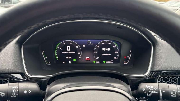 10.2" Multi information display, Adaptive cruise control, Adaptive motion for electric power steering, Adjustable speed limiter, Agile handling assist, BLIS (Blind Spot Information System) with Cross Traffic Monitor, Bluetooth hands free telephone connection, Driving modes, Economy mode, Electric power steering wheel with variable gear ratio steering, Emergency call service, Emergency stop signalling system, Forward collision warning, Front and rear parking sensors, Honda CONNECT with Navigation 9" touchscreen, AM/FM/DAB, Apple Carplay and Android Auto, live traffic info, Honda sensing, Idle stop, Intelligent speed limiter, Lane departure warning system, Lane keep assist, Low speed following, Power meter, Rear parking camera, Road departure mitigation, Smartphone wireless charging plate, Tailgate, Traffic jam assist, Traffic sign recognition, Wireless apple carplay, Vehicle stability assist, 'Shark fin' mobile antenna, 2x USB Front socket (1 data & 1 charge), Centre speaker, Digital Audio Broadcast (DAB) Tuner, Front tweeters, Premium BOSE audio system with 12 speakers, Steering wheel mounted audio controls, Subwoofer, Adaptive driving beam, Aspherical driver door mirrors, Auto dimming rear view mirror, Auto headlight adjuster, Auto headlights, Automatic coming/leaving home lighting function, Automatic rain sensing wipers, Body colour door handles, Body colour door mirrors, Chrome window garnish, Electric adjustable heated door mirrors, Electric front and rear windows, Electrically folding door mirrors, Headlight extension aluminium, High beam assist, High level LED brake light, LED daytime running lights, LED front fog lights, LED front turn type, LED Headlights, LED rear lights, Material finish grille, Panorama glass roof, Pop up hood, Privacy glass, Rear side wing doors, Rear wiper, Single hidden exhaust pipe, Variable front intermittent wipers, 3 seat bench in 2nd row, 4 way electric adjustable passenger seat, 60/40 split folding rear seat, 8 way electric adjustable drivers seat, Cargo accessory power socket, Cargo net hooks, Driver and front passenger seat armrests, Driver and front passenger seat electric lumbar adjustment, Driver's seat electric height adjustment, Driver/passenger front seatback pockets, Dual climate control air conditioning system, Front accessory power socket, Front map lights, Front/rear courtesy lights, Glovebox light, Heated front seats, Heated steering wheel, Hybrid emblem, Isofix points/i size, Leather steering wheel, Leather/synthetic leather upholstery, Meter Illumination white, Platinum chrome interior door handles, Rear air vents, Rear head restraints, Rear reading lights, Rear seat centre armrest, Single front passenger seat, Stainless steel sports pedals, Sunglasses holder, Sunvisors with illuminated vanity mirrors, Tilt/telescopic adjustable steering wheel, Tonneau cover, Trunk light, USB Rear number 2 x charge, White ambient roof light, 3x3 point rear seatbelts, ABS+EBD+Brake assist, Airbags - driver and front passenger, Airbags - Knee (AS), Airbags - Knee (DR), Anti-whiplash front headrests, Brake hold function, Collision mitigation braking system, Collision mitigation throttle control, Deflation detection system, Driver SRS airbag (single stage inflation), Electronic parking brake with auto hold, Front and rear curtain airbags, Front and rear seat belts with emergency locking retractor (ELR), Front centre airbag, Front side airbags, Hill start assist, Low speed brake system, Manual child lock in rear doors, Passenger airbag deactivate switch, Rear airbags, Regenerative braking/deceleration paddle control, Immobiliser, Mirrors and windows key fob, Remote central locking with 2 jack knife keys, Security alarm, Selectable door unlock, Smart entry + Smart start, Superlocking, Tilt sensors, Ultrasonic security sensor, 18" 2 tone black diamond cut alloy wheels, Tyre repair kit,
