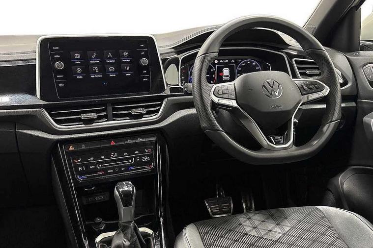 10.25" Digital cockpit pro, Advanced driver attention and drowsiness monitor, Emergency call service, Lane keeping system Lane Assist, Mobile phone interface, Modified key software - reduce switch off time for key status change to Long no motion, Online services, Park assist including front and rear parking sensors, Service interval indicator, Tailgate/trunk lid release from outside, Think blue trainer driver tips and journey analysis, Warning sound and light for front seatbelts unfastened, Wireless app connect, Battery regeneration during braking, Start/stop function with battery regeneration, DAB Digital radio, Diversity antenna for FM reception, Front and rear 6 speakers, Music playback - MP3, WMA and AAC files, Premium USB cable in choice of either Apple or Android smartphone compatibility, SD card slot, Simultaneous pairing of 2 compatible mobile devices, Title and cover art display, We Connect and We Connect Plus functionality, Auto dimming interior rear view mirror, Automatic hazard lights activation under emergency braking, Automatic headlight control with LED separate daytime running lights with coming/leaving home function, Body coloured exterior mirror housings and door handles, Electrically adjustable and heated door mirrors, Extended roof spoiler, Exterior mirrors aspherical on driver side, convex on front passenger side, External USB type C socket and charging sockets, Front windscreen wiper with intermittent wipe and 4 position delay, Heated rear window, LED 3rd brake light, LED rear combination lamps, LED rear number plate lights, Power windows with comfort operation and circuit breaker, Privacy glass for rear side windows and rear window, R-Line design body coloured bumpers, Rain sensor, Rear exhaust tailpipe, Rear fog light on one side and reversing lights on both sides, Rear side wing doors, Rear wash/wipe with intermittent wipe setting, Remote electrically foldable door mirrors, puddle lights and reverse activated passenger's door mirror, 12V power socket in centre console, 3 rear head restraints, 3 seat bench in 2nd row, 4 load lashing points in luggage compartment, Air care climatronic air conditoning system with active combination filter and 2-zone temperature control, Black roof lining, Chrome plated decorative trims, Chrome plated radiator grille inserts, air vent surrounds and light switch surrounds, Door and side trim panel with leatherette insert, Front + rear carpet mats, Front centre armrest, Front cupholders x 2, Front footwell illumination, Front reading light, Front scuff plates with R Line logo, Front seat back storage pockets, Glove compartment door with light, Instrument lighting, white adjustable panel illumination, Interior ambient lighting and surround lighting, Interior light delay, Isofix child seat preparation, Leather gearshift handle, Load-through provision with cup holder when folded down ('Unsplit rear seat bench, split folding backrest, with centre armrest), Luggage compartment lighting, Single front passenger seat, Stainless steel pedals, Storage compartment in left and right luggage area, Storage compartment in rear doors, Storage compartments in driver and front passenger doors, Sunvisors with illuminated vanity mirrors, Variable boot floor, height adjustable and removable, Driver assistance pack without proactive passenger protection - T-Roc, 3 point height adj front seatbelts + pretensioners, 3 point seatbelts in outer rear with ECE label, ABS, Child locks on rear doors, City emergency braking and pedestrian monitoring, Driver and front passenger airbag with front passenger airbag deactivation, Driver and front passenger safety-optimised head restraints, Drivers seatbelt reminder, Electronic parking brake, Electronic Stability Control (ESC) inc EDL (Electronic Differential Lock) and ASR (Traction Control), Front and rear passengers curtain airbag system including front side airbags, Hill start assist, Predictive pedestrian protection, Rear disc brakes, Two tone horn, Tyre pressure loss indicator, Volkswagen roadside assistance, Piano black decorative inserts in dashboard and front door trim panels, Trims for alloy wheels,