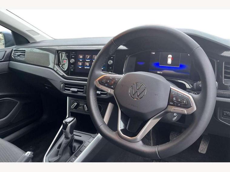 Advanced driver attention and drowsiness monitor, Bluetooth mobile phone interface, Dynamic road sign display, Emergency call service, Mobile phone preparation with inductive charging function, Multifunction front facing camera for distance control, Power assisted speed sensitive steering, Predictive adaptive cruise control without follow-to-stop and speed limiter, Preparation for navigation system with media and internet package, Preparation for We connect and We connect plus, Rear view camera, Speedo and rev counter, electronic odometer, trip, service interval display and exterior temperature gauge, Standard rear axle, Travel Assist - Lane keeping system and traffic jam assist, Travel assist including emergency assist, Trip computer, Warning signal and warning light for front and rear seatbelts not fastened, Washer fluid level indicator, Wireless app connect, Front wheel drive, Rear shock absorpion, Start-stop system with battery regeneration (recuperation - energy recovery during braking), DAB Digital radio, Diversity antenna for FM reception, Automatic dimming interior rear view mirror, Automatic headlight control with LED separate daytime running lights with coming/leaving home function, Body colour bumpers with chrome inserts, Body colour door handles, Body colour door mirrors, Electric front windows, Engine badge deletion, Headlight range adjustment, Heat insulating and laminated safety glass windshield, LED Headlights, LED rear combination lamps, Power folding adjustable/heated exterior mirrors and front passenger exterior mirror lowering function, Rain sensor, Rear electric windows, Rear fog light, Rear side wing doors, Rear tinted glass from B-pillar backwards approx 65% tinted, Rear windscreen washer and wiper with interval delay, Third brake light, 12V power socket in centre console, 2 front and 2 rear reading lights with switch off delay and dimmer, 2 USB-C ports in the front, 2 USB-C charging sockets on the center console in the rear, 3 rear head restraints, 60/40 split folding rear seat and rear seat bench not split, Ceramique roof lining, Chrome plated radiator grille inserts, air vent surrounds and light switch surrounds, Door and side trim panel, Driver and front passenger seat height adjustment, Driver/passenger sunvisors with illuminated vanity mirrors, Front centre armrest, Front seat backrest storage pockets, Front standard seats, Handbrake lever handle in leather, Hartley/Thomas cloth upholstery, Headliner in recycled material, Isofix child seat preparation easy-fit (for two outer rear seats, and front passenger seat) compatible with I-size, Leather trimmed gear knob, Luggage compartment cover, Luggage compartment lighting, Removable luggage compartment floor, Single front passenger seat, Standard climatic zones, Standard pedal cluster, Three spoke leather wrapped multifunction steering wheel with shifting paddles, Light and vision pack - Polo, 3 point height adj front seatbelts + pretensioners, 3 point seat belt for centre rear seat, 3 point seatbelts, outer rear with ECE lable, ABS, Driver and front passenger airbag with front passenger airbag deactivation, Drivers and front passengers safety optimised head restraints, ESC (Electronic stability control) + EDL (Electronic Differntial lock) and ASR (Traction control), Extended and predictive pedestrian/ cyclist protection, Front assist with autonomous emergency braking (for Adaptive Cruise Control ACC up to 130 mph), Front curtain and side airbags with center airbag, Front disc brakes, Hill hold control, Manual child lock in rear doors, Rear drum brakes, Single tone horn, Tyre pressure loss indicator, Alarm with interior protection, Anti-theft alarm system with interior monitoring, backup horn, and towing protection, Anti-theft wheel bolts, Electronic engine immobiliser, Lava stone black gloss/matt decorative inserts in dash and front door panels, 16" Torsby alloy wheels, Low rolling resistance tyres,