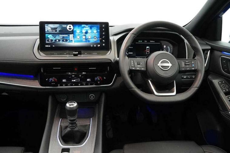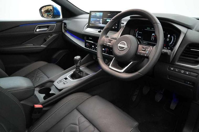 360 degree Intelligent around view monitor with moving object detection, Advanced windscreen head up display, Blind spot warning, Drive assist custom mode, Drive modes (sport, normal, eco), Driver drowsiness and attention warning, Electric speed sensitive power steering, Emergency and breakdown call, Emergency lane keep assist, Emergency Stop Signal (ESS), Engine start/stop button, Event data recorder, Front and rear parking sensors, Full Digital 12.3" TFT Digital Combimeter, Google virtual personal assistance, Hands free power tailgate, Idle stop/start system, In-car WIFI hotspot, Intelligent Cruise control (ICC), Intelligent driver alert system, Intelligent forward collision warning, Intelligent lane intervention, Intelligent speed assist, Lane departure warning system, Nissan connect 12.3 inch touchscreen infotainment system, Nissan connect navigation with google maps, Nissan connect services 2.0 (Google Automotive System), Outside temperature sensor, Rear cross traffic alert, Remote control services - door locks, lights, horn and car locator, Reversing detection, Traffic jam pilot, Traffic sign recognition with legal speed adjustment, Trip computer, Wireless Apple CarPlay/Android Auto, Wireless charging pad, Limited slip differential, 2 front USB-C ports, 2 rear USB-C ports, 6 speakers, AM/FM audio system with DAB, Bluetooth audio streaming, Auto dimming frameless rear view mirror, Auto rear wiper when reversing, Body coloured door handles, Bodyside mouldings, Chrome side window finisher, Electric auto folding door mirrors, Electrically adjustable and heated door mirrors with LED turn indicator, Follow me home headlights, Gloss black mirror caps, High beam assist, Intelligent auto headlights, LED 3rd brake light, LED daytime running lights, LED headlights with adaptive driving beam, LED rear lights, LED sequential turn lights, One touch front and rear electric windows with remote opening and closing, One touch passenger window, Partially body coloured bumpers, Rain sensing wipers, Rear privacy glass, Rear roof spoiler, Rear side wing doors, Rear styling plate, Reverse tilting door mirrors, Shark fin antenna, Silver roof rails, Splash free rain sensing wipers, Super RED rear LED lights, Super UV and infrared cut glass, Thermaclear heated windscreen, 12v power socket in dashboard and luggage, 3 bench rear seats in 2nd row, 3 rear headrests, 60/40 split folding rear seat bench, Chrome interior door handles, Dark headlining, Driver and passenger sunvisors with illuminated vanity mirrors, Driver seat back pocket, Dual zone automatic climate control with pollen filter, Electrically adjustable driver seat, Electrically adjustable lumbar support for driver, Fixed Glass roof with electric sunshade, Front centre console and armrest, Front cupholders, Front door with bottle holders, Heated front seats, Heated steering wheel, Height adjustable front headrests, Height adjustable passenger seat, Leather shift knob, Luggage board system, Luggage space lighting, Manual adjustable lumbar support for passenger, Multifunction steering wheel, Passenger seat back pocket, Quilted/PVC upholstery, Rear door bottle holders, Rear seat armrest with 2 cupholders, RGB ambient light (Extended area coverage), Single front passenger seat, Smooth leather steering wheel, Tilt/telescopic adjustable steering wheel, Two rear isofix child seat anchorage points with top tether, 3x3 point rear seatbelt pretensioners + load limiters, ABS with EBD and brake assist, Autonomous emergency braking, Child locks on rear doors, Curtain and front side, far side airbags, Driver and passenger airbags, Driver, passenger and 2nd row rear seat belt reminder, Electric handbrake with auto hold function, Front seatbelt pretensioners + load limiters, Height adjustable front seatbelts, Hill start assist, Intelligent blind spot intervention, intelligent front emergency braking, Intelligent rear automatic braking, Tyre pressure monitoring system, Vehicle dynamic control, Engine immobiliser, Intelligent key with walk away lock and approach unlock functions, Remote central door locking with deadlocking, Thatcham alarm, 19" Diamond cut alloy wheels, Tyre puncture repair kit,