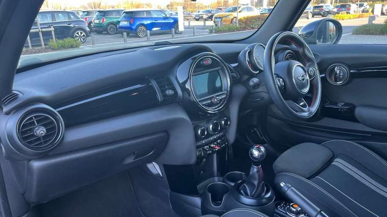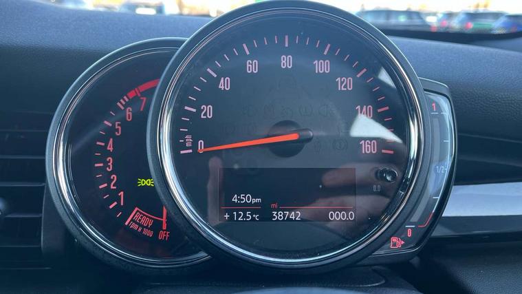 Acoustic seat-belt warning, Basic bluetooth function with USB audio, Brake fluid level warning light, Brake pad wear indicator warning light, DTC - Dynamic traction control, Exterior temperature gauge, Intelligent emergency call, MINI TeleServices, Oil level indicator, On board computer, Push button starter, Service interval indicator, Servotronic PAS, Electronic differential lock, Auxiliary input socket, DAB digital radio module, 2 speed wipers+intermittent wipe, Anti dazzle mirror, Anti trapping/one touch open close front windows, Body coloured bumpers, Chrome bezels around rear lights and headlights, Chrome door handles, Chrome exhaust tailpipe, Chrome grille surround, Chrome plated trim on bottom edge of window, Chrome strip on lower grille, Electric front windows, Electric rear windows, Electrically adjustable door mirrors, Flared wheel arches, Follow me home headlights, Green tinted heat insulating glass, Heated door mirrors/heated windscreen washers, Heated rear window with auto timer, High gloss black tailgate, LED fog lights, LED rear lights, Rear wiper, Roof spoiler in roof colour, Side scuttles, White indicator lights, 2 rear head restraints, 4 boot load lashing points, 4 way manually adjustable passenger seat with height, reach, tilt, backrest and headrest, 6-way manually adjustable driver's seat, Active carbon filter, Adjustable front seats backrest, Air recirculation system, Auxiliary socket in centre console storage compartment, Centre console storage, Driver's seat height adjuster, Driver/passenger sunvisors, Easy entry seats, Front and rear cupholders, Front head restraints, Front passenger grab handle, Gear/selector and handbrake in artificial leather, Internal chrome door handles, Isofix child seat preparation, Luggage compartment lighting, Multifunction steering wheel, Reach + rake adjustable steering column, Rear grab handles, Rear storage trays, Split folding rear seats, Storage compartments in doors, Toolkit in luggage compartment, 3 point seatbelts, 3x3 point rear seatbelts, ABS/EBD, ASC+T, Cornering brake control (CBC), Crash Sensor - activates hazard/interior lighting + unlocks doors, Driver and passenger airbags, Driver/front passenger side airbags, DSC - Dynamic Stability Control, Fuel cut off safety device, Head airbags, Hill start assist, Manual passenger airbag deactivation function, Seatbelt pretensioners, Tyre pressure warning, Ventilated front disc brakes, Drive away door locking, Locking wheel bolts, Remote central locking/doors+fuel cap+tailgate, Second remote key, Thatcham category 1 alarm + immobiliser,
