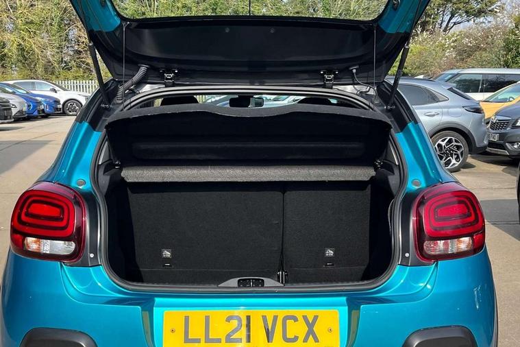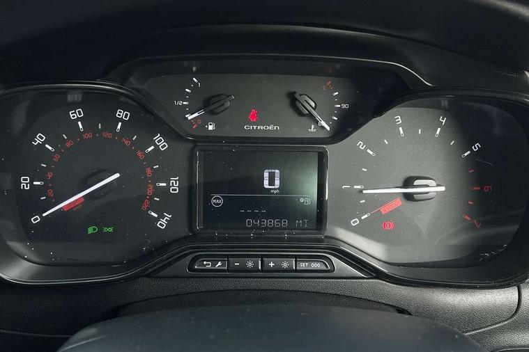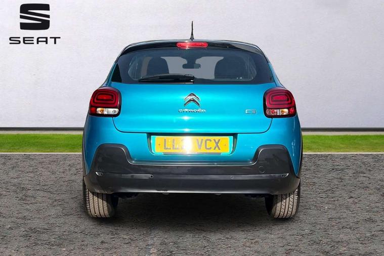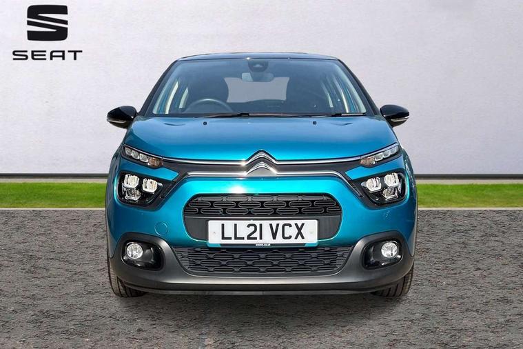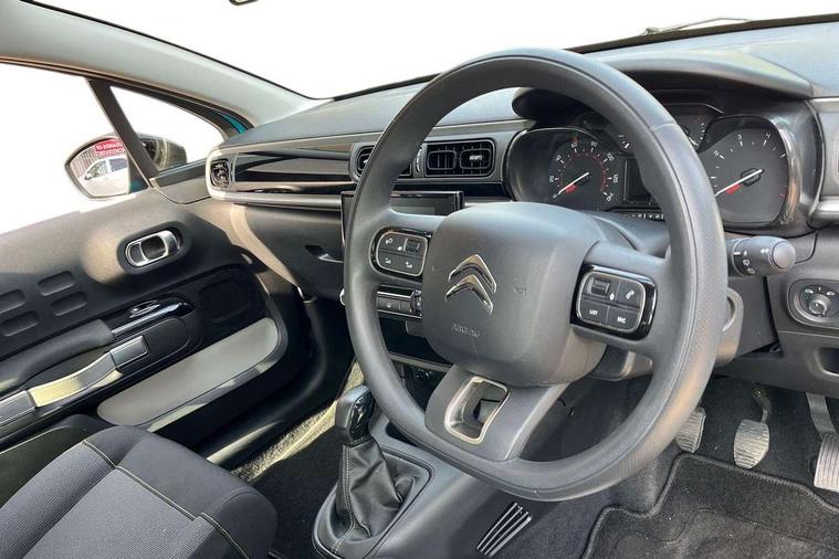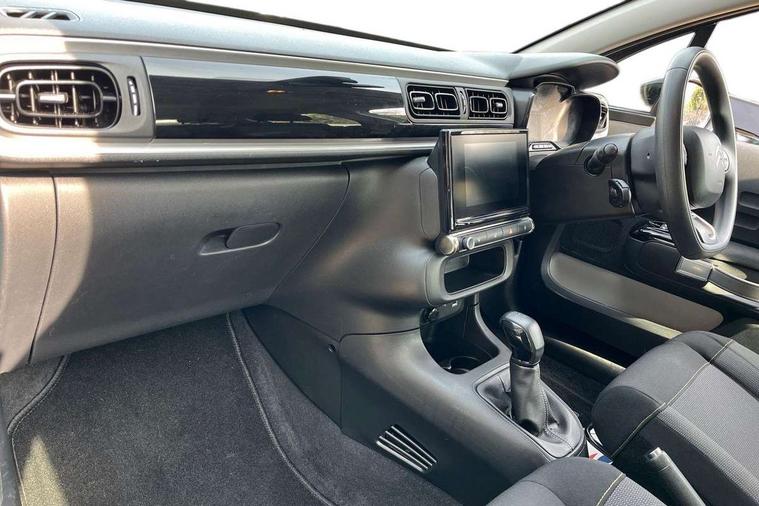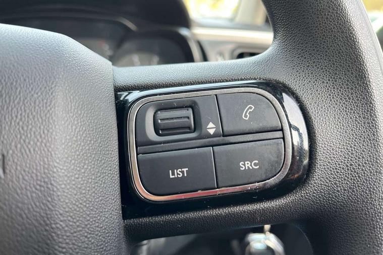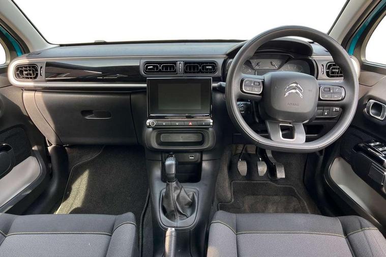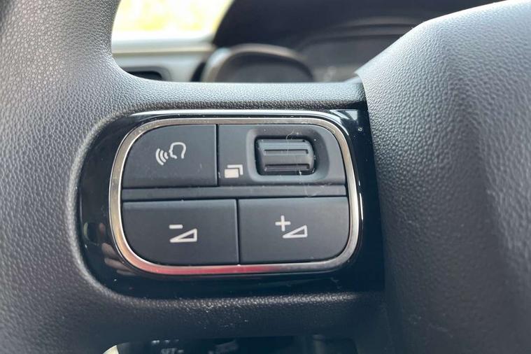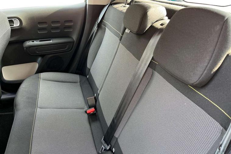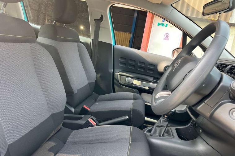 Coffee Break Alert, Cruise control + speed limiter, Exterior temperature display, Instrument cluster with white LCD and analogue gauges, Multi function trip computer, Rear parking sensors, Variable assistance power steering, USB connection, 3D rear light signature, Automatic activation of hazard warning lights, Body colour bumpers, Body colour door handles, Chrome decoration on front face, under chevrons and around daytime running lights, Citroen illuminated signature in LED headlights and LED daytime running lights, Electric folding and heated door mirrors, Electric front windows with one touch/anti-pinch, Fog lights integrated into front bumper, LED Headlights, Manual rear windows, Matt black finish B pillar, Rear windscreen wiper with intermittent mode linked to vehicle speed and automatic activation when reverse gear selected, Roof colour rear view mirror caps, Standard day night switchable interior rear view mirror, Tinted side windows, 1/3 to 2/3 split folding rear seat, 12V socket, Automatic air conditioning, Driver and passenger's sun visor with courtesy mirror, Driver's seat height adjustment, Fixing boot light, Front lighting panel with map reading lights, Front seats adjustable with forward back slide and adjustable backrest, Height adjustable front head restraints, Height/reach adjust steering wheel, ISOFIX mounting on outer rear seats with top tether and labels indicating fixing points, Mica cloth upholstery, Parcel shelf, Seatbelt unfastened on the move audible and visual alert for front and rear seats, Soft touch gear lever with leather effect gaiter and overstitching, Storage space under touchscreen with rubber mat, Three rear seats with head restraints, Upholstered armrest in front and rear doors, Safety pack 1 - C3, Visibility pack with automatic lights - C3, ABS with Electronic brakeforce distribution and Emergency braking assistance, Driver and front passenger seatbelts with pyrotechnic pretensioners and force limiters, Driver's airbag, Electric child locks, ESP with anti skid system, Front passenger airbag, Front passenger airbag deactivation, Front side airbags + front/rear curtain airbags, Hill start assist, Manual parking brake with chrome finish button, Mono-tone horn, Three rear three point seatbelts with outer seats have pretensioners and force limiters, Tyre pressure monitoring system, Anti theft alarm, Automatic door and boot locking with automatic unlocking in case of impact, Central locking with locked indicator and interior one touch lock button, Immobiliser, Remote control central locking with two plip keys, Gloss black dashboard finish with grey surround, 16" Hellix diamond black alloy wheels, Tyre puncture repair kit,