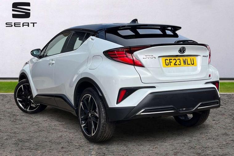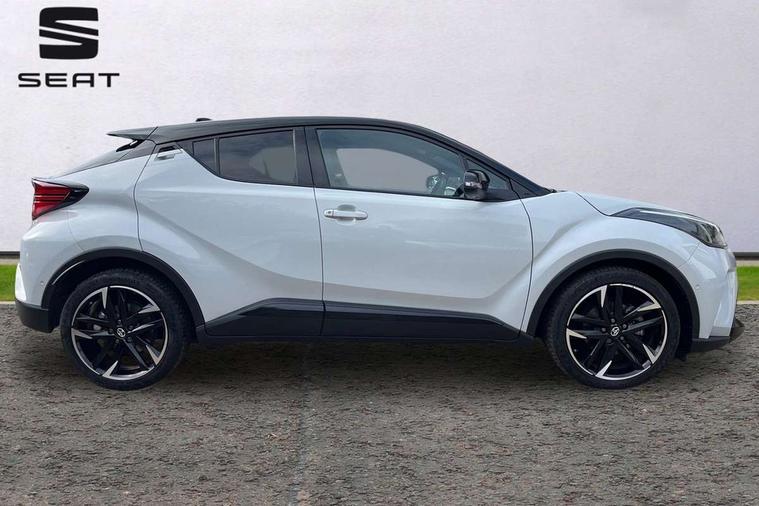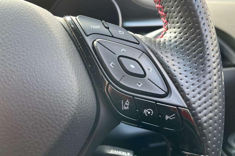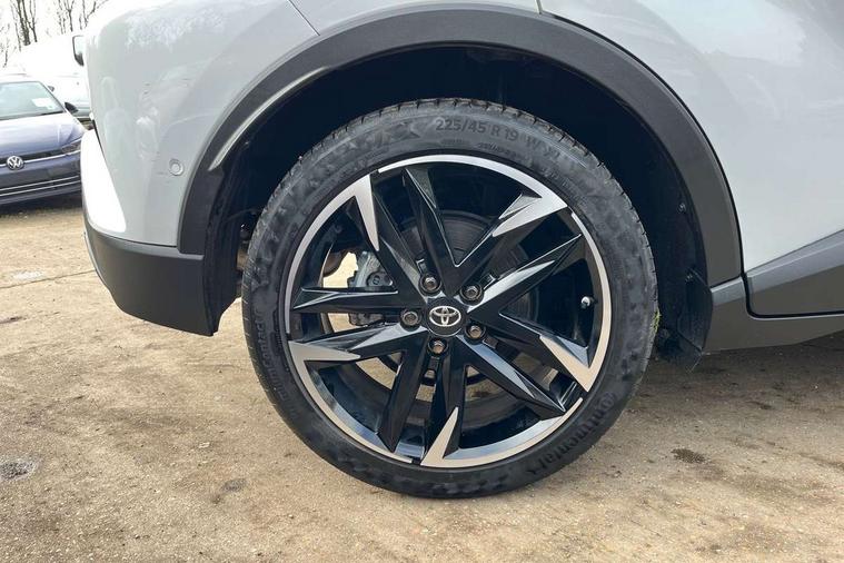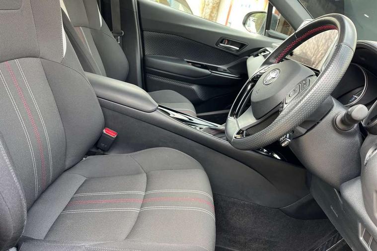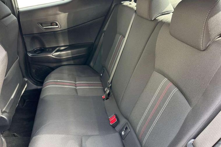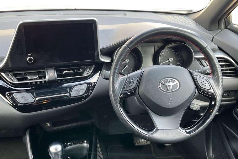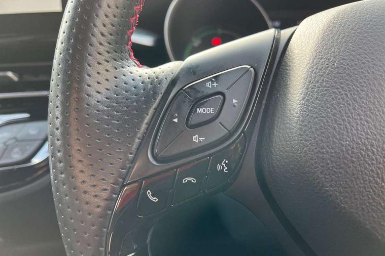 4.2" coloured TFT screen for multi-information display, Adaptive cruise control, Apple car play and Android auto, Bluetooth connectivity, E-call, Electric power steering, Hybrid system indicator, Lane departure alert with steering control, Lane trace assist, Push button tailgate release, Remote boot door release in cabin, Remote boot door release in key, Reversing camera, Road sign assist - RSA, Simple Intelligent parking assist, Smart voice assist, Touch 2 Go navigation system, Trip computer, Voice recognition, Wireless smartphone integration, Vehicle Stability Control (VSC), 6 speakers, AM/FM radio, DAB Radio (Digital Audio Broadcasting), Toyota touch 2 multimedia system with 8" display, USB connector, Wi-fi connectivity, Adaptive front light system, Adaptive LED Headlights, Anti-jam protection on power windows, Auto high beam, Auto up and down function on all power windows, Automatic headlight levelling, Automatic headlights, Automatic headlights cut-off, Black and body coloured rear bumper, Black upper front grille, Body colour door handles, Body colour door mirrors, Body coloured front bumper, Boot door release with push button, Chrome front lower bumper, Electric heated door mirrors, Follow me home headlights, Front and rear power windows, Front spoiler lip in black, Headlight cut off reminder, Honeycomb lower front grille, LED daytime running lights, LED fog lights, LED front light guide, LED High mounted stop light, LED rear brake lights, LED rear combination lights, Noise reduction layer on front windows and windscreen, Power adjustable door mirrors, Privacy glass, Rain sensor, Rear sequential indicators, Rear side wing doors, Rear spoiler, Rear tailgate, Rear window defogger, Rear window wiper, Shark fin antenna, UV-filter on driver and passenger windows, UV-filter on rear windows, Variable front intermittent wipers, 12v power outlet - front, 3 rear headrests, 3 seat bench in 2nd row, 3 spoke perforated leather steering wheel, 60/40 split folding 2nd row rear seats, Adjustable rear headrests, Adjustable speed limiter switch on steering wheel, Assist grips front and centre pillar, Audio and telephone switches on steering wheel, Black front door assist grips, Blue ambient lighting on front cup holders, Blue ambient lighting on front doors, Boot light, Chrome interior door handles, Cloth upholstery, Driver and front passenger personal light, Driver and front passenger Whiplash Injury Lessening seats, Driver and passenger seatback pockets, Dual zone automatic air conditioning, Floor mats, Front cupholders, Front head restraints, Front sports seats, Glovebox with internal light, Hard tonneau cover, Heated driver and front passenger seats, Hooks for luggage holding net, Humidifying Nanoe air purifier, Illuminated entry system, Isofix attachments on outer rear seats, Leather gearshift, Light on driver sun visor, Light on passenger sun visor, Manual telescopic steering wheel, Manual tilt steering wheel, Manually height adjustable driver seat, Manually height adjustable front passenger seat, Manually reclining driver seat, Manually reclining front passenger seat, Manually sliding driver seat, Manually sliding front passenger seat, Microphone on front personal light, Mirror on driver sun visor, Mirror on passenger sun visor, Multimedia switches on steering wheel, Pollen filter, Power adjustable lumbar support on driver seat, Shopping bag hooks, Single front passenger seat, Slow opening on lower glovebox, Voice recognition switch on steering wheel, Tech with parking sensor pack - C-HR, 16 Disk front wheel brake, 3x3 point rear seatbelts, ABS+EBD+Brake assist, Electronic parking brake, Front and rear seatbelt reminder, Front passenger airbag on/off switch, Hill start assist control (HAC), Pre collision system with pedestrian detection, Pre-tensioners and force limiters, Rear door child safety locks, SRS Airbags - Driver + Front passenger, front side, front and rear curtain and driver's knee airbags, Toyota safety sense, Tyre pressure monitoring system, Tyre pressure warning system, Acoustic vehicle alert system (AVAS), Glass-breaking alarm sensors, Immobiliser, Intrusion alarm, Intrusion sensor, Motion sensor alarm, Power door locks, Power passenger window lock, Remote central locking, Black lower dashboard, Black upper dashboard, Piano black console, Silver deco line on upper dashboard, 19" Black machined alloy wheels, Tyre repair kit,