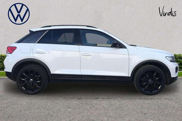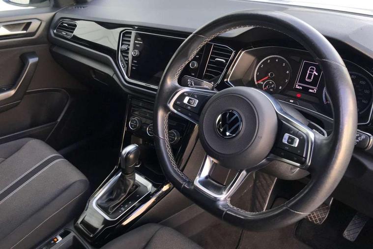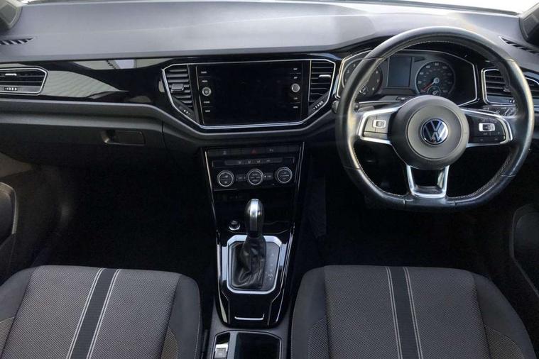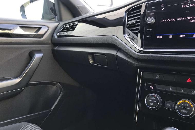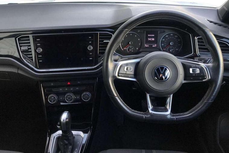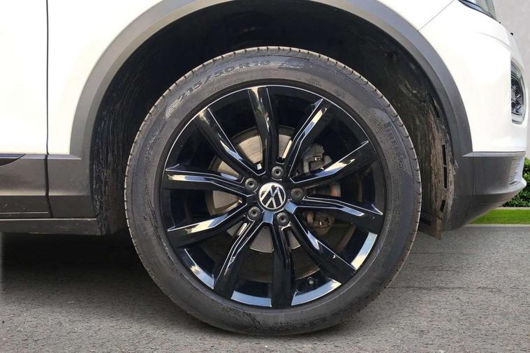 'Lights On' Reminder warning buzzer, Adaptive cruise control, Bluetooth telephone and audio connection for compatible devices, Car information display, Driver tips and journey analysis, Emergency call service, Lane assist with warning text instrument cluster, Modified key software - reduce switch off time for key status change to Long no motion, Multifunction camera, Multifunction computer with visual gear change recommendation for fuel consumption, Service interval indicator, Think blue trainer driver tips and journey analysis, Warning sound and light for doors and tailgate open, Warning sound and light for front seatbelts unfastened, Wireless app connect for apple carPlay, Battery regeneration during braking, Start/stop function with battery regeneration, DAB Digital radio, Diversity antenna for FM reception, Multi device interface (MDI) with USB connection, Music playback - MP3, WMA and AAC files, Premium USB cable in choice of either Apple or Android smartphone compatibility, SD card slot, Simultaneous pairing of 2 compatible mobile devices, Single CD player, glovebox mounted, SMS functionality - read, compose and send SMS messages using touch-screen display, Storage compartment with longitudinal and height adjustable in armrest and two rear air vents, Title and cover art display, USB-C Interface and USB charging socket, Auto dimming interior rear view mirror, Automatic coming/leaving home lighting function and daytime running lights, Automatic hazard lights activation under emergency braking, Black grained lower door protectors, Black grained wheel arches, Black roof rails, Body colour door handles, Body colour sports bumpers with silver metallic underbody fascia, Body coloured bumpers and radiator grille with chrome trim and front fog lamps with chrome bezel, Chrome trim on upper and lower radiator grille, Dusk sensor, Electrically foldable, adjustable and heated door mirrors with puddle lights and reverse activated kerb-view adjustment on passenger's door mirror, Exhaust tailpipes in black, External USB type C socket and charging sockets, Front and rear electric windows, Front windscreen wiper with intermittent wipe and 4 position delay, Fully galvanised body, Heated rear window, High level 3rd brake light, LED headlamps with automatic range adjustment and unique signature LED separate daytime running lights, LED rear number plate lights, LED tail lamp rear comination lamps, Privacy glass, Rain sensor, Rear tinted glass from B-pillar backwards approx 65% tinted, Rear wash/wipe with intermittent wipe setting, Trim strips on grille and vehicle side, Volkswagen roundel, 12V socket in centre console storage area, 3 rear head restraints, 4 load lashing points in luggage compartment, Black roof lining, Climate control - 2 zone electronic air conditioning with automatic air recirculation and allergy filter, Door and side trim panel, Drawer under drivers seat, Front centre armrest, Front cupholders x 2, Front seat back storage pockets, Glovebox, Height adjustable front seats, Height/reach adjust steering wheel, Instrument lighting, white adjustable panel illumination, Interior light in footwell, Isofix easy fit child seat preparation for 2 outer rear seats, Leather gearshift knob, Leather multi function sport steering wheel with gear change selection via paddle shift on steering wheel, LED interior light with switch off delay/dimmer and 2 front/rear LED reading lights, Load through provision with single cup holder when folded down, Luggage compartment cover, removable, Luggage compartment lighting, Split folding rear seat backrests with centre armrest, Storage compartment in left and right luggage area, Storage compartment in rear doors, Storage compartments in driver and front passenger doors, Sunvisors with illuminated vanity mirrors, White ambient lighting, Black decal on C-pillar pack - T-Roc, 3 rear three point seatbelts, ABS, Curtain airbags, Driver and front passenger safety-optimised head restraints, Drivers and front passengers airbags with passengers deactivation switch, Drivers seatbelt reminder, Electronic parking brake with auto hold, Electronic stability control (ESC) includes ASR, EDL, EDTC and trailer stabilisation function, Front assist with city emergency braking and pedestrian monitoring, Front seat side impact airbags, Predictive pedestrian protection, Rigid safety cell with front and rear crumple zones, Single tone horn, Three point height adjust front seatbelts + pretensioners, Tyre pressure loss indicator, Ventilated front and rear disc brakes, Volkswagen roadside assistance, Alarm with remote central locking and interior protection, Electronic engine immobiliser, Remote central locking with SAFELOCK, radio remote control with 2 remote control folding keys, Black decorative trims, Piano black decorative inserts in dash, centre console and door panel, 18" Arlo black diamond turned surface alloy wheels with low rolling resistance tyres and anti theft wheel bolts,