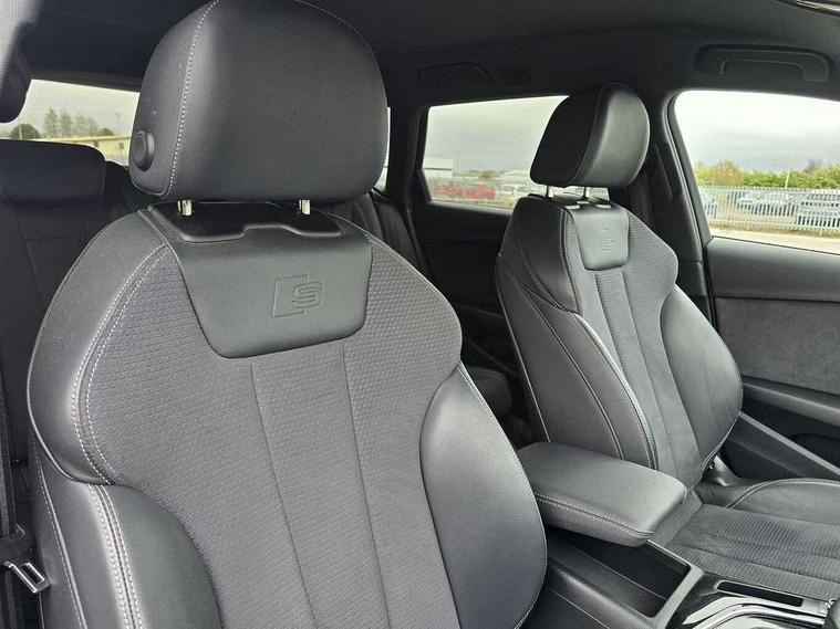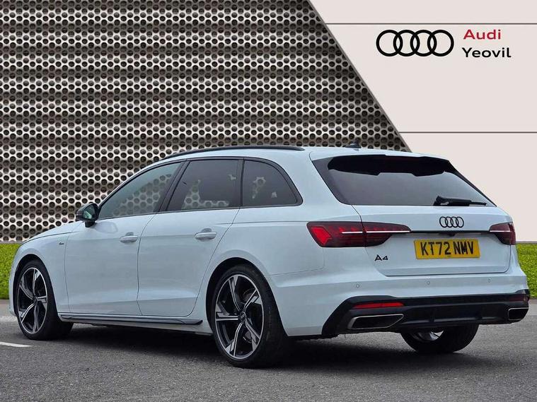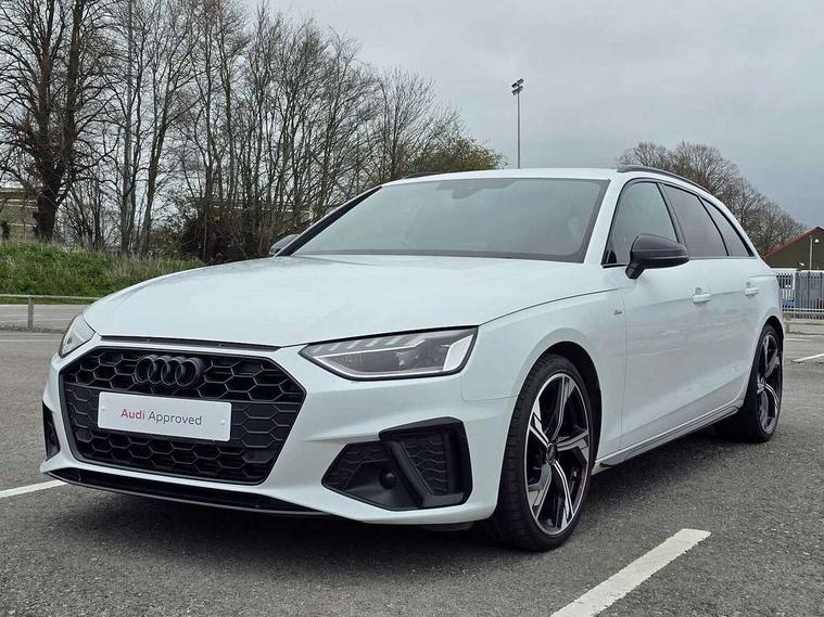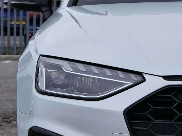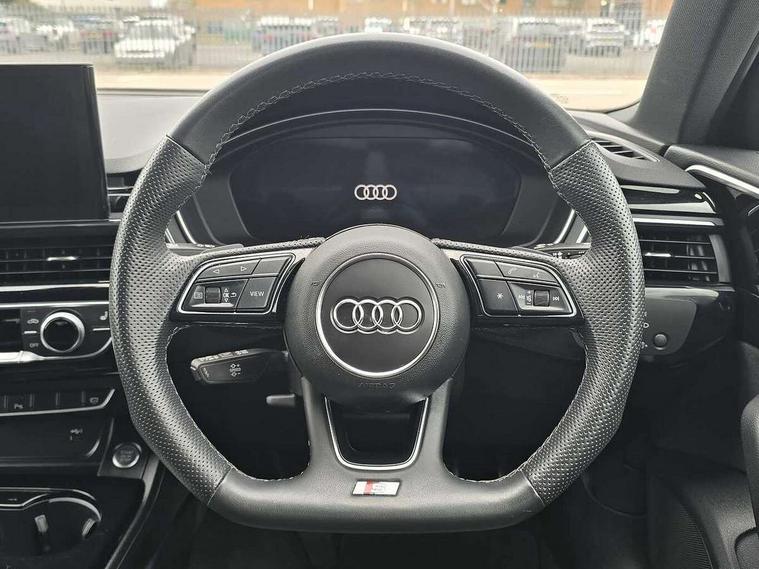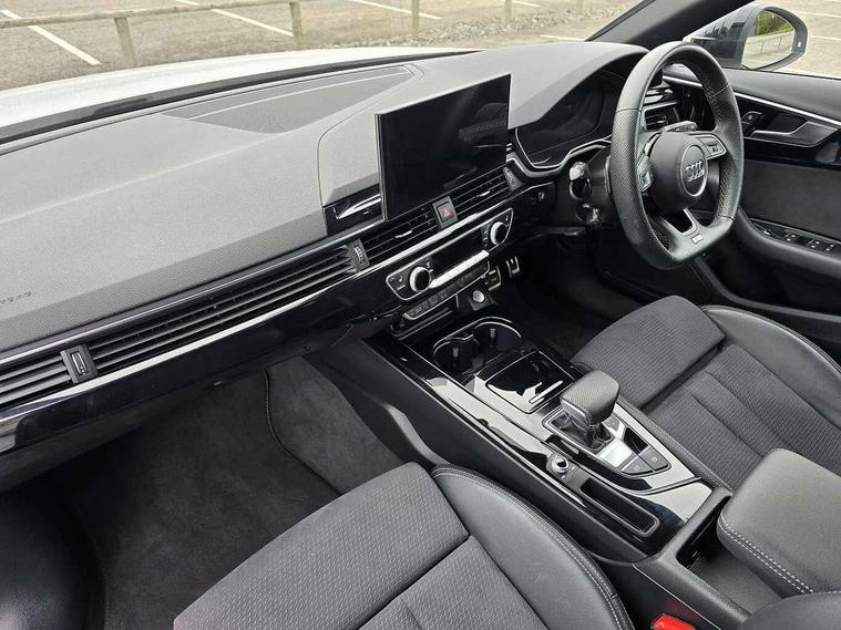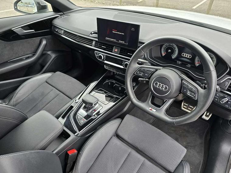 Audi connect safety and service (e-call), Audi connect with Amazon Alexa Integration, Audi drive select, Audi smartphone interface, Audi virtual cockpit, Automatic start-stop system with coasting functionality and efficiency programme, Bluetooth interface, Electromechanical power steering, Email, calendar and text messages displayed via MMI, MMI Navigation plus with MMI touch includes 10.1" high resolution colour MMI display, 3D map, Power operated tailgate, Voice control system, 54 litre fuel tank, Sports suspension lowered by 23mm, 2 USB charging ports, 8 passive loudspeakers, DAB digital radio reception, Audi beam uses LEDs to project the audi logo onto the ground as you exit your A4, Auto dimming rear view mirror, Black Audi rings and black badging (model name in black badging, no engine badging), Body colour door handles, Body colour front spoiler lip, Body colour side sill trim, Electrically folding auto dimming/adjustable/heated door mirrors with LED side indicators and kerb view function for passenger side, Exhaust tailpipes in high gloss black, Front and rear bumpers with side skirts, Grained matt black side air inlets with matt aluminium silver inlay, High beam assistant, High gloss black B pillar trims and triangular rear door trim, LED headlights with LED rear lights + dynamic rear indicators + headlight adjustment and high beam, turning light + LED daytime running lights, LED third brake light, Privacy glass, Rain and light sensors, Rear diffuser in matt titanium black with trim strip in matt aluminium silver, Rear side wing doors, Rear wiper, RS4 rear spoiler in body colour, S Line badges on the front wings, S Line roof edge spoiler, Variable intermittent front wash/wipe, Windscreen with acoustic glazing, 4 way electric lumbar support for driver and front passenger, 40/20/40 split folding 3 rear seat bench in 3 parts with rear centre armrest, Black cloth headlining, Black perforated leather gearknob, Contrast stitching on seats, steering wheel and gear lever gaiter, Deluxe 3 zone electronic climate control, Door sill trims with aluminium inlay, Electric load area cover, Front and rear head restraints, Front centre armrest, Heated front seats, Illuminated door sill trims with S logo, ISOFIX child seat mounting and top tether, Manual seat adjustment, Single front passenger seat, Stainless steel pedals and foot rest, Black styling pack - A4 Avant, LED Interior light pack - A4/S4, 3 rear seatbelts, 6 airbags - Driver, front passenger, curtain and side windows, Electronic Stabilisation Control (ESC) including ABS, ASR and EDL, Hill hold assist, Multi collision brake assist, Pop-up bonnet for pedestrian protection, Pre sense city, Rear door child safety locks, Seatbelt monitoring, Warning triangle and first aid kit, Anti theft alarm, Anti theft wheel bolts, Central locking, Keyless Go, Piano black finish inlay, 19" 5 arm flag design Audi sport diamond cut alloy wheels in gloss anthracite black, Tool kit, Tyre repair kit,
