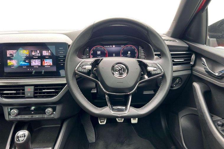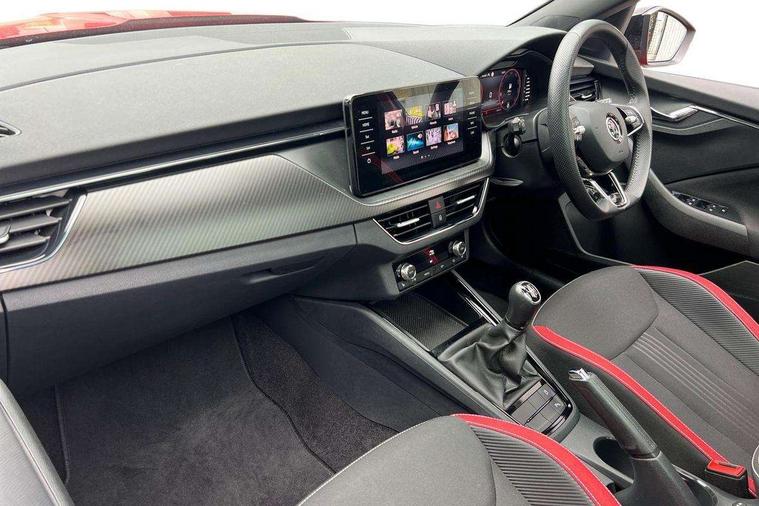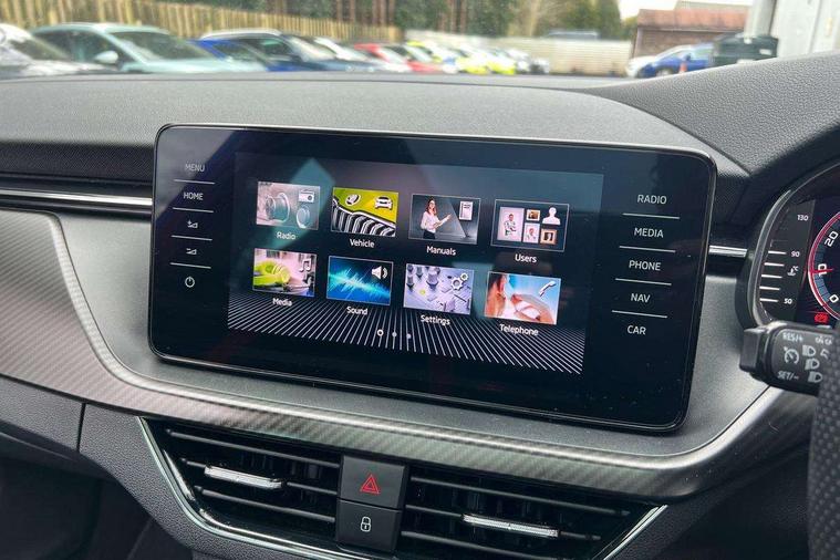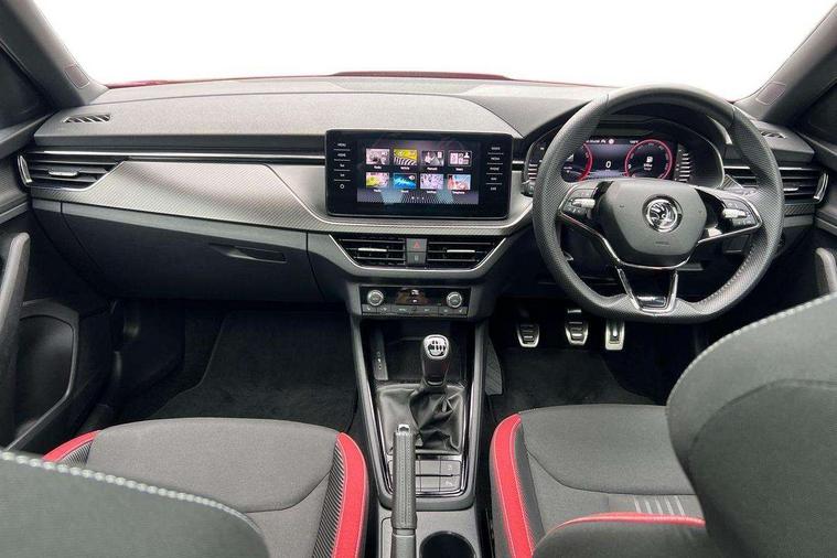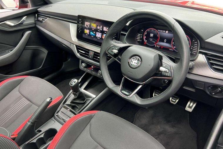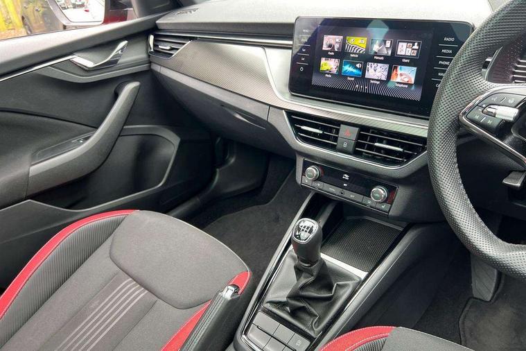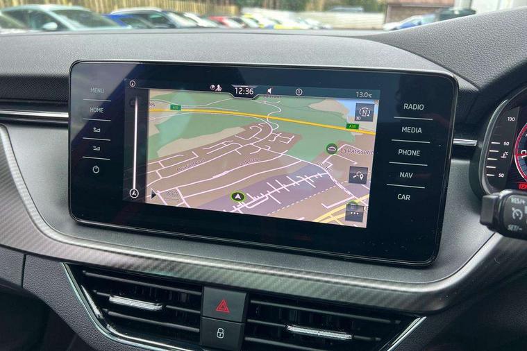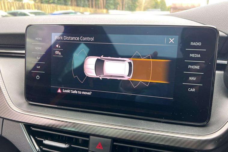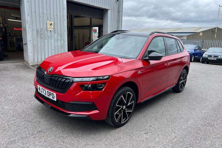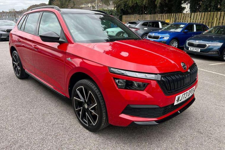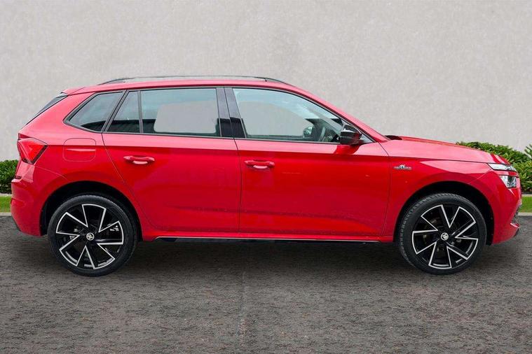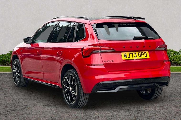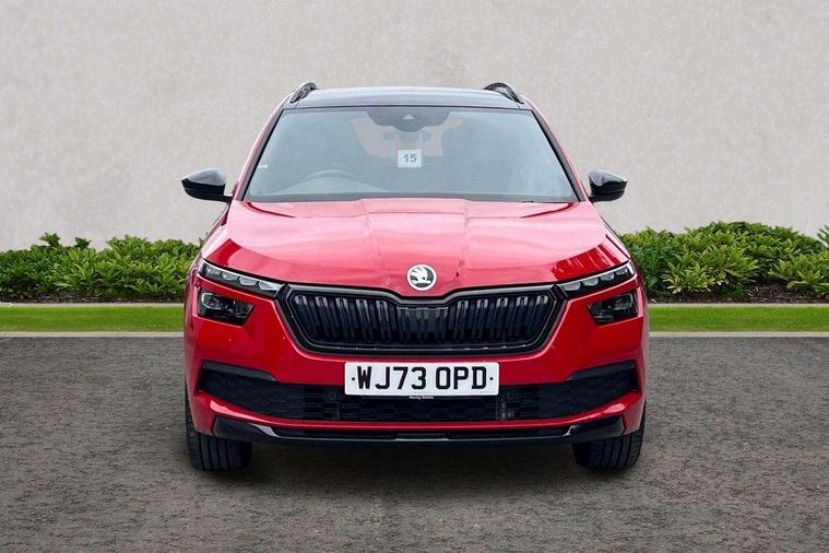 Amundsen satellite navigation with 9.2" glass colour touchscreen display, web radio, voice control and traffic sign recognition, Bluetooth system, E-call, Front assist system, Gesture control, PAS, Service indicator, Speed limiter, Wireless Smartlink for Apple CarPlay (wired for Android Auto), 8 speakers, Auxiliary input socket, DAB Digital radio, Black door mirrors, Black radiator grille, Black rear diffuser, Body colour bumpers, Body colour door handles, Body colour roof spoiler, Boot lettering in black, Chrome grille surround, Dimming rear view mirror with black surround, Electrically adjustable and heated door mirrors, Front and rear electric windows, Front sport bumper, Full LED headlights with adaptive front light system, cornering function, fog lights and dynamic indicators, Headlight range control, Heated rear window, High functionality rear led lights with dynamic indicators, KAMIQ Door sills, LED daytime running lights, LED third brake light, Light sensors, Monte carlo plaque, Panoramic sunroof with black roof rails, Privacy glass, Rain sensor, Rear fog lights, Rear side wing doors, Rear wiper, 12V Accessory socket in centre console, 3 seat bench in 2nd row, Aluminium pedals, Black ceiling for black/beige interior, Black roof lining, Chrome inner door handles, Cloth upholstery, Front head restraints, Glove compartment with illumination, Height adjustable front passenger seat, Ice scraper, Isofix child seat fittings on outer rear seats, ISOFIX on front passenger seat, Leather gear lever, Manual lumbar support for front seats, Rake/reach adjustable steering wheel, Reading lights, Single front passenger seat, Sports seats, Sun visors with illumination on front passenger, Textile floor mats, Third rear headrest, Top tether for front passenger seat, Umbrella in driver's door, 3x3 point rear seatbelts, Airbags - driver and front passenger, ESP, Front passenger airbag deactivation switch, Front side airbags with curtain airbags, Hill hold control, Manual parking brake, Manual rear child locks, One tone horn, Rear disc brakes, Seatbelt reminder for driver an co-driver, Traction control, Tyre pressure monitor, Anti-theft alarm system with interior monitoring, backup horn, towing protection and remote central locking with SAFE system, Anti-theft wheel bolts, Electronic engine immobilizer, Chrome air vent surrounds, 18" Vega alloy wheels in black,