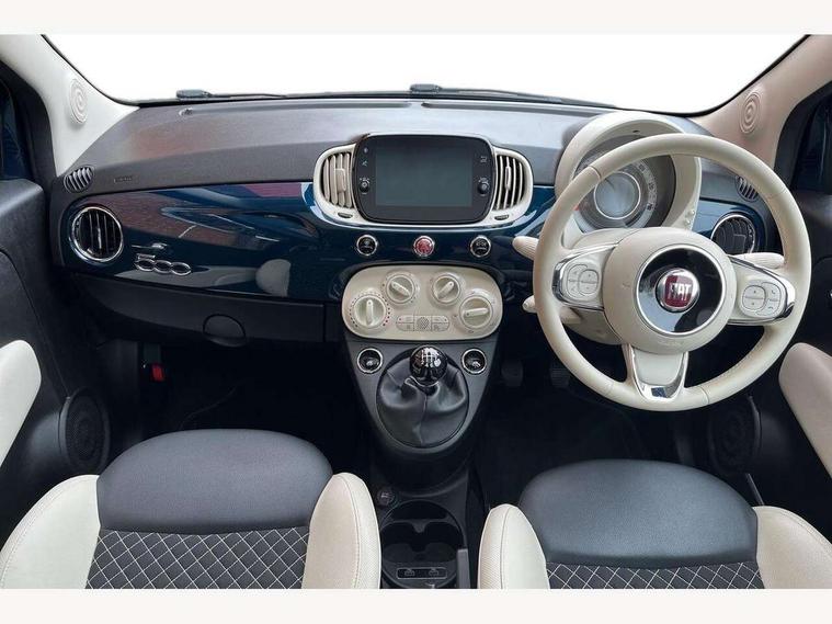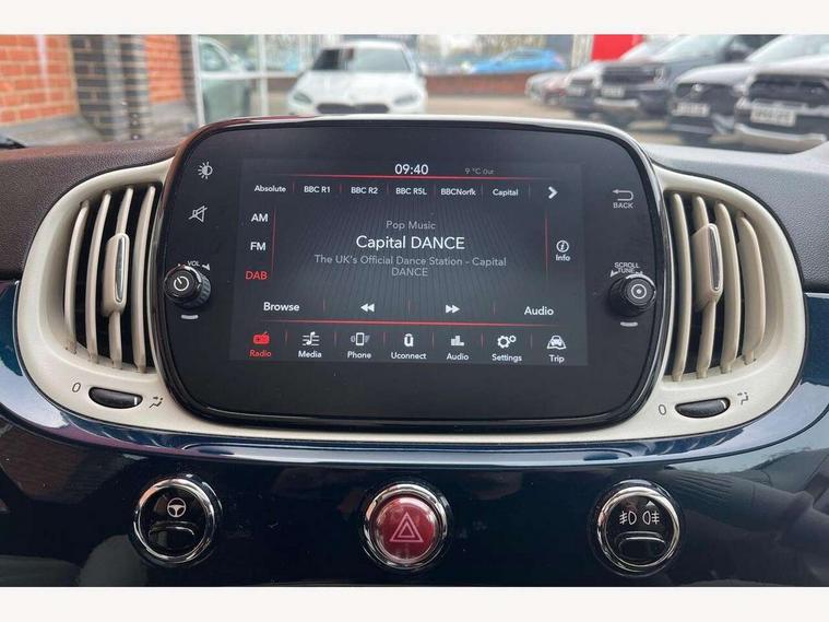 Apple car play/Android Auto, Cruise control, E-call, External temperature gauge, Power assist steering, Rear parking sensor, Speed limiter, Stop/start system, Trip computer, 4 speakers, 7" HD Touchscreen Radio, Bluetooth, USB and DAB, Rear speakers, 3rd brake light, Auto headlights, Body colour bumpers, Body coloured electrically adjustable door mirrors, Chrome plated exterior door handles, Dolcevita badge on fender, Dusk and rain sensors, Electric front windows, Fixed glass sunroof with sunblind, Front fog lights, Halogen headlamps, Heat insulated glass, Heated rear windows with wash wipe, LED daytime running lights, Rear side wing doors, Rear wiper, 1 passenger grab handle, 2 seat bench in second row, 50/50 split folding rear seats with height adjustable rear headrests, Air conditioning, Auxilliary 12V power socket, Chrome kit, Front headrests, Height adjustable drivers seat, Height adjustable steering wheel, Isofix child seat preparation, Single front passenger seat, Techno leather steering wheel with audio controls, 7 airbags - Driver, passenger, side, window and drivers knee airbags, ABS/EBD, ESC + ASR/MSR + HBA + Hill holder, Manual passenger airbag deactivation function, Traction control, Tyre pressure monitoring system, Automatic door locking, Immobiliser, Locking fuel filler cap, Remote central locking, 15" Alloy wheels,