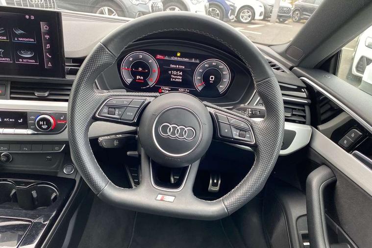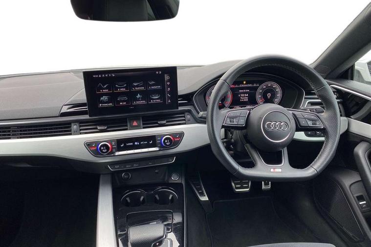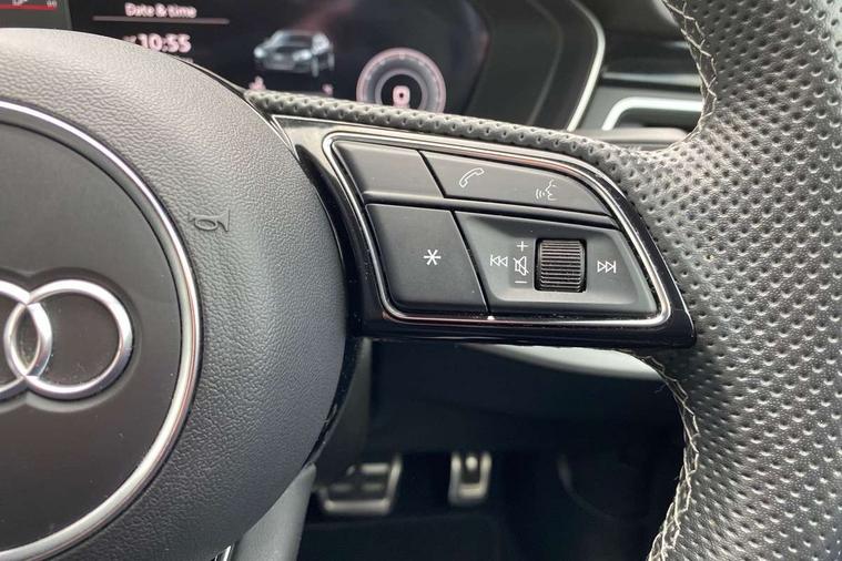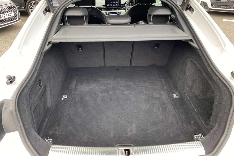 Audi connect safety and service (e-call), Audi connect with Amazon Alexa Integration, Audi drive select (Auto, Comfort, Dynamic, Efficiency and Individual), Audi parking system plus with front and rear sensors, Audi smartphone interface, Audi virtual cockpit - 12.3" full colour digital instrument cluster, vehicle/engine speed, Radio/media information+Driver assistance systems, Automatic start-stop system with coasting functionality and efficiency programme, Bluetooth interface, Electro-mechanical power steering, Email, calendar and text messages displayed via MMI, MMI nav+ with MMI touch - 10.1" high resolution MMI display, touch sensitive, 3D map, route/country info, dynamic route guide, personal route assist, Power operated tailgate, Rear view camera, Service interval indicator, Voice control system, Diesel particulate filter, Sports suspension lowered by 23mm, 8 passive loudspeakers, CD player, DAB digital radio reception, Two additional USB ports for rear passenger in rear centre console, Two SDXC card slots, Audi matrix LED headlights with LED rear lights + dynamic front and rear indicators, Auto dimming door mirrors, Auto dimming rear view mirror, Body colour bumpers, Body colour door handles, Body colour front spoiler lip, Body colour side sill trim, Body coloured door mirrors, Electric adjustable heated door mirrors, Electric folding door mirrors, Electric front windows, Front fog lights, Honeycomb structure radiator grille in grained matt black, Kerb-view function for passenger side, LED daytime running lights, LED side indicator lights integrated into door mirrors, LED third brake light, Matt aluminium silver tailpipe trim, Privacy glass, Rain and light sensors, Rear side wing doors, S line badges on front wings, S line front and rear bumpers with side skirts, S Line rear diffuser in matt titanium black with trim strip in matt aluminium silver, Side air inlets in grained matt black with matt aluminium silver inlay, Variable front intermittent wipers, Windscreen with acoustic glazing, 3 seat bench in 2nd row, 4 way electric lumbar support for driver and front passenger, 40/20/40 split folding 3 seater rear bench seat, Adjustable steering column, Black cloth headlining, Black perforated leather gearknob, Contrast stitching on seats, steering wheel and gear lever gaiter, Deluxe 3 zone electronic climate control, Front centre armrest, Front head restraints, Front/rear floor mats, Heated front seats, Illuminated door sill trim with S logo, ISOFIX child seat mounting and top tether, Luggage compartment mat, Manual seat adjustment, Rear centre armrest, Rear headrests, Single front passenger seat, Stainless steel pedals, Sunvisors with vanity mirrors, LED interior light pack - A5/RS5, 3x3 point rear seatbelts, 6 airbags - Driver, front passenger, curtain and side airbags, Electromechanical parking brake, Electronic Stabilisation Control (ESC) including ABS, ASR and EDL, Front passenger airbag deactivation, Height adjustable front seatbelts, Hill hold assist, Manual child lock in rear doors, Multi collision brake assist, Pop-up bonnet for pedestrian protection, Pre sense city, Seatbelt monitoring, Tyre pressure warning, Variable restraint system, Warning triangle and first aid kit, Anti theft alarm system, Anti theft wheel bolts, Immobiliser, Keyless Go, Remote central locking, Matt brushed aluminium inlays, Tool kit, Tyre repair kit,