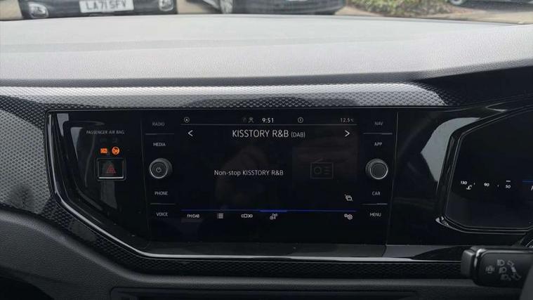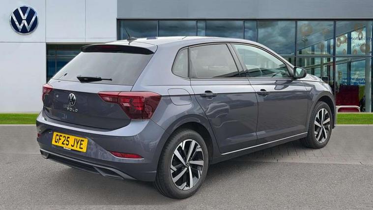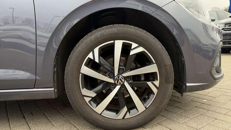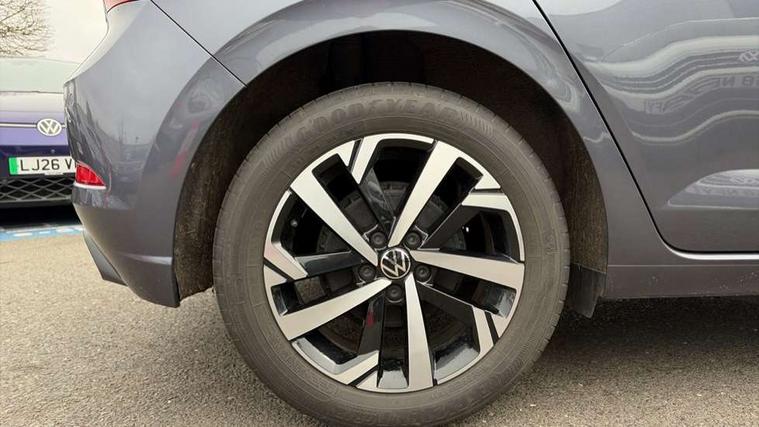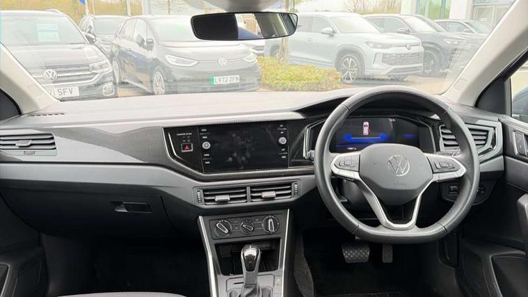 Advanced driver attention and drowsiness monitor, Bluetooth mobile phone interface, Dynamic road sign display, Emergency call service, Multifunction front facing camera for distance control, Park distance control, Power assisted speed sensitive steering, Predictive adaptive cruise control without follow-to-stop and speed limiter, Preparation for navigation system with media and internet package, Preparation for We connect and We connect plus, Rear view camera, Speedo and rev counter, electronic odometer, trip, service interval display and exterior temperature gauge, Standard rear axle, Travel Assist - Lane keeping system and traffic jam assist, Travel assist including emergency assist, Trip computer, Warning signal and warning light for front and rear seatbelts not fastened, Washer fluid level indicator, Wireless app connect, Front wheel drive, Rear shock absorpion, Start-stop system with battery regeneration (recuperation - energy recovery during braking), DAB Digital radio, Diversity antenna for FM reception, Front and rear 6 speakers, Automatic dimming interior rear view mirror, Automatic headlight control with LED separate daytime running lights with coming/leaving home function, Body colour bumpers with chrome inserts, Body colour door handles, Body colour door mirrors, Electric front windows, Engine badge deletion, Headlight range adjustment, Heat insulating and laminated safety glass windshield, LED Headlights, LED rear combination lamps, Power folding adjustable/heated exterior mirrors and front passenger exterior mirror lowering function, Rain sensor, Rear electric windows, Rear fog light, Rear side wing doors, Rear tinted glass from B-pillar backwards approx 65% tinted, Rear windscreen washer and wiper with interval delay, Third brake light, 12V power socket in centre console, 2 front and 2 rear reading lights with switch off delay and dimmer, 2 USB-C ports in the front, 2 USB-C charging sockets on the center console in the rear, 3 rear head restraints, 60/40 split folding rear seat and rear seat bench not split, Ceramique roof lining, Chrome plated radiator grille inserts, air vent surrounds and light switch surrounds, Door and side trim panel, Driver and front passenger seat height adjustment, Driver/passenger sunvisors with illuminated vanity mirrors, Front centre armrest, Front seat backrest storage pockets, Front standard seats, Handbrake lever handle in leather, Hartley/Thomas cloth upholstery, Headliner in recycled material, Isofix child seat preparation easy-fit (for two outer rear seats, and front passenger seat) compatible with I-size, Leather trimmed gear knob, Luggage compartment cover, Luggage compartment lighting, Removable luggage compartment floor, Single front passenger seat, Standard climatic zones, Standard pedal cluster, Three spoke leather wrapped multifunction steering wheel with shifting paddles, Light and vision pack - Polo, 3 point height adj front seatbelts + pretensioners, 3 point seat belt for centre rear seat, 3 point seatbelts, outer rear with ECE lable, ABS, Driver and front passenger airbag with front passenger airbag deactivation, Drivers and front passengers safety optimised head restraints, ESC (Electronic stability control) + EDL (Electronic Differntial lock) and ASR (Traction control), Extended and predictive pedestrian/ cyclist protection, Front assist with autonomous emergency braking (for Adaptive Cruise Control ACC up to 130 mph), Front curtain and side airbags with center airbag, Front disc brakes, Hill hold control, Manual child lock in rear doors, Rear drum brakes, Single tone horn, Tyre pressure loss indicator, Alarm with interior protection, Anti-theft alarm system with interior monitoring, backup horn, and towing protection, Anti-theft wheel bolts, Electronic engine immobiliser, Lava stone black gloss/matt decorative inserts in dash and front door panels, 16" Torsby alloy wheels, Low rolling resistance tyres,