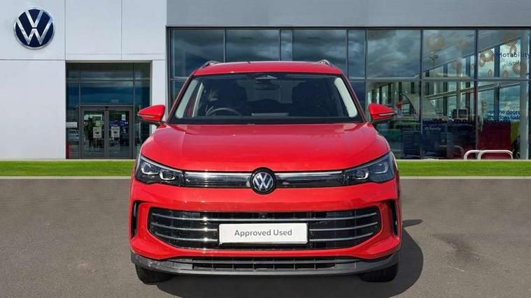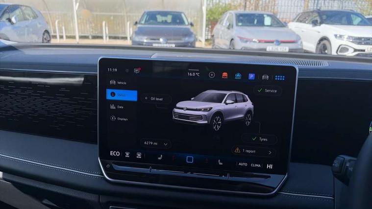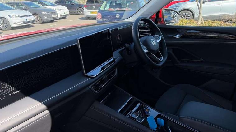 Adaptive cruise control (ACC), Advanced driver attention and drowsiness monitor, Bluetooth mobile phone interface, Car2X technology, Comfort drive travel assist, lane keeping system, lane assist and emergency assist, Digital Cockpit Pro - 10.25" high resolution dash display screen with customisable menus and information, Dynamic road sign display, E-Sim card for online connectivity, eCall emergency call service, Front Assist - Autonomous emergency braking with pedestrian and cyclist monitoring, Lane change system, Side assist, Rear traffic alert and Exit warning system, Multifunction front facing camera, Oncoming vehicle braking when turning including swerve support, Park assist pro with park distance control (Remote park assist), Power assisted steering with speed sensitive, Start/stop system with regenerative braking, Warning signal and warning light for front and rear seatbelts not fastened, Wireless App-Connect, Adaptive chassis control DCC pro includes driving mode selection, Charging cable Mode 3 Type 2 / 3 (16A), Front shock absorption, Front wheel drive, Rear shock absorption, Digital radio reception (DAB), Diversity antenna for FM reception, Air intake with Chrome trim, Ambient lighting with logo projection, Auto dimming interior rear view mirror, Automatic headlight control system, Body colored bumpers in R-Line style, Body coloured door handles, Body-coloured exterior mirror housings, Chrome moldings on the side windows, Coming/leaving home lighting function, Heat insulating glass in side and rear windows, Heated rear window, Heated windscreen washer jets, High level 3rd brake light, Illuminated door handle recesses, Illuminated lightline between headlamps, Laminated safety glass from B-pillar backwards 90% tinted, Laminated safety glass windshield, LED Day time running light, Rain sensor windscreen wipers, Rear fog light on one side, reversing light on both sides, Rear side wing doors, Rear wiper, Silver roof rails, 12V outlet in center console rear and in luggage compartment, 12V socket in centre console, 3 bench rear seats in 2nd row, Air care climatronic 3 zone air conditioning system with rear air conditioning control panel, Carpet mats, front and rear, Centre console with illuminated storage compartment with sliding cover and two drinks holders, Ceramique headlining, Chrome elements on the mirror switch and power window switches and door pulls, Door and side trim panel with leatherette insert, Door sill protectors, Front centre armrest, Interior ambient lighting with 30 colour options, ISOFIX anchors for child seats on outer rear seats and front passenger seat compatible with i-Size, Mechanical rear seat release, Power adjustable lumbar support in front, Rear bench seat, split folding, longitudinally movable and folding with load-through hatch and centre armrest, Safety optimised front head restraints, Single front passenger seat, Sports comfort seats in front, Sun visors with illuminated vanity mirrors, Three rear head restraints, Variable luggage compartment floor, Comfort package with park assist plus and Safelock - Tiguan, Driver assistance package - Tiguan, 3 point seat belt for centre rear seats, 3 Point seat belts in front with pretensioners, 3 point seatbelts in outer rear with ECE label, Driver and front passenger airbag with front passenger airbag deactivation, Electronic parking brake with auto hold, Front and rear curtain airbags, Front and rear side airbags, Front centre airbag, Front disc brakes, Hill start assist, Manual child proof rear door locks, Rear disc brakes, Two tone horn, Warning triangle, Decorative inserts Cross in dash and front door panels, Interior door handle in matte chrome, Soul instrument panel, Tyre mobility kit including compressor and sealing foam,