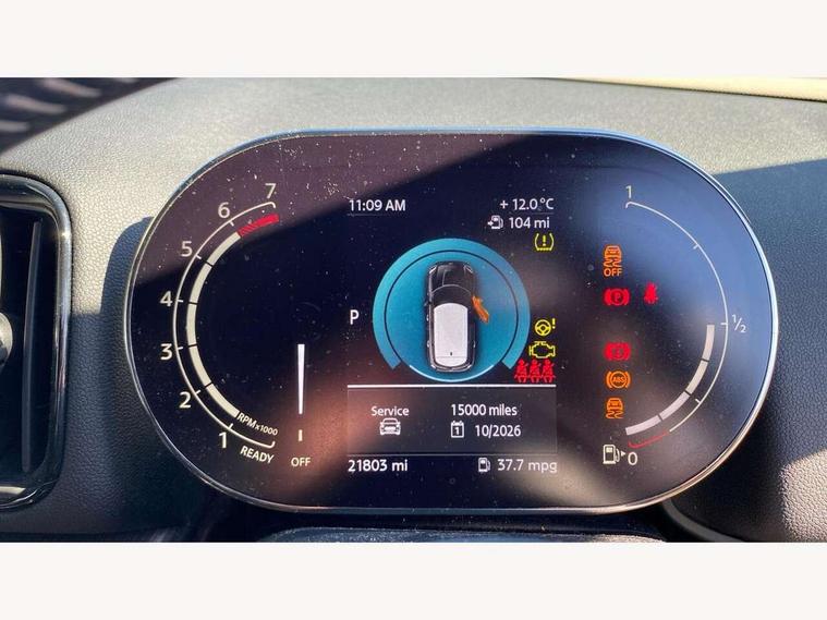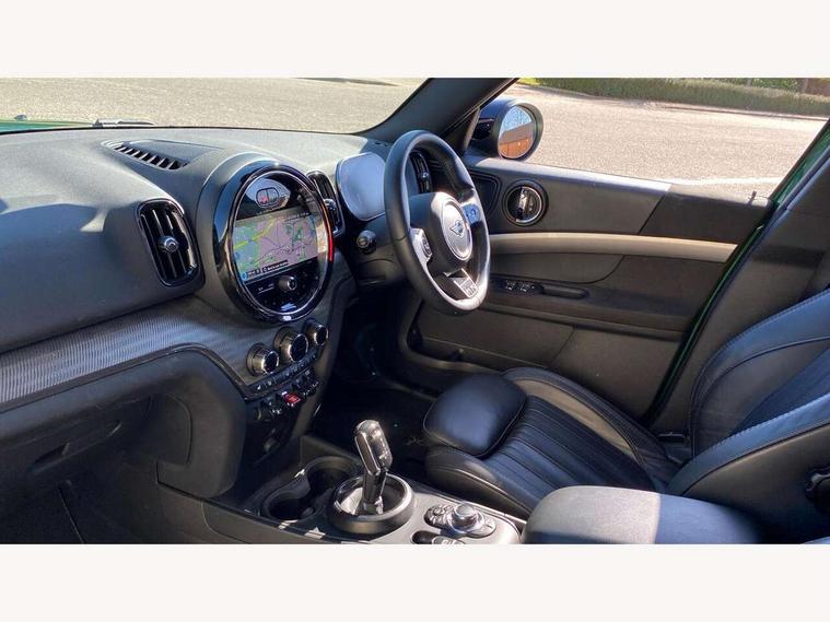Active Guard incl speed limiting and lane departure functions with auto steering, and front collision warning with brake intervention, Automatic start/stop function with brake energy recuperation, Electro-mechanical speed dependant steering assistance, Instrument cluster, MINI Driving Modes - centre toggle switch to control driving setting (sport, mid and green), Mini E-call, MINI TeleServices, On board computer, Double Vanos system, Fully variable valve control, High precision injection, Performance Control, Steptronic sport transmission with double clutch and steering wheel paddles, FM tuner and DAB digital radio, 3rd brake light, Bonnet scoop, Chrome fuel filler cap, Day time driving lights, Dynamic brake lights, Electric windows, Heated rear window, Heated windscreen washer jets, LED fog lights, Metal door sill strips with Cooper S imprint, MINI yours exterior badge in C-Pillar, driver and passenger side, Model logo, Model logo on Tailgate, Rain sensor with auto headlights, Rear fog lights, Rear side wing doors, Rear window wiper, Side scuttle panel with integrated indicator, Split rear doors, Sun/heat protection glass, White indicator lenses, 12V socket in centre console, 3 seat bench in 2nd row, 360L luggage compartment capacity, 4 lashing eyes in luggage compartment, 40:20:40 split folding rear seats, Anthracite headlining with grab handles and clothes hooks, Chrome interior highlights, Colour line - Carbon black, Cupholders, English handbook, Front headrests, Glove compartment, Height and length steering column adjustment, Interior lighting with 12 basic colours selectable via toggle switch in roof, Isofix rear child seat preparation, Leather gearshift lever and handbrake gaiters, LED reading lights, vanity mirror lights, front foot well light and spotlight on front seats, MINI Yours fine walk nappa leather steering wheel with contrast stitching in silver and MINI Yours badge, Multifunction steering wheel, Rear headrests, Single front passenger seat, Storage compartments in doors, Sunvisors with vanity mirrors, Excitement pack - Countryman, Navigation plus pack - Countryman, 2 tone horn, 3 point seatbelts on all seats, 6 Airbags - front, side, head and seat belt tensioners, Anti-lock braking system (ABS), DSC - Dynamic Stability Control, Electronic handbrake, Front and rear disc brakes, Hill start assist, Manual rear child locks, Tyre pressure monitoring system, Alarm system with tilt sensor, monitoring doors, bonnet interior and tailgate, Auto drive away locking, Deadlocking function, Electronic vehicle immobiliser, Locking wheel bolts, Start/stop toggle with keyless go, Tool kit,