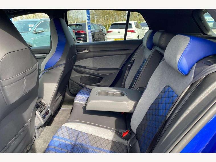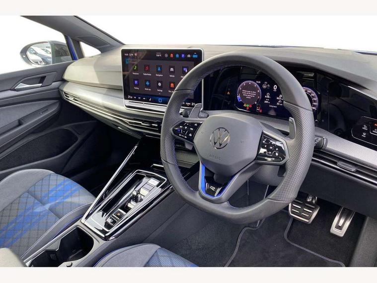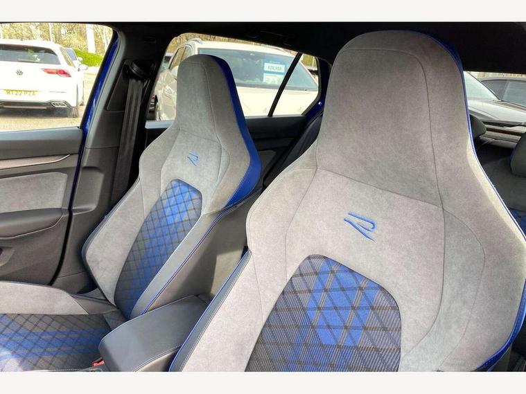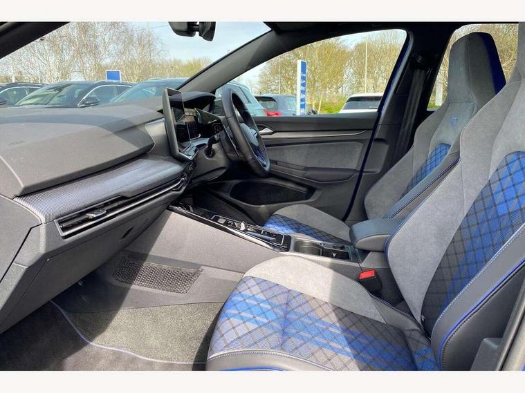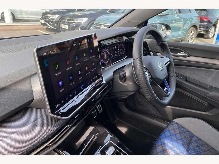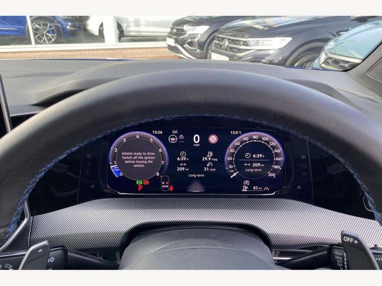 Activated carbon canister, Adaptive cruise control (ACC), Advanced driver attention and drowsiness monitor, Dynamic road sign display, E-Sim card for online connectivity, eCall emergency call system, Electronic maximum speed limit increased to 270 km/h, includes driving Modes 'drift' and 'special', larger roof spolier and GPS laptimer + G-Meter, Multi-color Digital cockpit pro, selection of different info profile possible, Multifunction front facing camera for distance control, Navigation system, Oncoming vehicle braking when turning including swerve support, Side assist blind spot lane change system, rear traffic alert and exit warning system, Speed limiter, Speedo, rev counter, electronic odometer, trip, service interval display, exterior temperature and fuel gauge, Traffic jam assist, Voice enhancer and voice control, Warning signal and warning light for front and rear seatbelts not fastened, We connect plus preparation, We connect preparation, Wireless app connect, All wheel drive - 4Motion, Petrol Particulate Filter, Start-stop system with battery regeneration (recuperation - energy recovery during braking), XDS electronic differential lock for improved traction and handling, 2 USB C ports in front, 2 USB charging sockets on the centre console in the rear charging capacity upto 45W, Digital radio reception (DAB), Diversity antenna for FM reception, Gaming platform via car app, Infotainment system with 12.9" display, Mobile phone interface with inductive charging feature, 3rd brake light, Auto dimming rear view mirror, Automatic headlamp activation with Coming home and Leaving home feature, Black badge on B-pillar, Black mirror caps, Black strips on radiator grille and headlights, Body colour door handles, Darkened headlights, Darkened R Logos and VW logos in front, rear and on fender, Exterior mirrors convex on the left and aspherical on the right, Front and rear electric windows, Front fog lamps and cornering light, Heat insulating windshield made of laminated glass, Illuminated lighting animation with wake up/goodbye scenario, LED matrix headlights with ambient light V2, advanced high beam, dynamic range contol with cornering, LED rear lamp with indicator, poor weather, LED separate daytime running light, R name plate, Rain sensor, Rear fog light on one side and reversing lights on both sides, Rear side wing doors, Rear tinted glass 65% light absorbing from B pillar backwards, Rear windscreen washer and wiper with interval delay, Remote electrically foldable door mirrors, puddle lights and reverse activated passenger's door mirror, Welcome light with surround lighting, 12V socket in front centre console, 12V socket in luggage compartment, 3 rear head restraints, 3 seat bench in 2nd row, 30 colour ambient lighting, illuminated center console storage compartment in front, Air care climatronic 3 Zone automatic climate control with rear air conditioning control panel, Aluminium gearshift handle, Brushed stainless steel pedals, Chrome plated radiator grille inserts, air vent surrounds and light switch surrounds, Entry lights, Front + rear black carpet mats, Front centre armrest, Integrated front head restraints, ISOFIX anchors for child seats on outer rear bench seats and on front passanger seat compatible for i-Size, Luggage compartment lighting, Rear cupholder and loadthough, Single front passenger seat, Soul black instrument panel, Soul black roof lining, Split folding backrest with centre armrest and unsplit rear seat bench, Sun visors with illuminated vanity mirrors, Driver assistance pack - Golf Estate/Hatchback Auto, R styling pack - Golf, Technology park and comfort pro package - Golf Hatchback, 3 point height adj front seatbelts + pretensioners, 3 rear three point seatbelts, ABS, Autonomous emergency braking front assist with pedestrian and cyclist monitoring, Child locks on rear doors, Driver and front passenger airbag with front passenger airbag deactivation, Electronic parking brake with auto hold, ESC (Electronic Stability Control), Extended pedestrian protection measures, Front and rear black brake calipers with darkened R-logo, Hill start assist, Rear disc brakes, Two tone horn, Tyre pressure loss indicator, Volkswagen roadside assistance, Anti theft wheel bolts, Preparation for alcohol interlock, 19" Estoril alloy wheels in black with progressive steering, Sporty vehicle dynamics, Tool kit for tyre mobility set, Tyre mobility kit Includes 12V compressor and tyre sealant, Wheel hub cover with darkened R-logo,