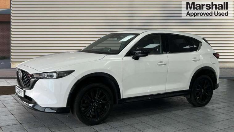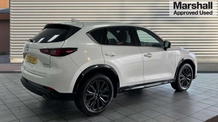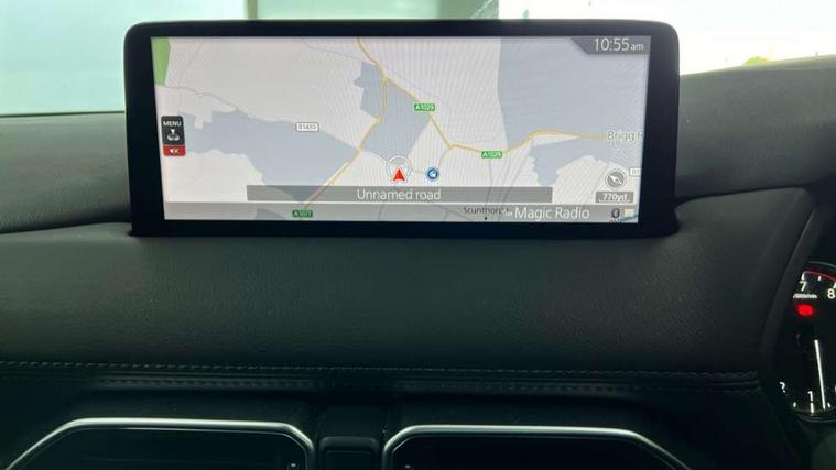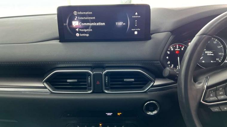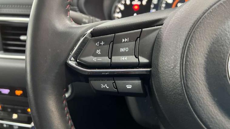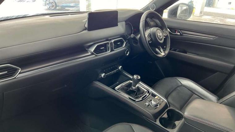 10.25" display with Mazda Connect infotainment, 7" colour TFT display, Advanced blind spot monitoring, Bluetooth connectivity with voice control, Collision prevention assist, Connected services, Cruising Traffic Support, Electric power steering, Emergency stop signalling system, Engine start/stop button, Forward collision warning, Front and rear parking sensors, Integrated navigation system, Intelligent speed assist, Lane departure warning system, Lane keep assist, Power liftgate, Qi wireless phone charging, Radar cruise control, Rear cross traffic alert, Reversing camera, Service indicator, Traffic sign recognition (TSR), Trip computer, Windscreen projected colour active driving display (HUD) with memory, Wireless apple car play/android Auto, Cylinder Deactivation, i-stop, AM/FM radio, Bluetooth audio streaming, Bose premium sound system with 10 speakers, DAB Digital radio, Multimedia Commander including separate volume dial, Steering wheel mounted audio controls, Adaptive front lighting system, Auto dimming rear view mirror, Automatic headlights, Black honeycomb door trim decoration panel, Black honeycomb interior decoration panel, Body colour roof spoiler, Coming/leaving home lighting function, Door mirror integrated indicators, Dual large chrome tailpipes, Dusk sensitive headlamps, Electric front/rear windows with one touch auto up/down, Front grille in gloss black finish, Front grille in gloss black with red accent + gloss black signature wing, Gloss black B and C pillars garnish, Gloss black door mirrors, Gloss black front and rear lower bumper mouldings, Gloss black tire arch and side mouldings, High beam assist, Intermittent rear wash/wipe, LED auto levelling, LED daytime running lights, LED front fog lights, LED Headlights, LED third brake light, Power folding and heated door mirrors, Power tilt/slide sunroof, Privacy glass (rear side windows only), Rain sensing front wipers, Rear side wing doors, Red front grille accent, Red stitching and accents on door trim, knee pad, console lid, steering wheel, shift boots, Scuff plates, Shark fin antenna, Signature LED rear combination lights, Variable intermittent front wash/wipe, Windscreen wiper de-icer, 12v electrical power outlet, 3 seat bench in 2nd row, 3 stage heated front seats, 40:20:40 Karakuri fold-flat seat system, 6 way electric adjustable passenger seat, 8 way electric driver seat with lumbar support + memory, Black roof lining, Cargo room flat floor board with waterproof undertray, Driver seat power slide, recline and height adjustment, Driver, Front passenger and two rear grab handles with coat hooks, Driver/passenger front seatback pockets, Driver/passenger sunvisors + illuminated vanity mirrors (drivers with ticket holder), Dual zone climate control, Folding centre armrest with 2 cup holders, Front and rear door pockets, Front centre storage with two cupholders, Front passenger seat power slide, recline and height adjustment, Gear shift indicator, Heated steering wheel, Humidity sensor, Illuminated glovebox, Interior dome light with integral spotlight, ISOFIX child seat anchorage points attached on outer rear seats, Karakuri tonneau cover, Leather upholstery, Leather wrapped steering wheel and gear knob, Luggage compartment LED lighting, Luggage compartment power outlet, Rear air vents, Rear headrests, Rear seat recline, Roof mounted sunglasses holder, Single front passenger seat, Three height adjustable head restraints, Tilt/height adjustable steering wheel, USB Connectivity (2x front Type-C, 2x rear Type-B), White interior LED illumination lighting, 3 point front seatbelts with pre-tensioners, 3 rear 3 point seatbelts, ABS, Advanced Smart City Brake Support - SCBS, Child locks on rear doors, Driver and front passenger side airbags, DSTC-Dynamic Stability and Traction Control, Dual front airbags, Electronic brake force distribution, Electronic parking brake with auto hold, ESP, Front and rear curtain airbags, Front passenger airbag deactivation, G-Vectoring control, Hill hold assist, Seatbelt reminder front and rear, Single stage passenger airbags, Smart brake support with forward obstruction warning, Tyre pressure monitoring system, Automatic door locking when moving off, Deadlock, Immobiliser, Power door locks, Remote central locking, Smart keyless entry, Thatcham Cat.1 alarm, 19" Black alloy wheels, Tyre repair kit,