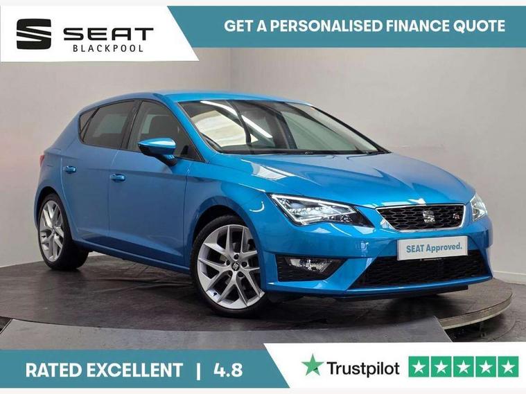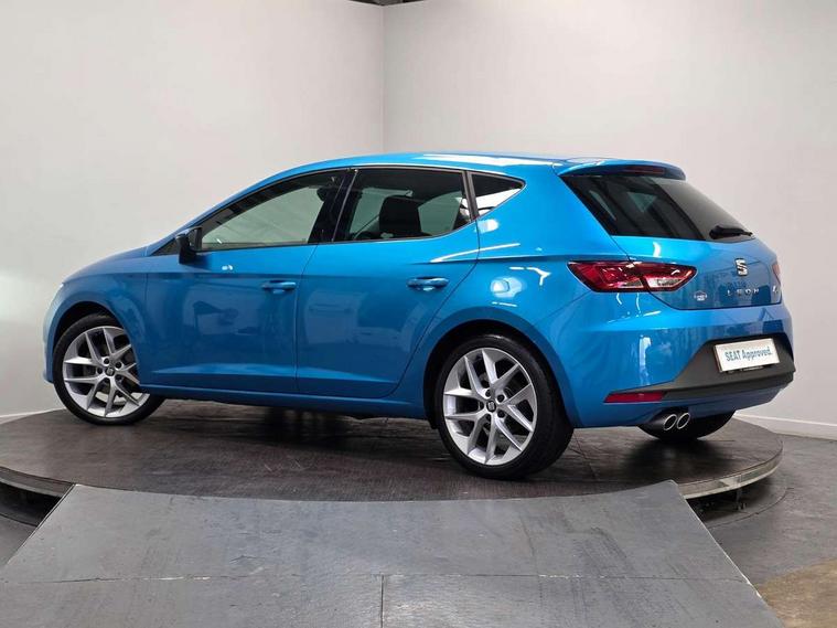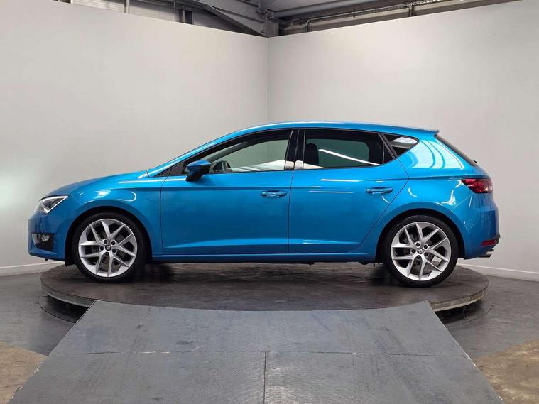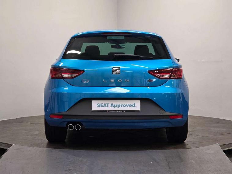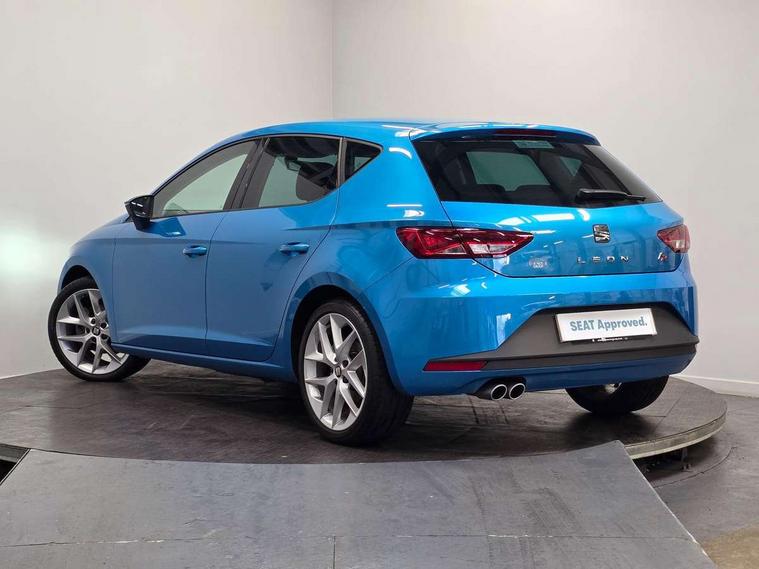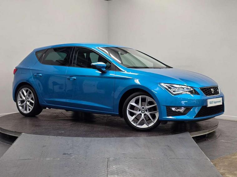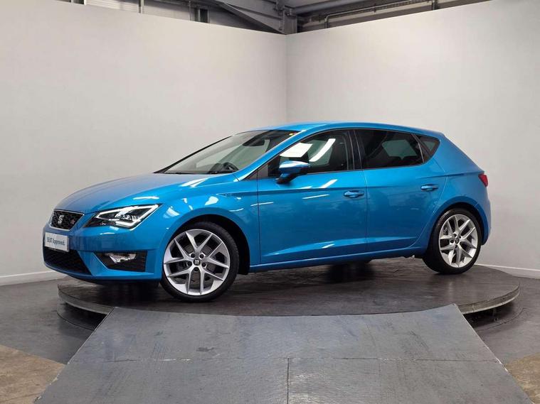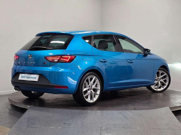 'Lights On' Reminder warning buzzer, 6.5" colour touchscreen with proximity sensor, Bluetooth Handsfree Phone Connection, Digital clock and outside temperature display, Low fuel warning light, Multi function display, Rear parking sensor, Remote fuel flap release, SEAT Drive profile, SEAT logo boot release, Service interval indicator, Touch screen display, Trip computer, Sports suspension, XDS electronic differential lock, Auxiliary input socket, Bluetooth audio streaming, DAB Digital radio, iPod connection, Radio/CD + MP3, SD card slot, Steering wheel mounted audio/phone controls, USB port, Aluminium front door sills, Body colour door handles, Body coloured bumpers, Chromed centre radiator grille surround, Cornering front fog lights, Dark tinted rear windows, Electric adjustable/heated/folding door mirrors, Electric front/rear windows with one touch/auto up/down, Electric headlamp adjustment, LED indicators in door mirrors, Rear wash/wipe, Reverse activated kerb-view adjustment on passenger's door mirror, Tinted windows, 12v power point in centre console, 3 height adjustable rear headrests, Active head restraints, Additional heating and ventilation outlet in rear of centre console, Ambient lighting, Driver seat height/lumbar adjust, Driver/passenger sunvisors with illuminated vanity mirrors, Dual zone climate control, Dust/pollen filter, Front adjustable head restraints, Front armrest with storage box, Front cupholders x 2, Front map reading lights, Front seat and rear pockets, Front sports seats, Front/rear floor mats, Height/reach adjust steering wheel, Illuminated glovebox, Leather handbrake, Luggage tie-down hooks, Passenger seat height adjuster, Passenger seat lumbar adjust, Perforated leather steering wheel with red stitching + gear knob, Rear reading lights, Rear top tether child seat ISOFIX attachment, Split folding rear seat, Full LED headlight pack - Leon, 3 point seatbelts on all rear seats, ABS + traction control, Child proof door locks, Collision mitigation braking system, Curtain airbags, Driver/Front Passenger airbags, Drivers knee airbag, ESP+EBA, Front seatbelt pretensioners, Front Seatbelt warning, Front side airbags, Hill hold control, Manual passenger airbag deactivation function, Tyre pressure monitoring system, Engine immobiliser, Locking wheel bolts, Remote central locking + deadlocks, Second remote key, Volumetric alarm with back up horn, Chrome interior trim,