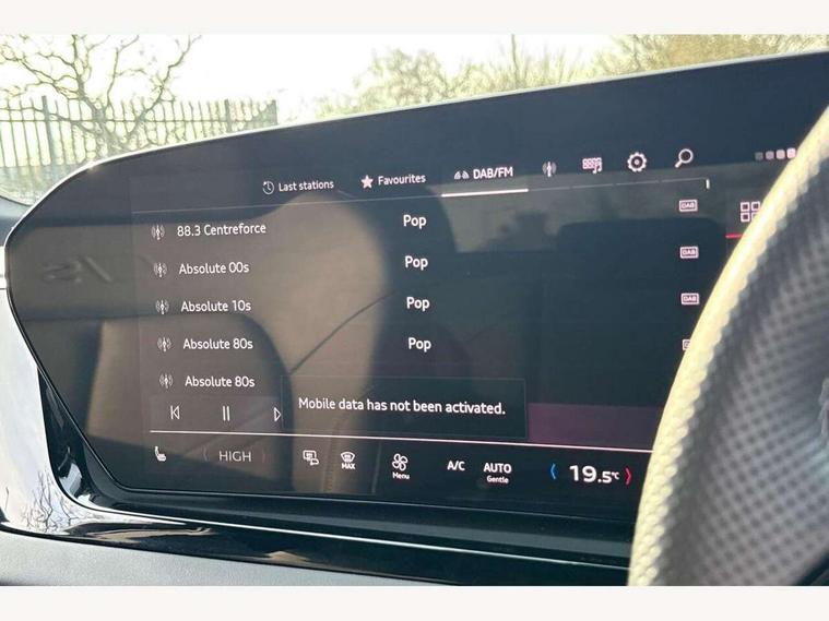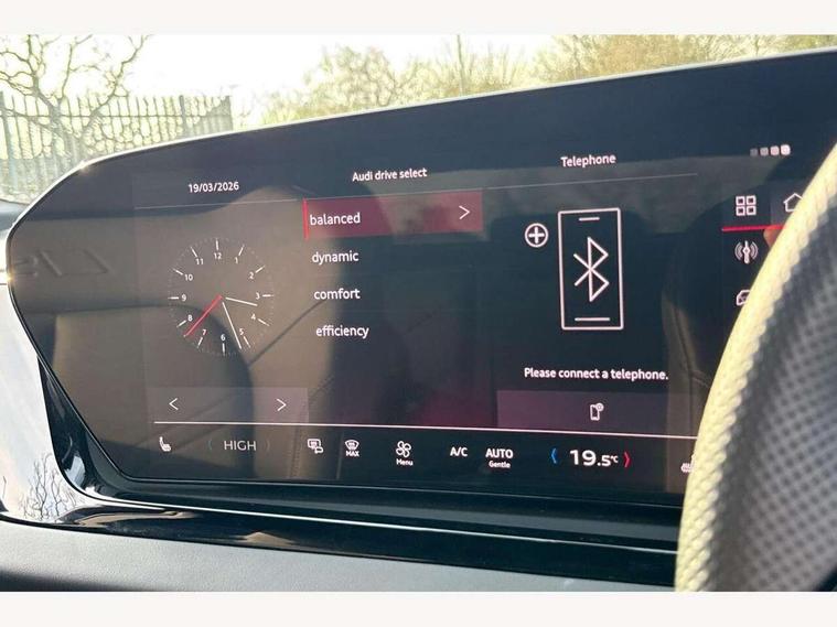 Adaptive cruise control, Advanced driver attention and fatigue montior, Audi application store, Audi assistant, Audi connect emergency call and service, Audi drive select, Audi smartphone interface, Audi virtual cockpit plus with 11.9" OLED colour display, Automatic start/stop system with coasting functionality, Camera based traffic sign recognition, Intersection assist, Lane departure warning, MMI navigation plus with high resolution 14.5" OLED touchscreen colour display, Park assist plus, Parking system plus with 360 display, Progressive steering with servotronic, Rear view camera, Swerve assist and turn assist, Traffic sign based speed limiter, Sports suspension lowered by 20mm, 2 USB-C ports in both the front and rear, Audi sound system impressive sound with 10 loudspeakers including centre speaker and subwoofer, 6-channel amplifier with a total output of 180 watts, DAB digital radio reception, Smartphone compartment with wireless charging, Aluminium window trims, Auto dimming rear view mirror, Body colour door mirrors, Door mirrors - electrically adjustable, heated, folding and auto dimming on both sides, Front and rear electric windows, Front door sill trims with aluminium inlays, illuminated with 'S' logo, High beam assist, LED headlights Plus incl. digital daytime running lights, turning light, all-weather light, motorway light, manouevring light and intersection light, LED rear lights pro incl. dynamic rear indicators and illuminated light strip with animated coming and leaving home function, LED third brake light, Privacy glass, Rear and side windows with heat insulating glass, Rear boot, Rear side wing doors, S Line badges on the front wings, S line bumpers, radiator grille and diffuser in phantom black and diffuser insert in matt anthracite, White rhombus logo projection light in exterior mirrors, Windscreen with acoustic glazing, 3 rear headrests, 3 seat rear bench, 3 spoke leather steering wheel with multi-function buttons with touch control, flattened on top and bottom, with S badging and contrast stitching, 3-zone automatic climate control, 40:20:40 split folding rear seat bench with centre armrest and cup holders, Comfort front centre armrest, Front and rear floor mats, Front seats with manual adjustment for position and 4-way electric lumbar support, Front sport seats with integrated headrest and S embossed logo, Headlining in black cloth, Heated front seats, i-Size child seat mounting on the front passenger side and outer rear seats, i-Size and top tether on the outer rear seats, Luggage compartment lid, electrically opening and closing, Manual steering column height and depth adjustment, Single front passenger seat, Stainless steel pedals and footrest, Steering wheel grips in perforated leather and shift paddles, Ambient lighting package plus - A5, 3x3 point rear seat belts, Driver airbag, Electric child safety locks, First aid kit with warning triangle and vests, Front emergency brake assist, Front passenger airbag, Front passenger airbag deactivation, Front side airbags with head airbag system and front interaction airbag, Hill hold assist, Seat belt monitoring with rear seat occupant reminder, Tyre pressure loss indicator, Anti theft alarm, Anti-theft wheel bolts, Keyless Go, Accent surfaces and control buttons in gloss black, Black dashboard with contrast stitching, Inlays in matt brushed aluminium with linear embossing, anthracite, Softwrap in leatherette with contrast stitching, Upper and lower interior elements in leatherette, Tyre repair kit,