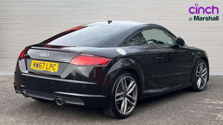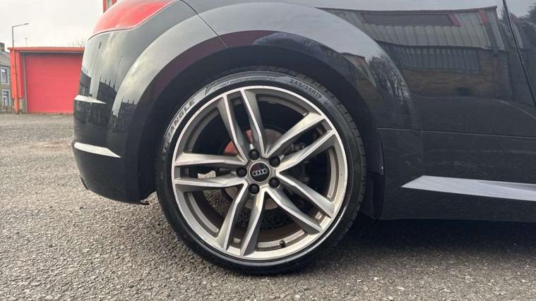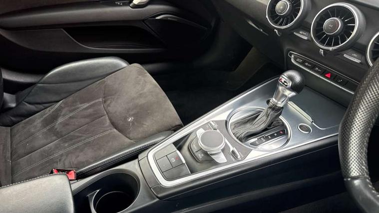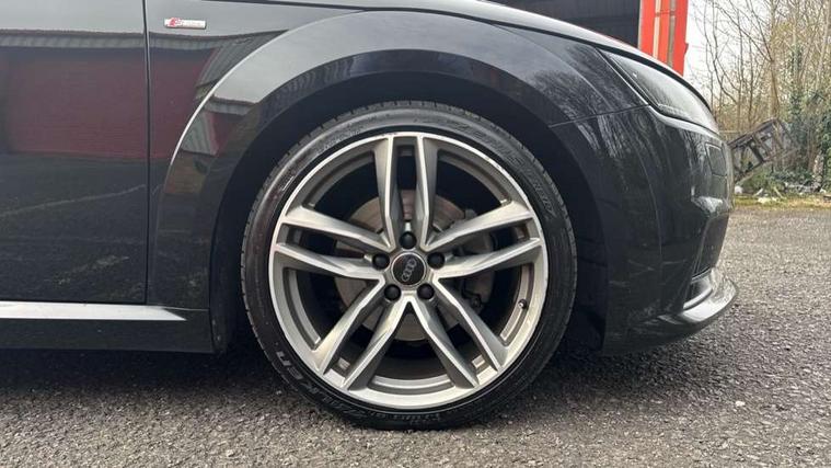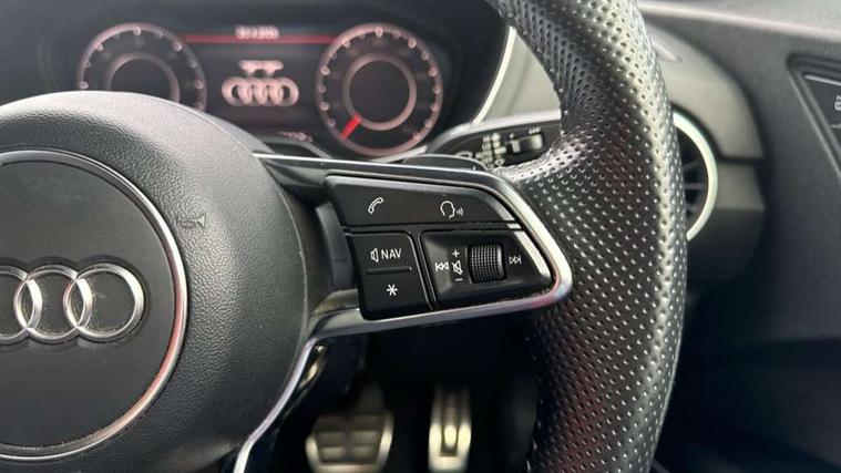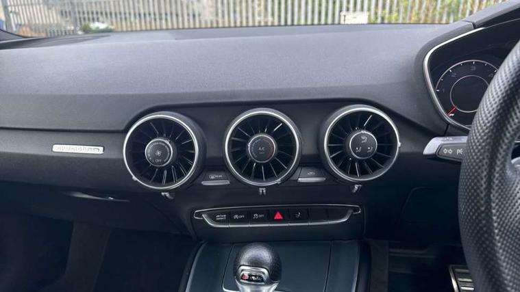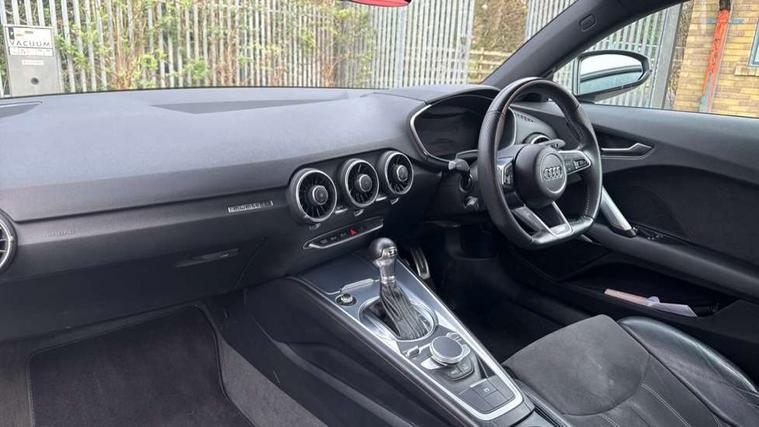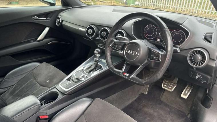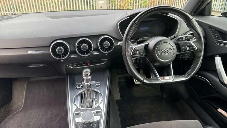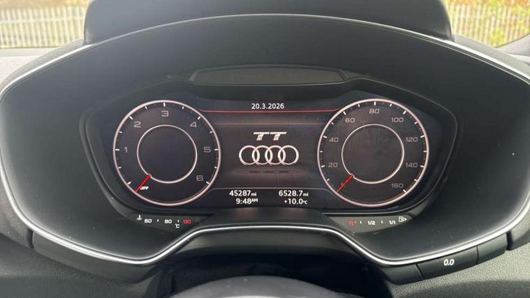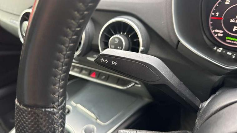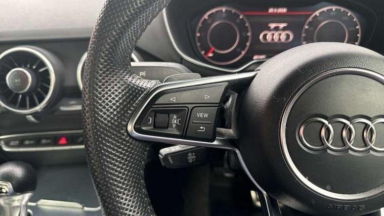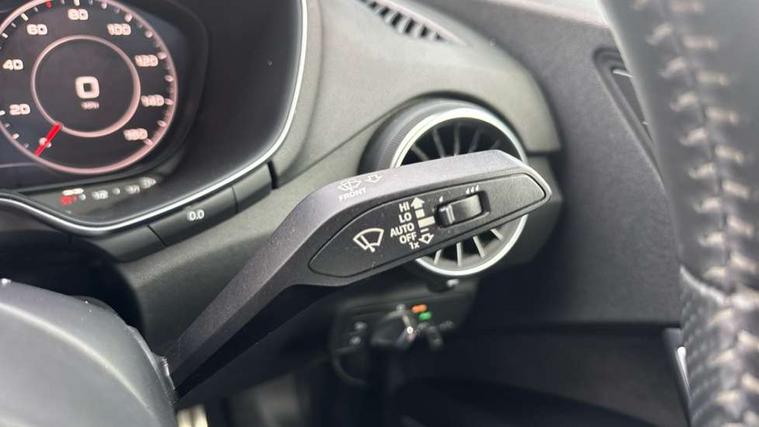Audi drive select, Audi virtual cockpit - 12.3" high-resolution LCD display with fully customisable instrument cluster, Cruise control + speed limiter, MMI touch panel, Mobile phone preparation with bluetooth interface, Progressive power assisted steering, Service interval indicator, Diesel particulate filter, Audi music interface, Auxiliary input socket, Bluetooth audio streaming, DAB Digital radio, MMI Radio with CD player and SD/XC card slot, Auto headlight range control, Black door mirrors, Body colour bumpers, Electric front windows, Front fog lights, Green tinted heat insulating glass, High gloss black front grille, LED daytime running lights, Matt black radiator grille and number plate holder, Privacy glass, Rear diffuser, Retractable rear spoiler, S Line body styling, Sunband for windscreen, 3 spoke leather multi-function sport steering wheel including paddle shift, Aluminium door sill trims, Black headlining, Electric lumbar support, Extended aluminium look with stainless steel pedals, Front centre armrest, Front head restraints, Front passenger seat isofix location point, Height/reach adjust steering wheel, ISOFIX on outer rear seats, Split folding rear seat, Top tether anchor plate for isofix child seat, Auto dimming rear view mirror with light and rain sensors pack - TT, High gloss black pack - TT, Non smoking pack - TT/TT RS, 3 point front seat belts, ABS, ASR traction control, Curtain airbags, Driver/Front Passenger airbags, EDL traction control, Electromechanical parking brake, ESP, First aid kit, Front passenger airbag deactivation, Front side airbags, Head airbags, Seatbelt warning, Tyre pressure warning, Warning triangle, Anti theft alarm, Immobiliser, Keyless Start, Locking wheel bolts, Remote central locking, Matt brushed aluminium inlays, Tyre repair kit,