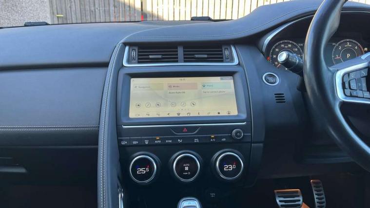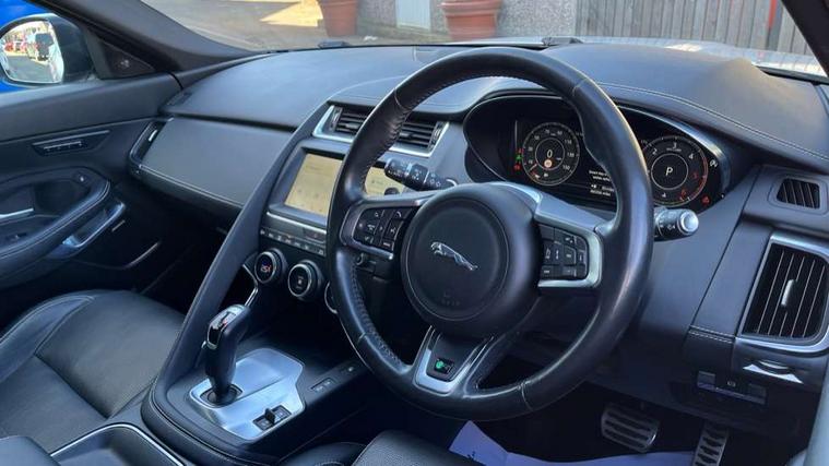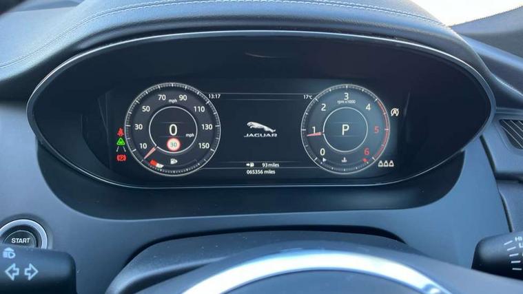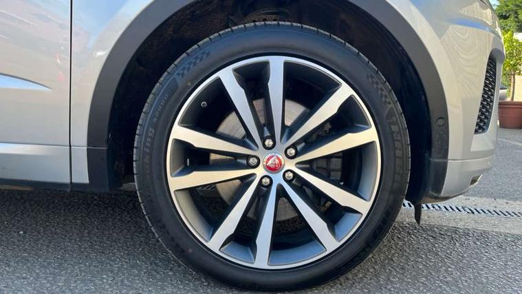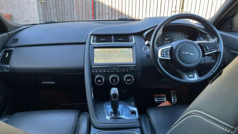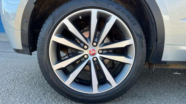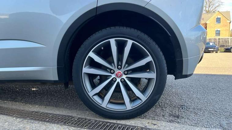 Driver condition monitor, Eco driving style assistant, Electric Gesture Tailgate, Electric power assisted steering, InControl remote, InControl Touch navigation pro, Interactive Driver display instrument cluster, Lane keep assist, Misfuelling protection device, Outside temperature gauge, Push button starter, Speed proportional steering, Start up sequence with movement in dials and lighting, Traffic sign recognition with adaptive speed limiter, Trip computer, Voice control system, Active Driveline, Diesel particulate filter, Passive suspension, AM/FM DVD MP3 radio, Bluetooth connectivity including audio streaming, DAB Digital radio, Dynamic volume control, InControl app, 3 flash lane change indicators, Approach Illumination, Auto dimming rear view mirror, Auto high beam assist, Automatic headlights, Body colour side cladding, Electric folding auto dimming and heated door mirrors with memory + Signature approach lamp, Electric front/rear windows with one touch/auto up/down, Front fog lights, Heated door mirrors, Heated front windscreen, Heated rear window with timer, Heated washer jets, Jaguar script and leaper, R Dynamic badge, R Dynamic body colour bumpers, Rain sensor windscreen wipers, Rear fog lights, Tailgate spoiler, Twin tailpipes with finishers, 12V power socket in rear, 2nd row 60/40 split/fold, 2nd row air vents, 3 seat bench in 2nd row, 4 Load area hooks, Black gearshift paddles, Centre armrest console, Centre headrest in row 2, Dual zone automatic climate control, Elasticated loadspace side strap, Front head restraints, ISOFIX on outer rear seats, JaguarDrive selector, LED lighting in overhead console, Loadspace cover, Loadspace lamp, Metal pedals, R branded leather steering wheel, Storage net in luggage compartment, Sunvisors with illuminated vanity mirrors, Tie down hooks in luggage area, Twin front covered cupholders, Windsor leather upholstery with front sports seats, 350mm front brakes, 3x3 point rear seatbelts, ABS, All surface progress control (ASPC), Customer configurable autolock, DSC - Dynamic Stability Control, Electronic brake force distribution, Electronic parking brake, Emergency brake assist, Front airbags with passenger seat occupant detector, Front and rear curtain airbags, Front and rear seatbelt reminder, Front side airbags, Hill start assist, Low friction launch, Power child locks, Torque vectoring brake, Tyre pressure monitoring system, Intrusion sensor and alarm, Keyless entry, Locking wheel nuts,