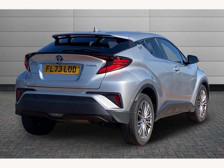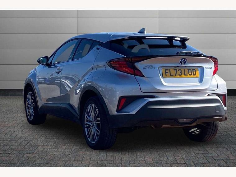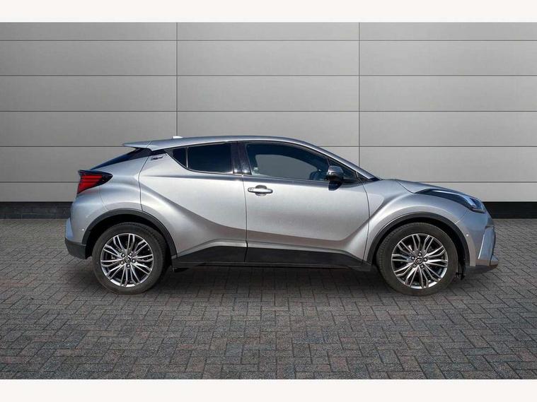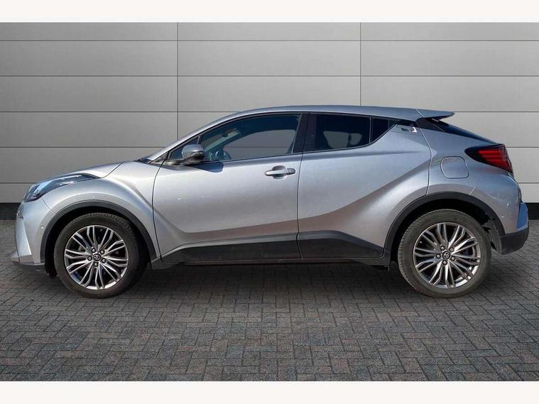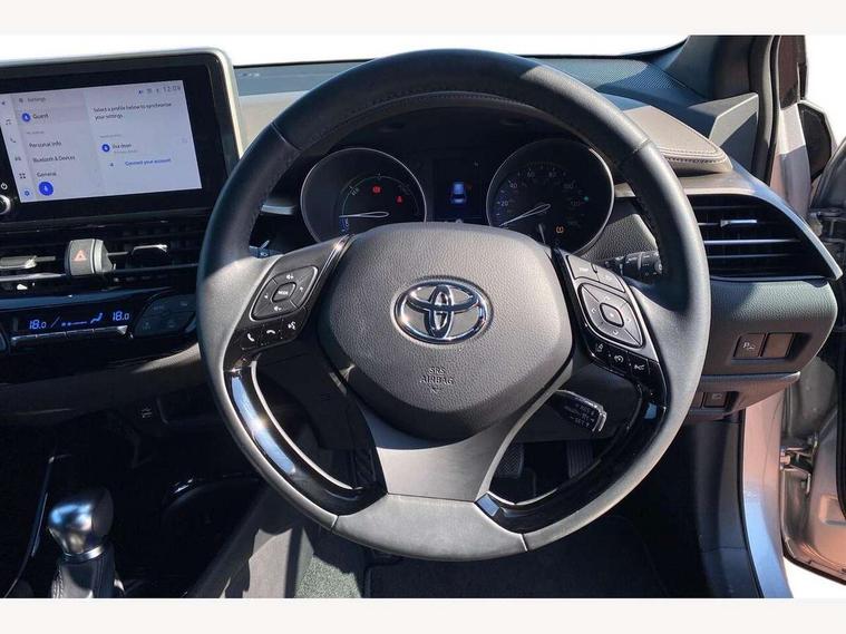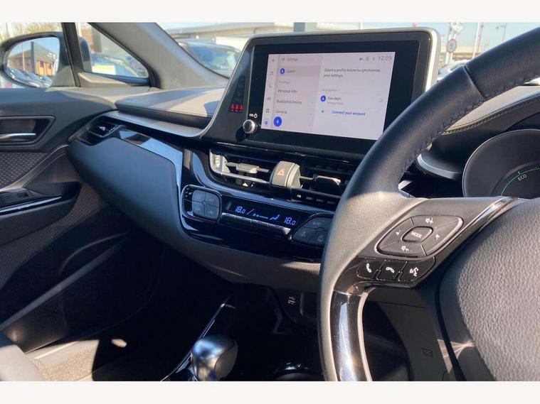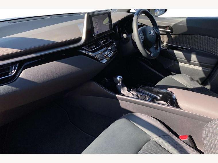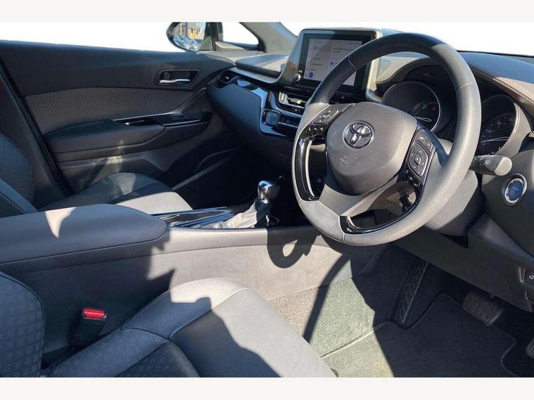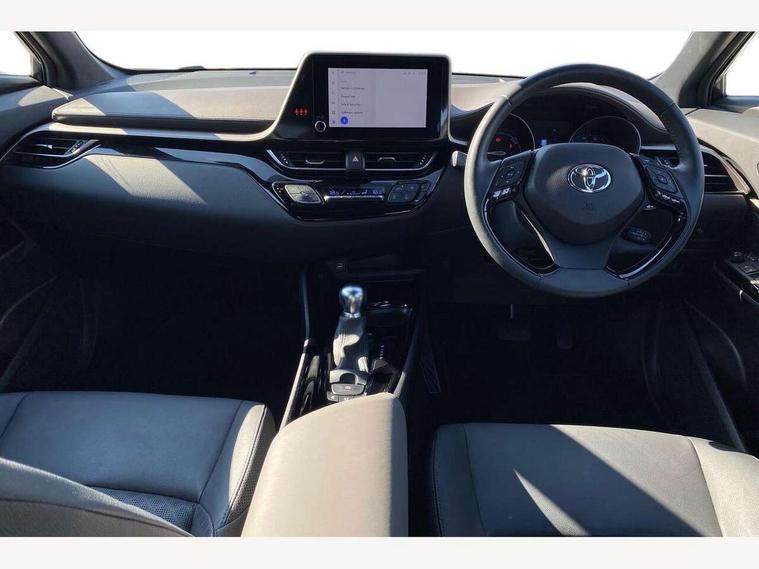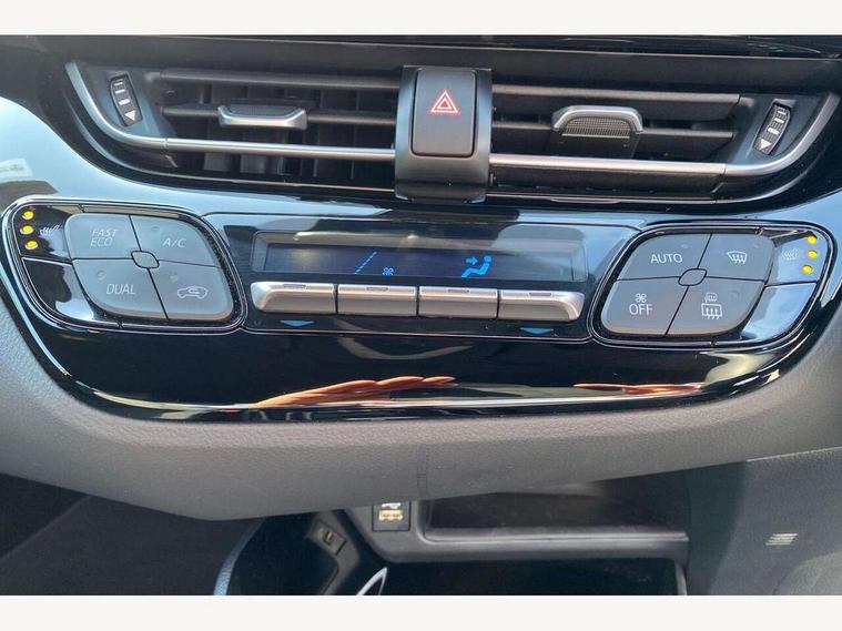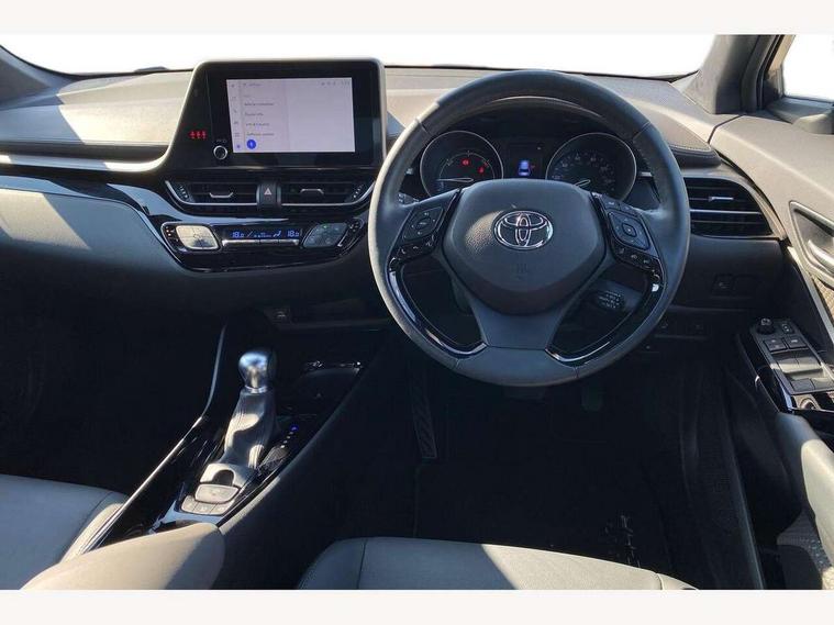 4.2" coloured TFT screen for multi-information display, Adaptive cruise control, Apple car play and Android auto, Bluetooth connectivity, E-call, Electric power steering, Hybrid system indicator, Lane departure alert with steering control, Lane trace assist, Push button tailgate release, Remote boot door release in cabin, Remote boot door release in key, Reversing camera, Road sign assist - RSA, Simple Intelligent parking assist, Smart voice assist, Touch 2 Go navigation system, Trip computer, Voice recognition, Wireless smartphone integration, Vehicle Stability Control (VSC), 6 speakers, AM/FM radio, DAB Radio (Digital Audio Broadcasting), Toyota touch 2 multimedia system with 8" display, USB connector, Wi-fi connectivity, Adaptive front light system, Adaptive LED Headlights, Anti-jam protection on power windows, Auto high beam, Auto up and down function on all power windows, Automatic headlight levelling, Automatic headlights, Automatic headlights cut-off, Black and body coloured rear bumper, Black lower front grille, Black upper front grille, Body colour door handles, Body colour door mirrors, Body colour front spoiler lip, Body coloured front bumper, Boot door release with push button, Electric heated door mirrors, Follow me home headlights, Front and rear power windows, Headlight cut off reminder, Honeycomb lower front grille, LED daytime running lights, LED fog lights, LED front light guide, LED High mounted stop light, LED rear brake lights, LED rear combination lights, Noise reduction layer on front windows and windscreen, Power adjustable door mirrors, Privacy glass, Rain sensor, Rear sequential indicators, Rear side wing doors, Rear spoiler, Rear tailgate, Rear window defogger, Rear window wiper, Shark fin antenna, UV-filter on driver and passenger windows, UV-filter on rear windows, Variable front intermittent wipers, 12v power outlet - front, 3 rear headrests, 3 seat bench in 2nd row, 3 spoke leather steering wheel, 60/40 split folding 2nd row rear seats, Adjustable rear headrests, Adjustable speed limiter switch on steering wheel, Assist grips front and centre pillar, Audio and telephone switches on steering wheel, Black front door assist grips, Blue ambient lighting on front cup holders, Blue ambient lighting on front doors, Boot light, Chrome interior door handles, Driver and front passenger personal light, Driver and front passenger Whiplash Injury Lessening seats, Driver and passenger seatback pockets, Dual zone automatic air conditioning, Floor mats, Front cupholders, Front head restraints, Front sports seats, Glovebox with internal light, Hard tonneau cover, Heated driver and front passenger seats, Heated steering wheel, Hooks for luggage holding net, Humidifying Nanoe air purifier, Illuminated entry system, Isofix attachments on outer rear seats, Leather gearshift, Light on driver sun visor, Light on passenger sun visor, Manual telescopic steering wheel, Manual tilt steering wheel, Microphone on front personal light, Mirror on driver sun visor, Mirror on passenger sun visor, Multimedia switches on steering wheel, Pollen filter, Power adjustable lumbar support on driver seat, Power tilting cushion on driver seat, Shopping bag hooks, Single front passenger seat, Slow opening on lower glovebox, Voice recognition switch on steering wheel, Leather pack - C-HR, Tech with parking sensor pack - C-HR, 16 Disk front wheel brake, 3x3 point rear seatbelts, ABS+EBD+Brake assist, Electronic parking brake, Front and rear seatbelt reminder, Front passenger airbag on/off switch, Hill start assist control (HAC), Pre collision system with pedestrian detection, Pre-tensioners and force limiters, Rear door child safety locks, SRS Airbags - Driver + Front passenger, front side, front and rear curtain and driver's knee airbags, Toyota safety sense, Tyre pressure monitoring system, Tyre pressure warning system, Acoustic vehicle alert system (AVAS), Glass-breaking alarm sensors, Immobiliser, Intrusion alarm, Intrusion sensor, Motion sensor alarm, Power door locks, Power passenger window lock, Remote central locking, Black lower dashboard, Dark brown upper dashboard, Piano black console, Silver deco line on upper dashboard, Tyre repair kit,