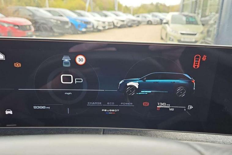 Adaptive cruise control with Stop and Go, Bluetooth with two microphones (Connect up to 2 phones), Drive modes select (Eco, normal and sport) with configurable ambient lighting, Driver foot rest, Driver profile selection, E-call, Exterior temperature indicator with ice warning, Front parking sensor, Front passenger seat detection, Hands free Smart Electric Tailgate (foot operated), Lane keep assist, Manual gear changes via steering mounted paddles, Multi function trip computer, Natural voice recognition, PEUGEOT i-Cockpit - 21" HD panoramic curved display incorporating instrument panel and touchscreen with 3colour themes, PEUGEOT i-connect advanced HD fully customisable touch screen, Navigation with Tom Tom Live updates and over the air map updates, PEUGEOT SOS and assistance, Rear parking sensor, Speed limit and traffic sign recognition and recommendation, Wireless mirror screen with apple carplay and android auto, Wireless smartphone charger with status light and ambient lighting, Dynamic stability control and electronic anti-skid system, 1x USB-C port in front, 6 speakers, AM/FM bi-tuner, DAB Radio (Digital Audio Broadcasting), Peugeot customisable virtual iToggles, 5008 model designation badges front and rear in basalt grey, Acoustic windscreen, Automatic hazard light activation upon heavy brake application, Automatic headlamp activation, Automatic windscreen wiper activation with interval wiping intensity control, Black diamond roof and floating effect rear spoiler finished in nera black metallic, Body coloured exterior door handles, Dark tinted privacy glass for rear door, Tailgate and Quarter windows, Door mirrors - Welcome lighting and integrated LED indicators, Electric adjustable/heated/folding door mirrors, Flat blade wipers with magic wash integrated nozzles, Frameless electrochrome rear view mirror, Front and rear electric windows with one touch, Front grille with body coloured accents, Gloss black connecting strip between rear lights, Gloss black finish B pillar, Gloss black roof rails, Grained black lower door claddings and wheel arches, Hybrid rear badging in basalt grey, Laminated windscreen, LED exterior lighting, LED third brake light, Lower front and rear bumper trims in meteor grey, Orbital gloss black door mirrors, Peugeot 3-claw signature front and rear daytime running lights, PEUGEOT shield on front wings, Pixel LED Technology headlights with adaptive high beam assist, Rain sensor, Rear full LED 3D peugeot signature claw effect lights with daylight function, Rear side wing doors, Rear wiper, Tailgate with heated rear window, 2 cupholders in front centre console with closed storage, 2 seat bench in 3rd row, 2nd Row Manual Window Blinds, 3 seat bench in 2nd row, 3x 12V sockets (Cabin front and rear and boot), 4 Grab handles retractable and damped, 4 tie down luggage rings, 40/20/40 folding 2nd row seat backrest with 60/40 base with easy access to 3rd row seat, Additional rear blower, Aluminium pedals, Arch design central console with concealed storage, Central front armrest with ventilated storage compartment and LED lighting, Chrome finish interior door handles, Compact heated multifunction steering wheel with full grain leather Iced Clay stitching, gloss black and satin chrome detailing and GT badge, e-Toggle compact gear selector, Electric power steering with reach and rake adjustable steering column, Glasses storage box, roof mounted, LED boot light, LED footwell lights, LED front and rear roof lights, LED Glovebox light, LED illuminated driver and passenger concealed sunvisor mirrors, Luggage cover, Luxury front and rear carpet mats with Iced Clay stitching and GT logo, Mistral black pillars and headlining, Quick launch cabin heating/cooling function, Rear air vents, Rear centre 3 point seat belt, Roll up awning fitted to tailgate, Roof lining - Meteor grey, Seatbelt unfastened on the move audible and visual alert for front and rear seats, Single front passenger seat, Stainless steel PEUGEOT door sill trims, Tri zone climate control, Twin USB charging ports in the rear (Type C), Two bag hooks, Under floor storage in boot, 2x Isofix child seat fitting on outer rear seats with zipped cover, 3x3 point rear seat belts, ABS (Anti-lock Braking System) with (EBD) Electronic Brakeforce Distribution, Adaptive driver and front passenger airbags with passenger airbag deactivation function, Advanced Emergency Braking System with radar (AEBS3) providing night detection of pedestrians and cyclists, Child locking functionality on rear doors, Electronic parking brake, Emergency Brake Assist (EBA), Front and rear curtain airbags, Front and rear side airbags, Front optimised safety headrests and 3 x rear retractable headrests with height adjustable, Front/rear disc brakes, Hill start assist, Post collision safety brake, Seatbelts - Front and rear outer seats with pyrotechnic pretensioners and force limiters, Tyre under inflation monitoring and detection (Indirect), 2x Keys (Lock, Unlock, Boot release function with concealed key), Acoustic vehicle alert system (AVAS), Automatic door locking when moving off, Deadlocking system, Electronic code immobiliser, Exterior passenger door lock, Locking wheel nuts, Peugeot Open and Go (keyless entry and push button start), Seatbelts reminder and unfastend warning indicator, Thatcham category 1 Perimetric and volumetric alarm with anti-lift detection, Aluminium printed dashboard and front door panel Alcove decor, Textile decor for dashboard, door panels and centre console arch, 19" YARI diamond cut alloy wheels with star center cap in orbital black, Michelin e-primacy class A tyres, Tyre repair kit includes 12V compressor, Sealant and storage box,
