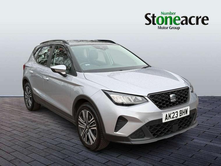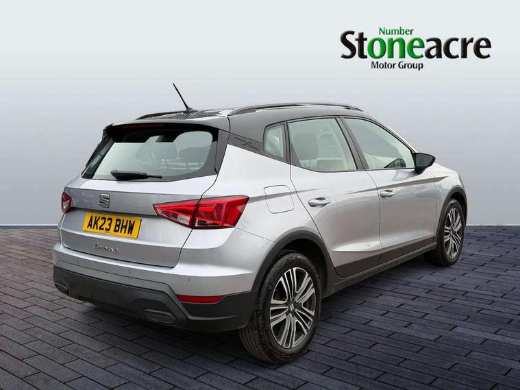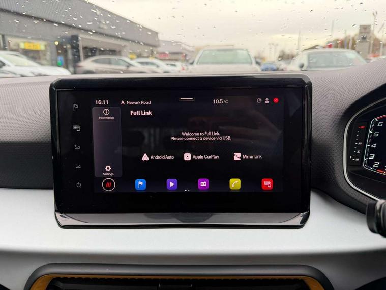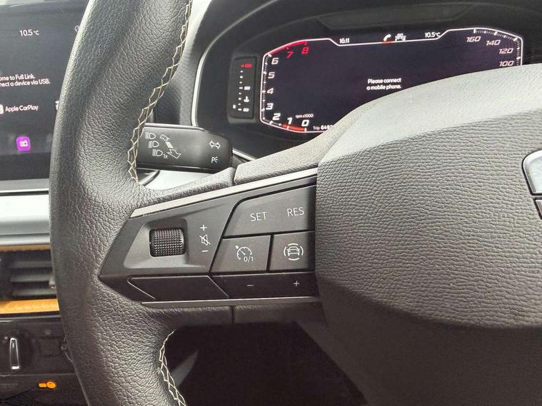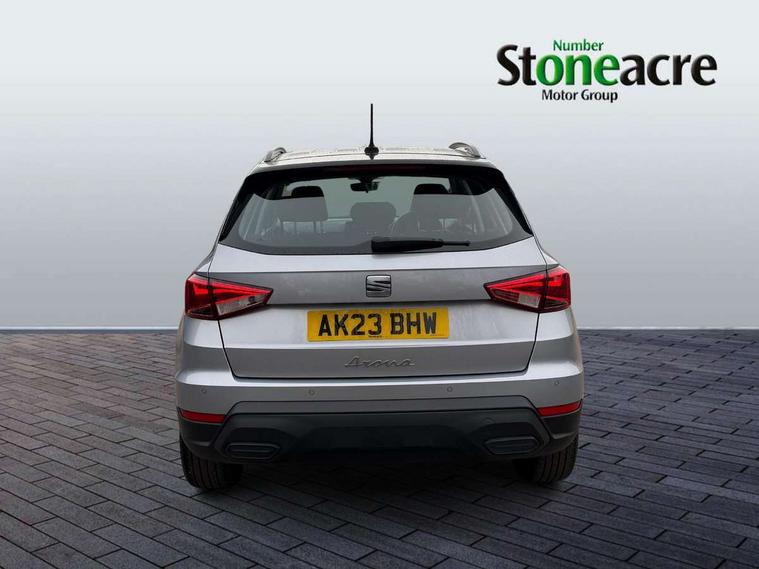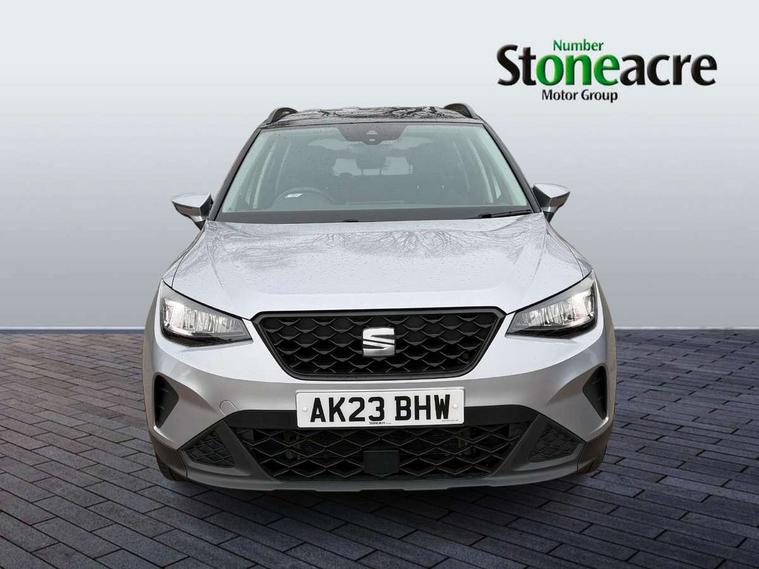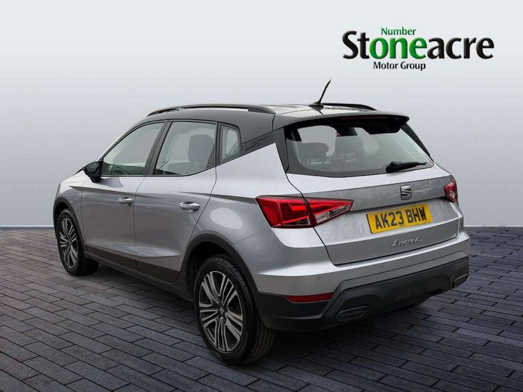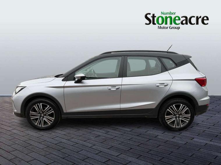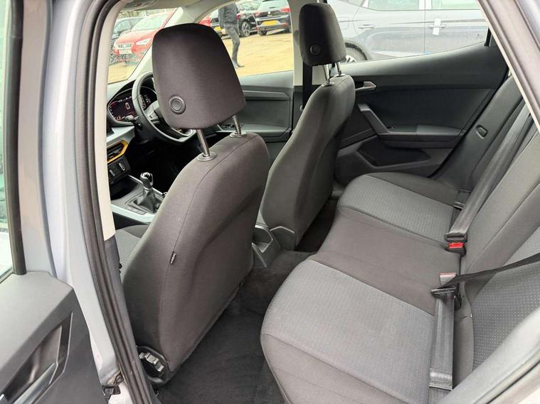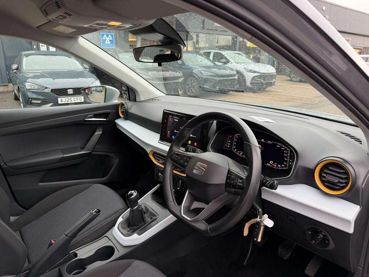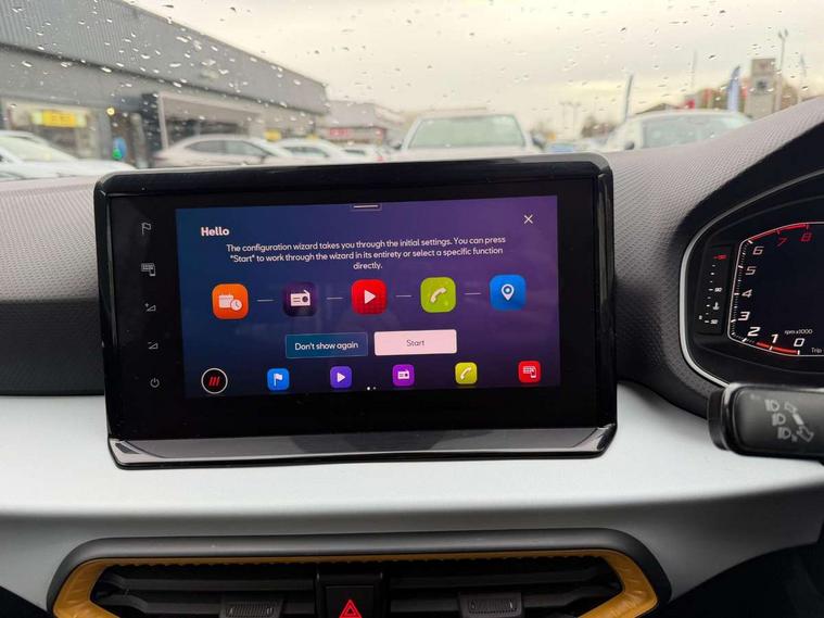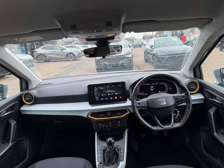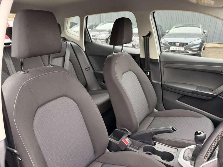 'Lights On' Reminder warning buzzer, 8" Digital cockpit, Cruise control and speed limiter, Digital clock, E-call, Electric speed sensitive power steering, Full Link Smartphone Integration with Mirror Link, Apple Car Play, Google Android Auto with USB Type C cable for Apple and Android compatibility, Lane keeping system, Low fuel warning light, Outside temperature display, Rear parking sensor, RPM counter, Seat connect with safety, service, remote and online, Trip computer, Wireless phone charger, 9.2" colour touchscreen with navigation system, voice control and USB port (type c), Bluetooth interface for hands free and audio streaming, DAB digital radio and AM/FM radio, Steering wheel mounted audio controls, Anti theft roof antenna, Automatic activation of hazard warning lights, Black roof rails and window surrounds, Body coloured bumpers, Body coloured door handle inserts, Body coloured door mirrors, Dimming rear view mirror, ECO LED automatic headlights and LED daytime running lights, Electric adjustable door mirrors, Electric front/rear windows, Hidden exhaust pipe, Licence plate lights, Protective side mouldings, Rain sensing wipers, Rear fog lights, Rear side wing doors, Rear spoiler, Rear window wash/wipe, Third brake light, Visible VIN plate, Windshield wiper with intermittent control and potentiometer, 2 cupholders, 3 seat bench in 2nd row, 60/40 split folding rear seat, Air conditioning, Cloth upholstery, Double boot floor, Driver sunvisor with covered mirror + card holder, Dust/pollen filter, Front courtesy light with front reading lights, Gear shift indicator, Grey interior roof, Height adjustable front seats, Height/reach adjustable steering column, Illuminated boot, Instrument lighting with brightness control, ISOFIX points in outer rear seats with top tether anchorage points, Leather steering wheel/gear knob/handbrake, Passenger sunvisor with vanity mirror, Single front passenger seat, Two front and three rear height adjustable headrests, Interior chrome pack - Arona, 3 point seatbelts on all rear seats, ABS, Active front headrests, Child locks on rear doors, Driver and front passenger airbags with front passenger airbag de activation, front side and curtain airbags, Electronic stability control, Emergency Brake Assist (EBA) and front assist, Front and rear seatbelt reminder, Hill hold control, Multi-Collision braking, Tiredness recognition system, Traction control, Tyre pressure monitoring system, Electronic engine immobiliser, Locking wheel bolts, Remote central locking + deadlocks, Titan black dashboard, 17" Dynamic machined alloy wheels,