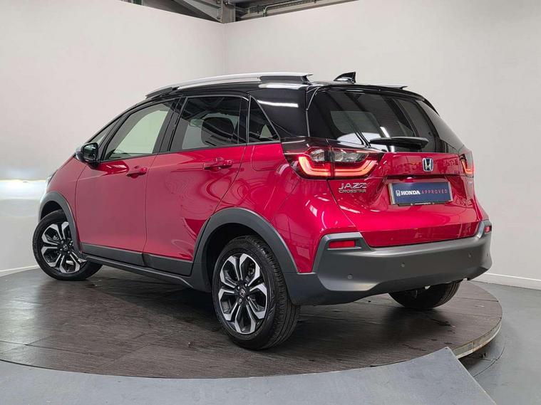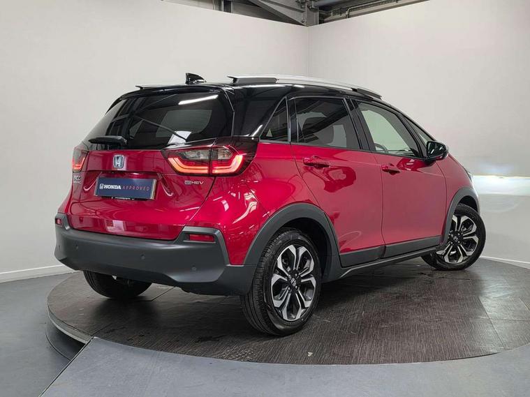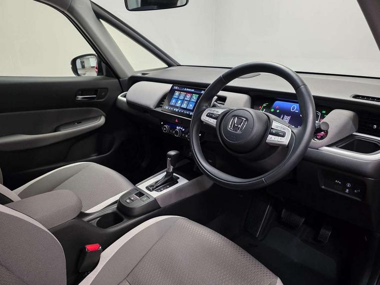 Adaptive cruise control, Bluetooth hands free telephone connection, Econ mode, Electric power steering wheel with variable gear ratio steering, Emergency stop signalling system, Forward collision warning, Front and rear parking sensors, Honda CONNECT with HERE Navigation + 9" touchscreen, AM/FM/DAB/Apple Carplay and android auto, Idle stop, Intelligent speed limiter, Lane departure warning system, Lane keep assist system, Low speed following, Multi-information display, Road departure mitigation, Traffic sign recognition, Vehicle stability assist, 'Shark fin' mobile antenna, 2 USB sockets in rear, 2x USB Front socket (1 data & 1 charge), Premium audio with 8 speakers, front tweeter, centre speaker, Remote audio controls on steering wheel, Subwoofer, Aspheric door mirrors, Auto wipers, Automatic headlights with on/off timer, Coming/leaving home function, Body colour door handles, eHEV emblem, Electric adjustable door mirrors, Electrically folding door mirrors, Exclusive styling includes Front and rear bumper, Front fog garnish, Black fender, side sill garnish, Front and rear electric windows, Heated door mirrors, High beam assist, LED daytime running lights, LED front fog lights, LED Headlights, LED rear lights, Privacy glass, Roof rails, Single exhaust tailpipe, 60/40 split rear bench seat, Climate control air conditioning, Driver and front passenger seat armrests, Driver and passenger front seat pockets, Driver's seat height adjustment, Fabric/Water repellent upholstery, Front accessory power socket, Front head restraints, Front map lights, Front/rear courtesy lights, Heated front seats, Isofix child seat restraint mechanism, Isofix points, Leather gearshift knob, Leather steering wheel, Magic seat flexibility system, Paddle shift controls, Plating interior door handles, Rear head restraints, Rear parcel shelf, Sunvisors with vanity mirrors, Tilt/telescopic adjustable steering wheel, Tonneau cover, Trunk light, 3x3 point rear seatbelts, Anti-lock braking system (ABS), Brake assist function, Brake hold function, Collision mitigation braking system, Deflation warning system, Driver knee airbag, Driver SRS airbag (single stage inflation), Driver/Front Passenger airbags, Electric parking brake, Front and rear side curtain airbag, Front side airbags, Hill start assist, Passenger SRS airbag cut-off device, Rear side airbags, Front seat belt with emergency locking retractor, Honda super locks, Immobiliser, Mirrors and windows key fob operation, Remote central locking with 2 remote folding keys, Security alarm, Smart entry + Smart start, Soft pad mesh interior panels, 16" AL Crosstar alloy wheels in mat berlina black, Tyre repair kit,