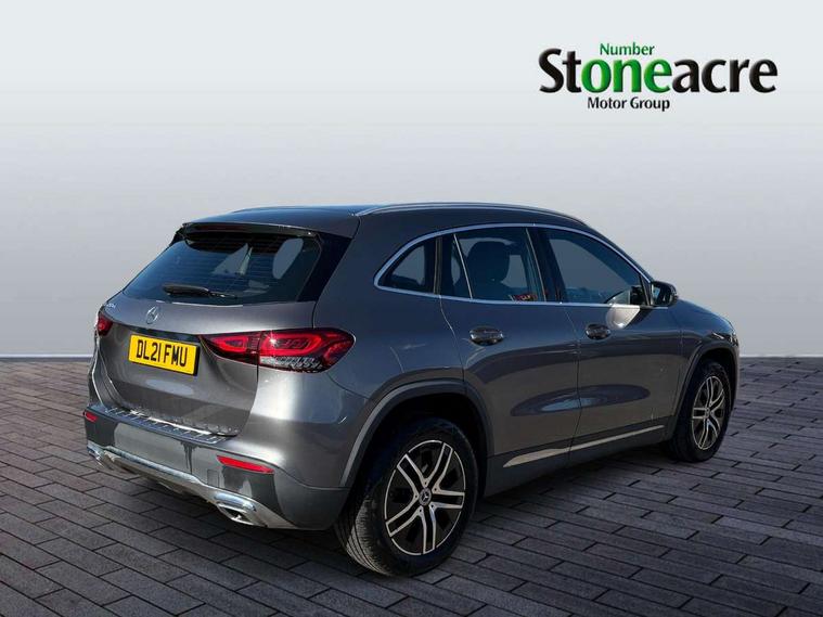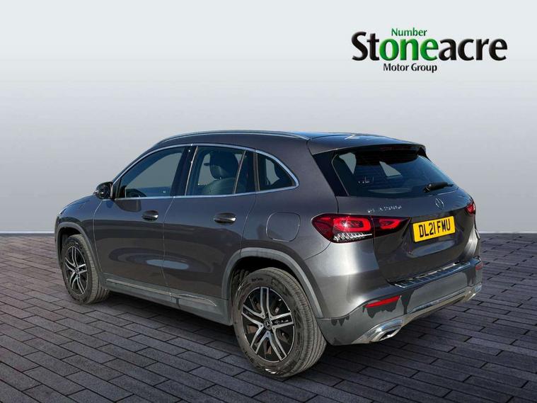 180 degree reversing camera with parking guidelines, 7 inch digital instrument cluster display, 7" touchscreen media display, Active lane keeping assist, Attention assist, Cruise control + speed limiter, DYNAMIC SELECT with a choice of driving modes (ECO, Comfort, Sport and Individual), Easy-pack tailgate, ECO start/stop function, Fluid level warning indicator for fuel, oil, coolant and washer fluid, Hard-disk navigation, Hey Mercedes Voice activation, Lamp failure indicator, Mercedes me connect including emergency call system, accident recovery, breakdown management and maintenance, Mercedes me remote services, Multi function trip computer, Outside temperature gauge, Owners manual and service booklet in English, Pre-installation of private car share, Radio aerial integrated into front and rear windshields, Service indicator (ASSYST), Speed limit assist, Speed sensitive power steering, Status display for rear seat belts in instrument cluster, Comfort suspension, Rear axle multi-link, 2 USB ports (type C) in rear stowage compartment and one in front of center console, Bluetooth connectivity including audio streaming, DAB Digital radio, MBUX multimedia system, Media interface, Mercedes-Benz sound system - 100W, Adaptive brake lights, Aerial for GPS, Aluminium roof rails, Automatic headlamp activation, Beltline strips and weather strip in chrome, Black grained claddings with chrome parts, Body colour bumpers, Body colour door handles, Body colour door mirrors, Car wash function, Dark chrome front and rear apron trim, Electric front windows, Electric rear windows, Electrically adjustable and heated door mirrors with integrated LED indicators, Exhaust system with dual flow exhaust pipes (non-functional), Front bumper with underride guard in high gloss chrome, Front door sills with Mercedes-Benz lettering, Heated glass rear windscreen + timer control, Heated windscreen wash system, Interior mirror with black reading lamps and frameless, LED high performance headlamps with integrated LED daytime running lights, LED tail lights in two piece design, LED third brake light, Rain sensor windscreen wipers, Rear fog lights, Roof spoiler, Simulated body styling underguard in matt chrome, Single lamella radiator grille painted in silver matt with chrome inlay and black dots, 12V power socket in centre console, 3 spoke leather multifunction sports steering wheel, 40:20:40 split folding rear seats with backrest, Adjustable head restraints, Air conditioning - Two zone thermotronic luxury automatic climate control with display, Artico man-made leather/Fleron fabric upholstery, Auto Mercedes-Benz child seat recognition sensor, Black roof lining, Comfort seats, Courtesy light in boot, Floor mats in velour, Front centre armrest with stowage, Gearshift paddles, Heated front seats, Illuminated glovebox, Leather trimmed gearknob, Luggage net on driver/front passenger seat backrest, Manually height and reach adjustable steering column, Multi-gesture touchpad control on center console, Stowage compartment in centre console, Stowage compartment with retractable cover, Sunvisors with illuminated vanity mirrors, Twin front cup holders, Two outer rear seat isofix and top tether child seat fixing points, Comfort seat pack - GLA Class Sport, Interior lighting with light and sight pack - GLA, Load compartment pack - GLA, 3 rear 3 point seatbelts, ABS with Brake Assist, Active bonnet pedestrain safety measure which detects an impact and raises bonnet by 65mm, Active brake assist includes forward collision warning system with autonomous braking, Adaptive brake assist with hold function and hill start assist, Bonnet with power domes, Brake pad wear warning indicator, Childproof locks manually operated for rear doors and electrically operated for rear power windows, Crash responsive emergency lighting, Driver and passenger head and side airbags, Drivers knee airbag, Dual stage driver/passenger airbags, Electronic parking brake, ESP curve dynamic assist, ESP with ASR, Front and rear seatbelt reminder, Front passenger seat occupancy sensor, Tyre pressure monitoring system, Warning triangle and first aid kit, Window airbags, Alarm system with immobiliser and interior protection -Thatcham category 1, Keyless Go starting function, Remote central locking and crash sensor with emergency opening function, Urban guard vehicle protection, Vehicle key with decorative surround in chrome, Chrome air vent surrounds, Spiral look trim, 18" 5 twin spoke light alloy wheels aerodynamically optimised painted in black with a high sheen finish, Summer tyres, Tirefit tyre sealant kit,