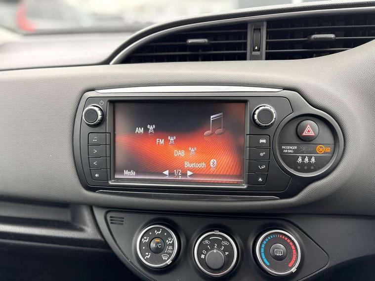 Bluetooth system, Cruise control, Electric boot release, External temperature gauge, Fuel indicator with low level warning, Lights on warning, Rear view camera, Remote fuel flap release, Speed sensitive power steering, Tachometer, Trip computer, 6 speakers, Auxiliary input socket, DAB Digital radio, MP3 player, Radio, Steering wheel mounted audio controls, Touch screen audio system, USB connection, 2 speed front wipers + intermittent wipe, Body colour heated door mirrors, Chrome fog light surround, Chrome grille surround, Colour keyed bumpers, Colour keyed door handles, Drivers window one touch up/down, Electric front windows, Electrically adjustable door mirrors, Follow me home headlights, Front fog lights, Green tinted glass, Headlamp levelling, Heated rear windscreen, LED daytime running lights, LED rear lights, Privacy glass, Projector headlamps, Rear spoiler, Rear wiper, 12V Accessory socket, 60/40 split folding rear seat, Boot light, Clean air filter, Driver seat height adjust, Driver's glovebox with lid, Driver/passenger vanity mirrors with covers, Front cupholders x 2, Front map reading lights, Front seats with lumbar support, Gioco cloth upholstery, Height adjustable front head restraints, Height adjustable rear seat head restraints (x3), Interior silver door handles, Isofix system on outer rear seats, Leather gear knob, Leather steering wheel, Rear cupholder, Removable rear parcel shelf, Tilt/telescopic steering column, 3 point seatbelts on all rear seats, ABS+EBD+Brake assist, Collapsible pedal support, Curtain airbags, Door open warning, Driver and passenger airbags, Drivers knee airbag, Front side airbags, Height adjustable front seatbelts with pre-tensioners and load limiters, Passenger airbag deactivate switch, Rear child proof door locks, Seatbelt warning lamp and buzzer, Tyre pressure monitoring system, Vehicle stability control VSC + traction control, Ventilated front disc brakes, Engine immobiliser, Remote central locking, Instrument panel in grey, 16" Machined alloy wheels, Space saver spare wheel,