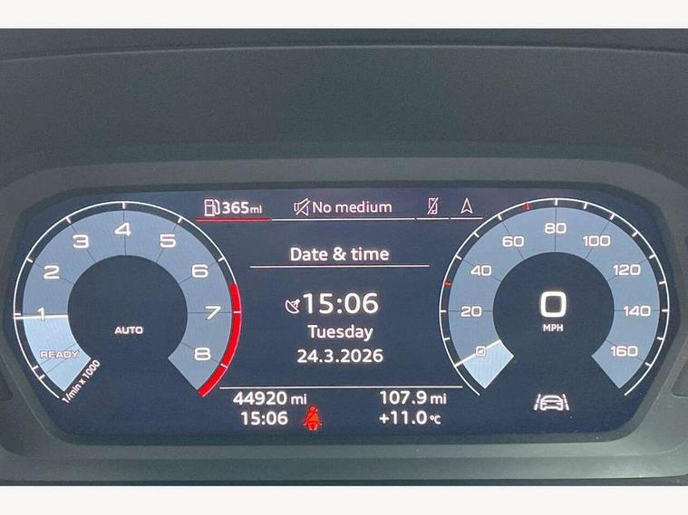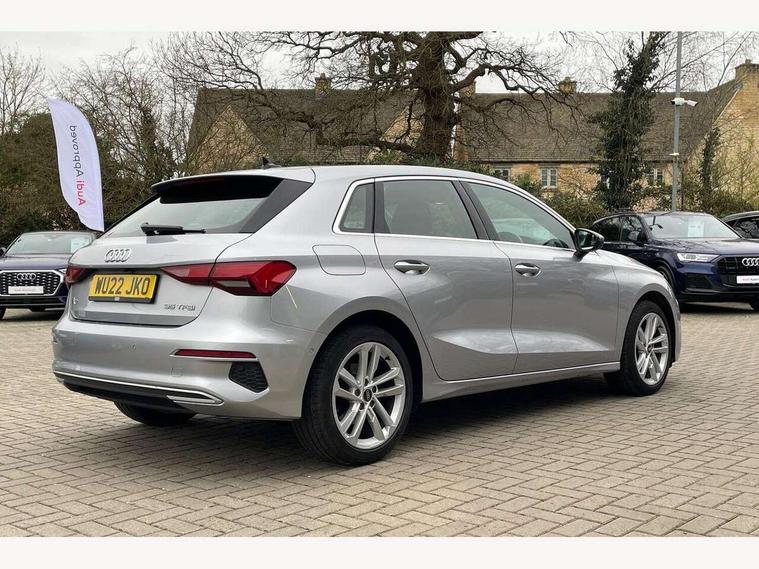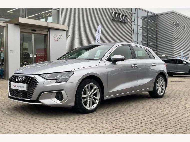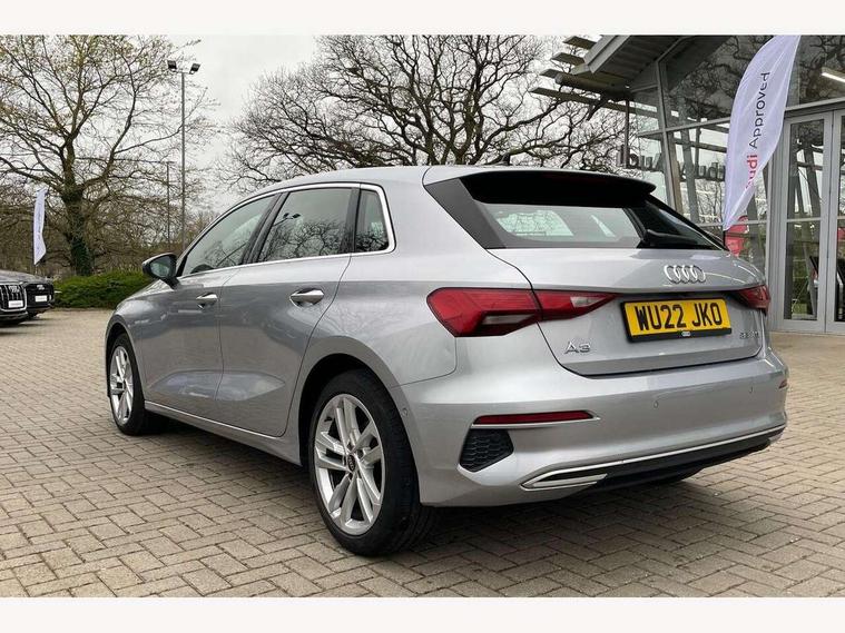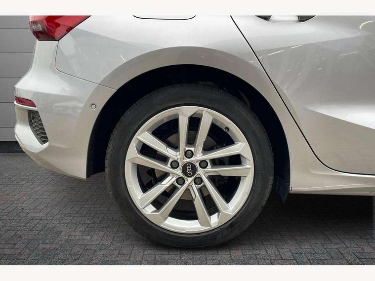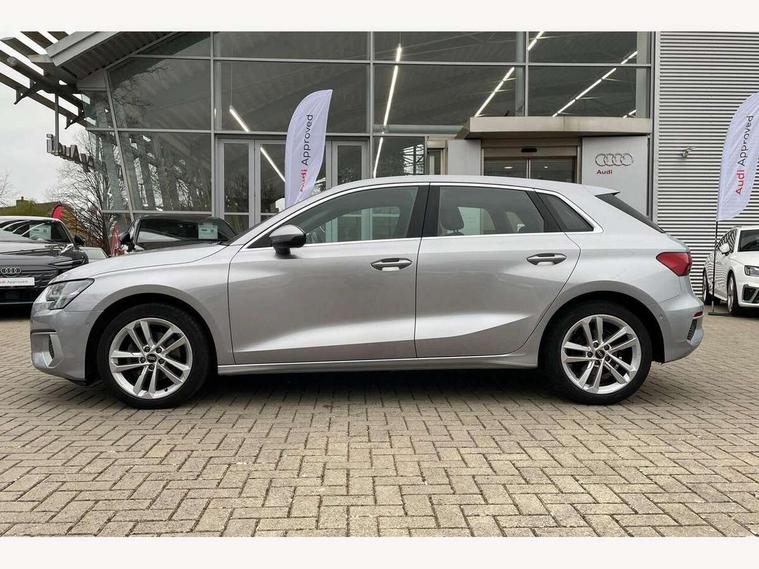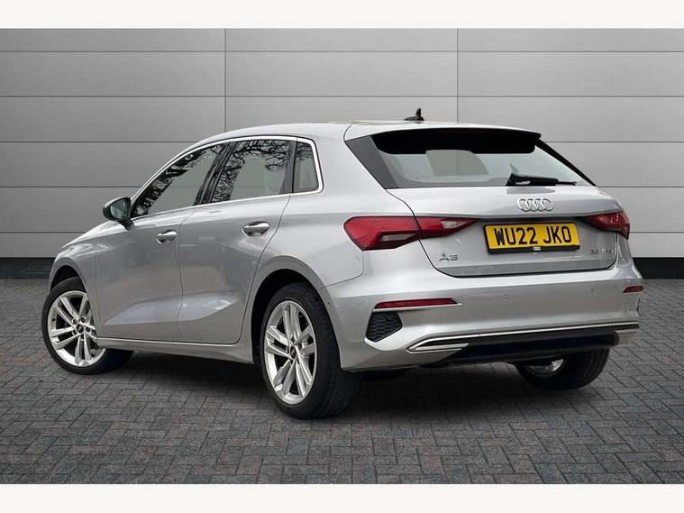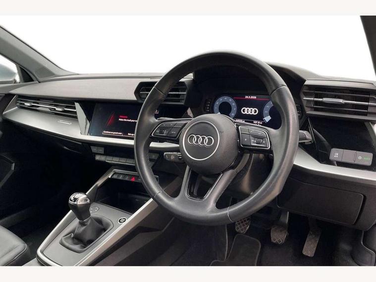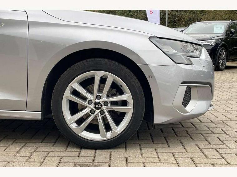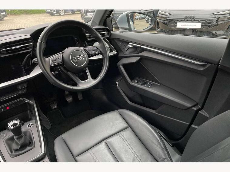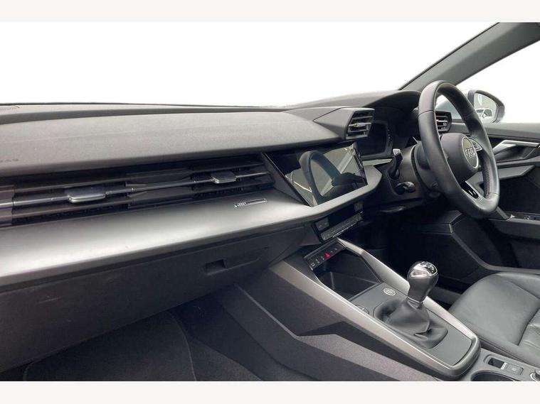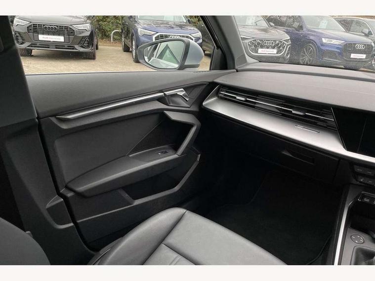 Audi connect emergency call and service, Audi drive select (Auto, Comfort, Dynamic, Efficiency and Individual), Audi smartphone interface, Audi Virtual Cockpit - 10.25" digital and colour instrument cluster, Automatic start/stop system with recuperation, Bluetooth interface, Collision avoidance assistant, Electromechanical power speed sensitive steering, Lane departure warning system, MMI Navigation Plus with high resolution 10.1" colour touch screen display, Service indicator, Trip computer, Voice control system with natural language interaction, Standard suspension, 2xUSB-C connection with data and charging functions, 6 passive loudspeakers, DAB Digital radio, 3rd brake light, Acoustic glass windscreen, Aluminium window trim, Auto dimming frameless rear view mirror, Body colour exterior mirrors, Body colour roof spoiler, Electrically adjustable/heated/folding/auto dimming door mirrors with integrated LED indications + kerb view function for passenger side, Front electric windows, LED daytime running lights, LED headlights and halogen rear lights, Light and rain sensors, Rear electric windows, Rear side wing doors, Rear window, rear door windows and rear side windows in clear glass, Rear wiper, 12V socket and storage compartment in front centre console, 3 seat bench in 2nd row, 40/20/40 split folding rear seat bench with cupholder, Dual zone electronic climate control, Front and rear centre armrest, Front and rear headrests, Front door sill trims with aluminium inlay, Front/rear floor mats, Height and reach adjustable steering wheel, Interior lighting - Front and rear roof module including reading lights, glove compartment light and right hand side, Luggage compartment floor covering, Manual boot compartment lid, Manually adjustable front seats, Seat side bolsters, Single front passenger seat, Steel grey cloth headlining, Twin leather upholstery, Aluminium interior elements pack - A3 Sportback, Sport styling pack - A3 Sportback, 3x3 point rear seat belts, Driver and front passenger airbag with passenger airbag deactivation, Electronic Stabilisation Control (ESC) including ABS, ASR and EDL, First aid kit with warning triangle and 2 safety vests, Front side airbags with head airbags and interaction airbag, Pre-sense front with pedestrian and cyclist detection, Seatbelt monitoring, Tyre pressure loss indicator, Anti theft alarm, Anti-theft wheel bolts, Immobiliser, Manual child locks, Remote control central locking, Inlays with silk effect paint in platinum grey,