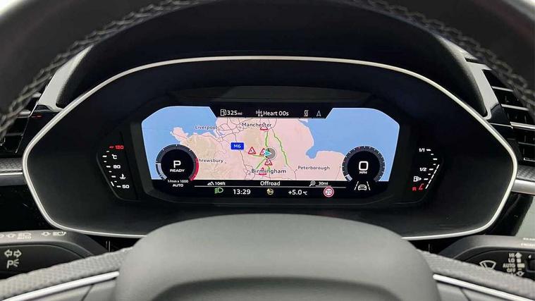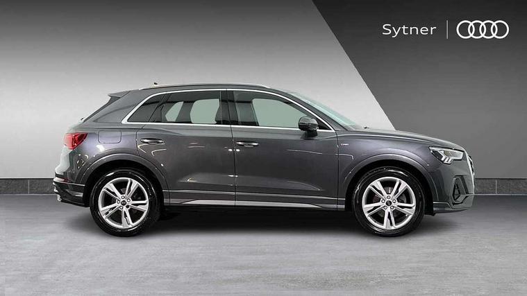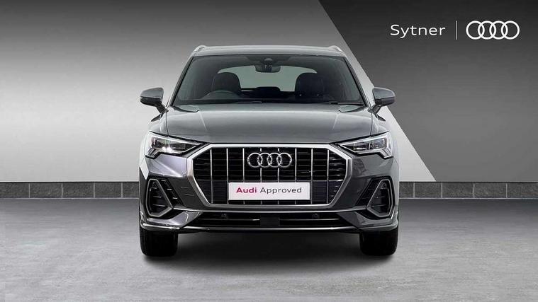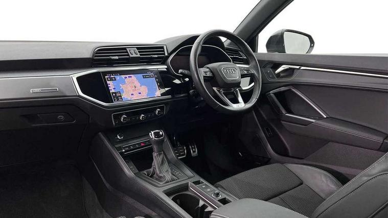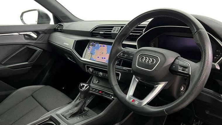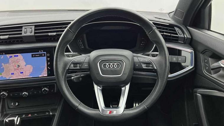 Amazon alexa Integration, Audi drive select, Audi lane departure warning, Audi Virtual Cockpit - 10.25" display, Bluetooth interface, Camera based traffic sign recognition, Legal emergency call, MMI Navigation Plus with high resolution 10.1 inch touchscreen colour display, Power operated tailgate, Progressive steering, Service interval indicator, Smartphone interface includes wireless Apple carplay/Android Auto, Start stop system with recuperation, Voice control system with natural language interaction, Diesel particulate filter, Sports suspension, 2 USB-C ports with charge and data functions, 6 passive loudspeakers, DAB digital radio module, Acoustic windscreen, Aluminium roof rails, Aluminium window trim, Anthracite black radiator grille, Auto dimming frameless rear view mirror, Body colour front spoiler blade, Body coloured bumpers, Electrically folding, adjustable and heated door mirrors with integrated LED side indicators and kerb view function for passenger side, Front and rear electric windows, Front fog lights, Front side air inlets in matt platinum grey, Grille vertical bars in aluminium silver/Matt, High gloss black finish B and C pillars, LED Dynamic rear indicators, LED headlights with LED daytime running lights, LED rear lights, LED third brake light, Privacy glass dark tinted rear and rear-side windows (from B-pillar backwards), Rain and light sensors, Rear diffuser grille in grained matt black, Rear diffuser strip in matt anthracite black, Rear side wing doors, Rear wiper, S line badges on front wings, S Line front and rear bumpers, Side skirt insert in matt Platinium grey, Variable front intermittent wipers, 12V socket in rear centre console, 3 seat bench in 2nd row, 3 spoke leather multifunction steering wheel features S badging and grips in perforated leather with contrast stitching, 40:20:40 folding with manual adjustment for 60:40 forwards/backwards position and backrest angle, Adjustable rear seat bench/backrest with centre armrest and cupholder, Black cloth headlining, Dual zone electronic climate control, Front and rear black floor mats with contrast stitching in rock grey, Front and rear headrests, Front and rear roof module including reading lights, Front centre armrest, Glove compartment lighting, Height and reach adjustable steering wheel, Illuminated door sill trims with S logo, ISOFIX child seat mounting for front passenger with airbag deactivation and outer rear seat including top tether attachment point for outer rear seats, Luggage compartment light, Manual front seats with height adjustment, Perforated leather gearknob, Single front passenger seat, Stainless steel luggage compartment sill finisher, Stainless steel pedals, Ambient lighting pack - Q3, Non smoking pack - Q3, 3x3 point rear seatbelts, 6 airbags - Driver, front passenger, curtain and side windows, Audi pre-sense front with pedestrain and cyclist recognition, Electrically operated child locks on rear doors, Electromechanical parking brake, Electronic stabilisation control including ABS, ASR and EDL, Front seatbelt reminder, Hill descent control, Hill hold assist, Pre sense basic, Seatbelt monitoring, Tyre pressure warning, Warning triangle and first aid kit, Anti theft alarm, Anti theft wheel bolts, Immobiliser, Remote central locking, Aluminium look interior elements, Dark matt brushed aluminium inlay, Detail dashboard around MMI touch colour display in glass look, black with surround in aluminium look, Leatherette door armrest,