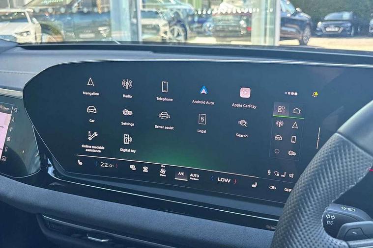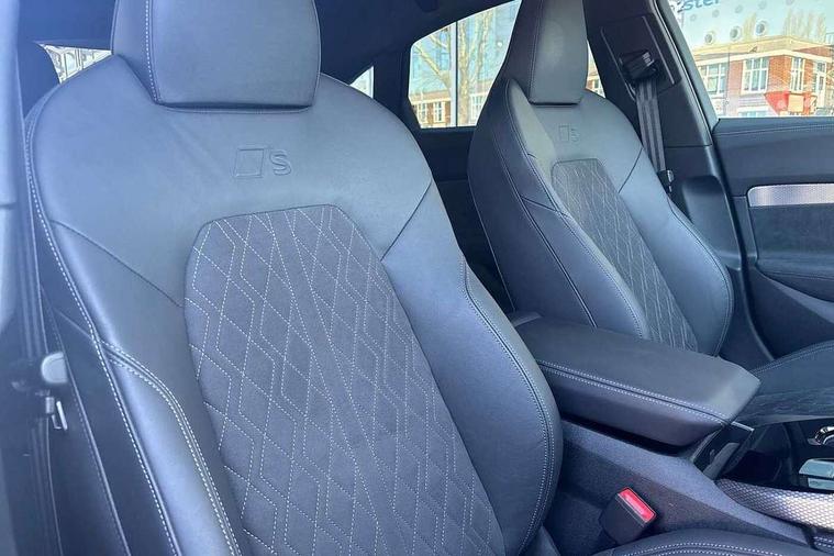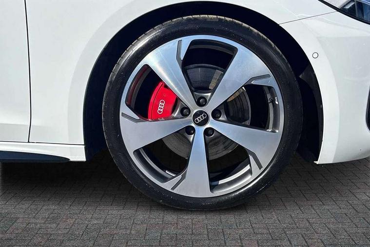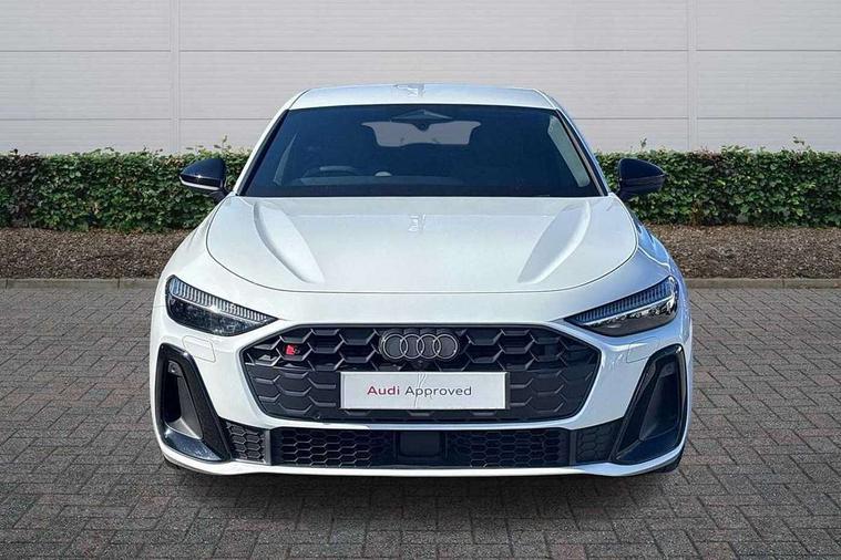 Adaptive cruise control, Advanced driver attention and fatigue montior, Audi application store, Audi assistant, Audi connect emergency call and service, Audi drive select, Audi smartphone interface, Audi virtual cockpit plus with 11.9" OLED colour display, Automatic start/stop system with coasting functionality, Camera based traffic sign recognition, Intersection assist, Lane change assistant with exit warning system, rear cross traffic alert and rear turn assist, Lane departure warning with emergency assist, MMI 10.9" front passenger touch display, MMI navigation plus with high resolution 14.5" OLED touchscreen colour display, Park assist plus, Parking system plus with 360 display, Progressive steering with servotronic, Swerve assist and turn assist, Top view camera, Traffic sign based speed limiter, Sports suspension lowered by 20mm, 2 USB-C ports in both the front and rear, Audi sound system impressive sound with 10 loudspeakers including centre speaker and subwoofer, 6-channel amplifier with a total output of 180 watts, DAB digital radio reception, Smartphone compartment with wireless charging, Aluminium window trims, Auto dimming rear view mirror, Black door handles, Dark chrome-plated tailpipe trims, Door mirrors - electrically adjustable, heated, folding and auto dimming on both sides, Front and rear electric windows, Front door sill trims with aluminium inlays, illuminated with 'S' logo, Headlight cleaning system, High beam assist, LED daytime running lights, LED rear lights pro incl. dynamic rear indicators and illuminated light strip with animated coming and leaving home function, LED third brake light, Matrix LED headlights with eight light signatures selectable via the MMI or the myAudi app, Privacy glass, Rear and side windows with heat insulating glass, Rear boot, Rear side wing doors, S Line badges on the front wings, S line bumpers, radiator grille and diffuser in phantom black and diffuser insert in matt anthracite, White rhombus logo projection light in exterior mirrors, Windscreen with acoustic glazing, 3 rear headrests, 3 seat rear bench, 3 spoke leather steering wheel with multi-function buttons with touch control, flattened on top and bottom, with S badging and contrast stitching, 3-zone automatic climate control, 40:20:40 split folding rear seat bench with centre armrest and cup holders, Comfort front centre armrest, Electrically adjustable front seats, Front and rear floor mats, Front sport seats with integrated headrest and S embossed logo, Headlining in black cloth, Heated front seats, i-Size child seat mounting on the front passenger side and outer rear seats, i-Size and top tether on the outer rear seats, Luggage compartment lid, electrically opening and closing, Manual steering column height and depth adjustment, Memory function for driver seat, Single front passenger seat, Stainless steel pedals and footrest, Steering wheel grips in perforated leather and shift paddles, Ambient lighting package plus - A5, Black styling package plus - A5, 3x3 point rear seat belts, Acoustic vehicle alerting system, Convenience key with safelock, Driver airbag, Electric child safety locks, First aid kit with warning triangle and vests, Front emergency brake assist, Front passenger airbag, Front passenger airbag deactivation, Hill hold assist, Occupant detection in rear seat area, Proactive passenger protection system for front, sides and rear, Red brake calipers, Seat belt monitoring with rear seat occupant reminder, Side airbags in front and rear with head airbag system and front interaction airbag, Tyre pressure loss indicator, Anti theft alarm, Anti-theft wheel bolts, Keyless Go, Accent surfaces and control buttons in gloss black, Black dashboard with contrast stitching, Softwrap in Dinamica with contrast stitching, Upper and lower interior elements in dinamica microfiber, 20" 5 arm fold design Audi sport alloy wheels in silk matt grey and gloss turned finish, Tyre repair kit,
